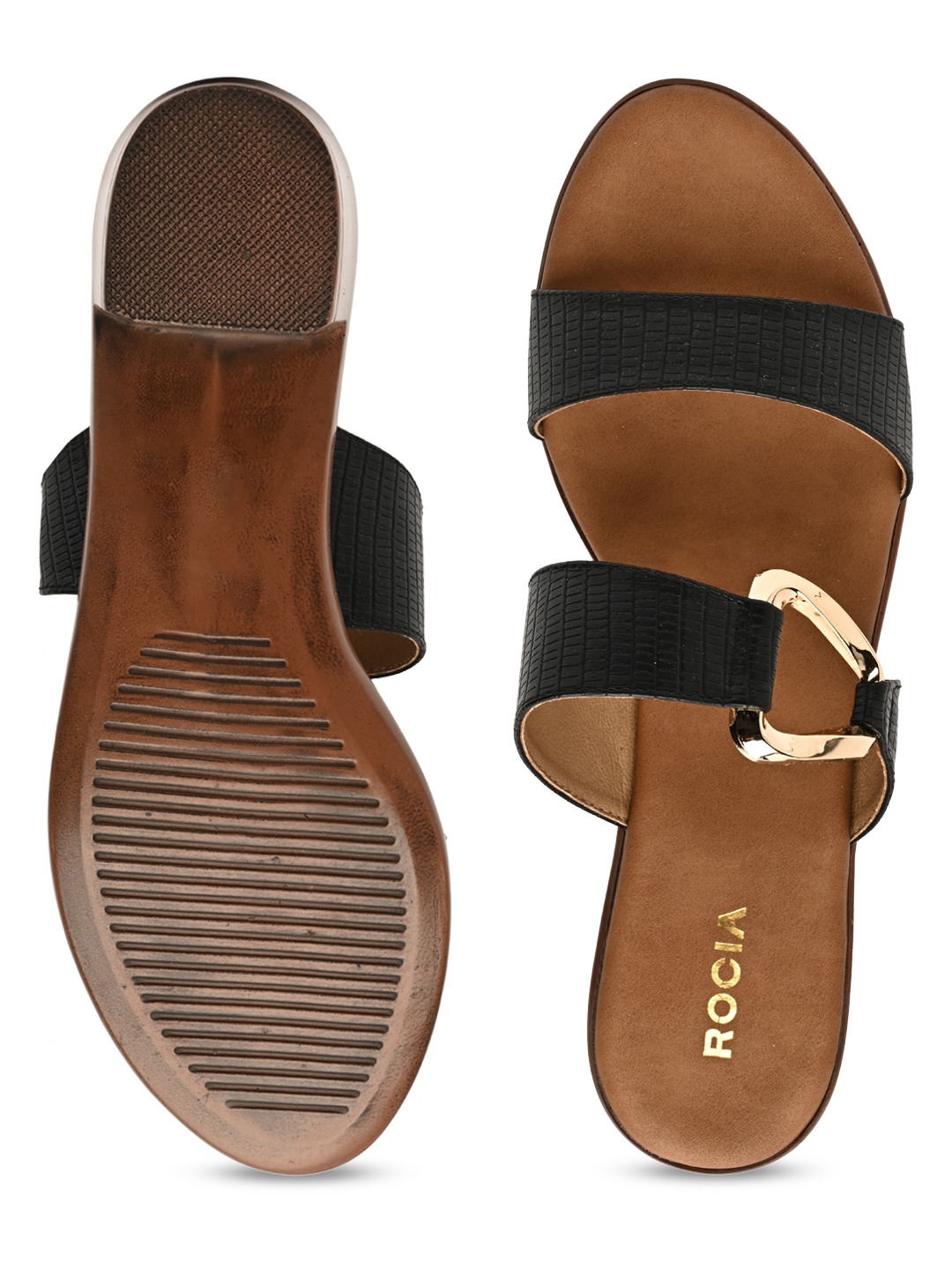 Step out in comfort and style with classic double-strap block heel sandals by Rocia by Regal Shoes, designed with a PU sole, slip-on ease, and a comfortable 2-inch heel.