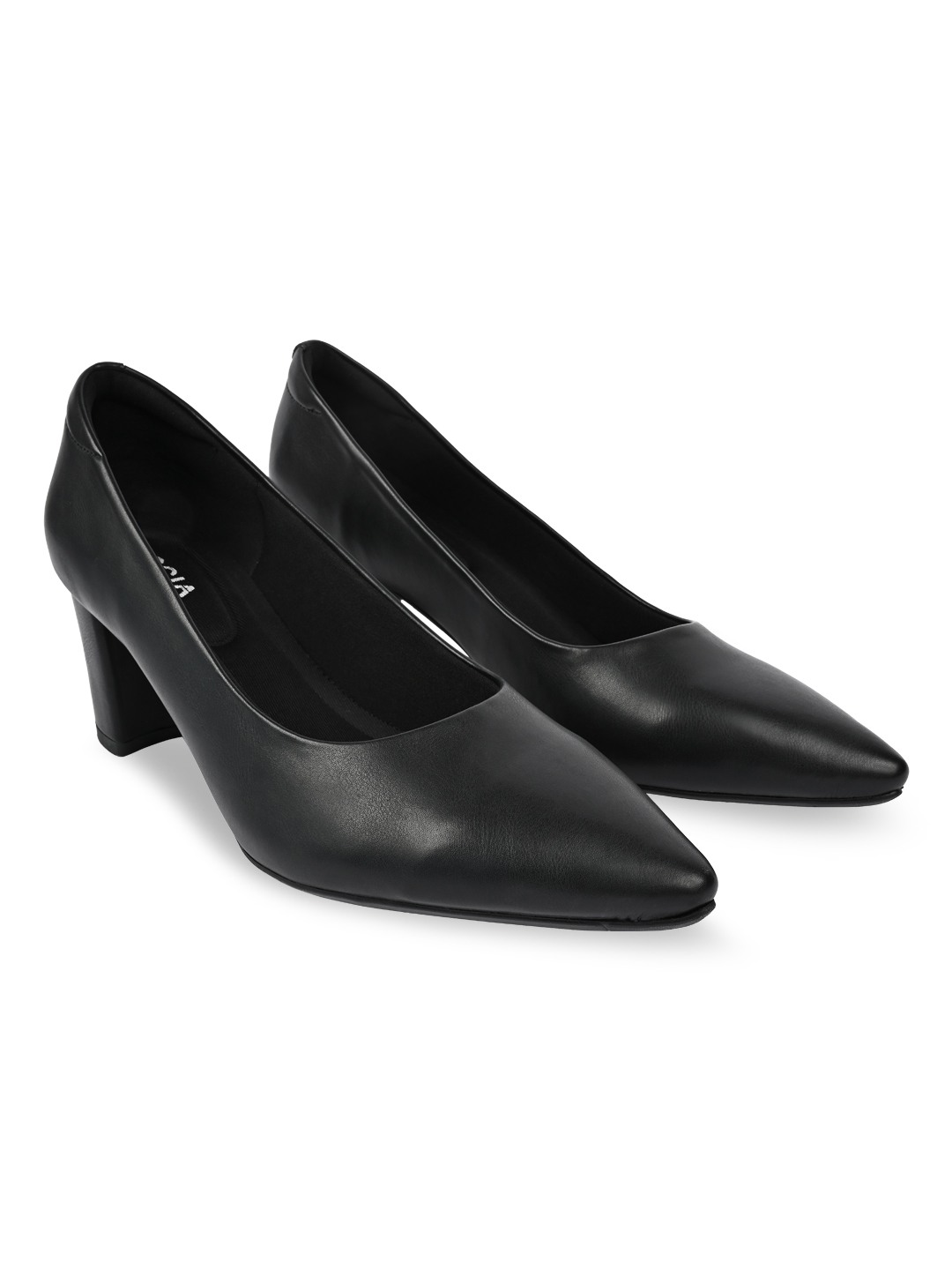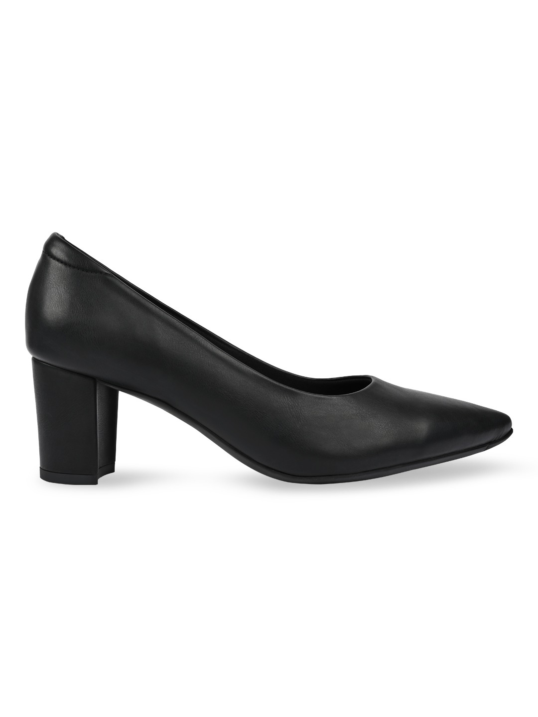 Timeless and versatile, Rocia by Regal Shoes Classic Pumps are a staple for professional wardrobes. The pointed closed-toe design enhances their elegant and structured appeal. Easy slip-on styling ensures comfort during long working hours. Set on a 2.5-inch block heel, they provide stable elevation ideal for workwear and casual occasions.
