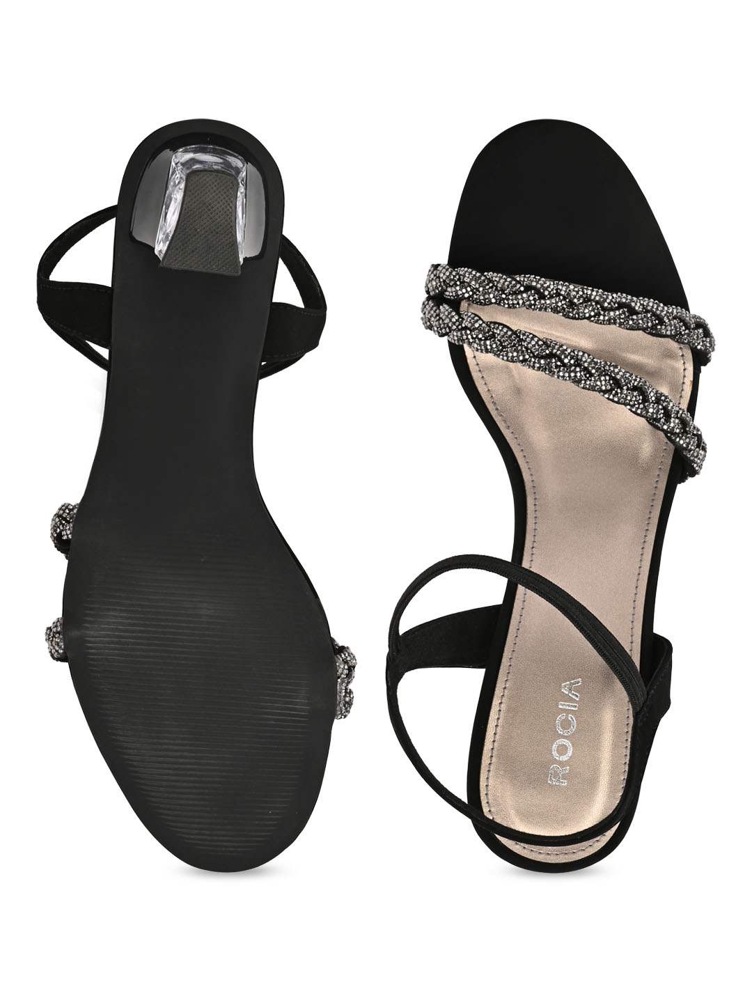 Featuring braided detailing and diamond accents, Rocia by Regal Shoes Diamond Braided Acrylic Block Heel Sandals offer a unique blend of texture and glamour. The open-toe design keeps them stylish and breathable. Set on a 3-inch acrylic block heel, they provide stability with standout elevation. Ideal for party wear and fashion-forward casual looks.