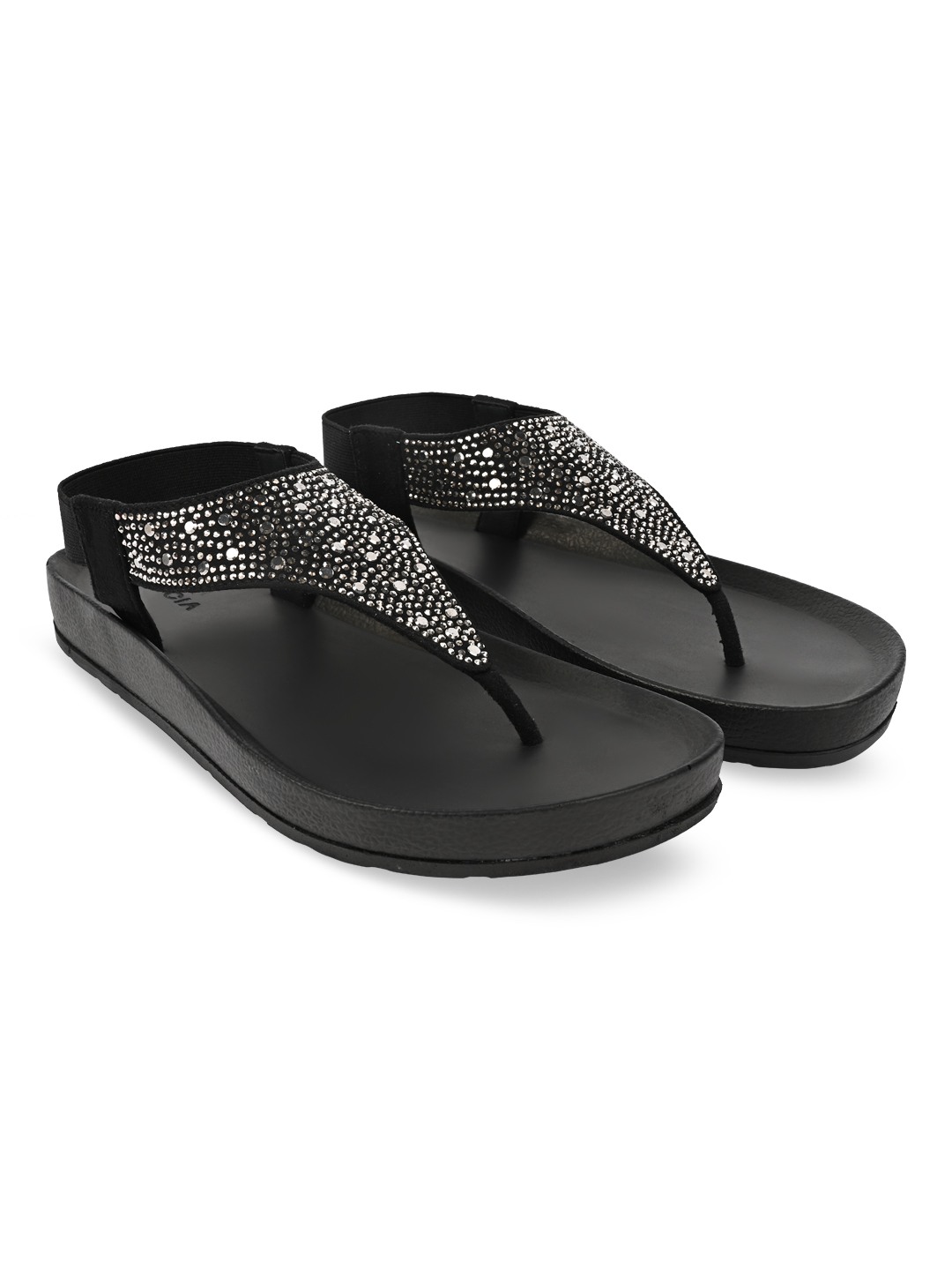 Adding understated glamour to your look, Rocia by Regal Shoes Embellished Flat Sandals are perfect for everyday styling. The thong-style upper highlights delicate detailing that catches the eye. Supported by a 1-inch flat heel, they ensure relaxed comfort throughout the day. A great match for casual outfits, festive daywear, or vacation looks.