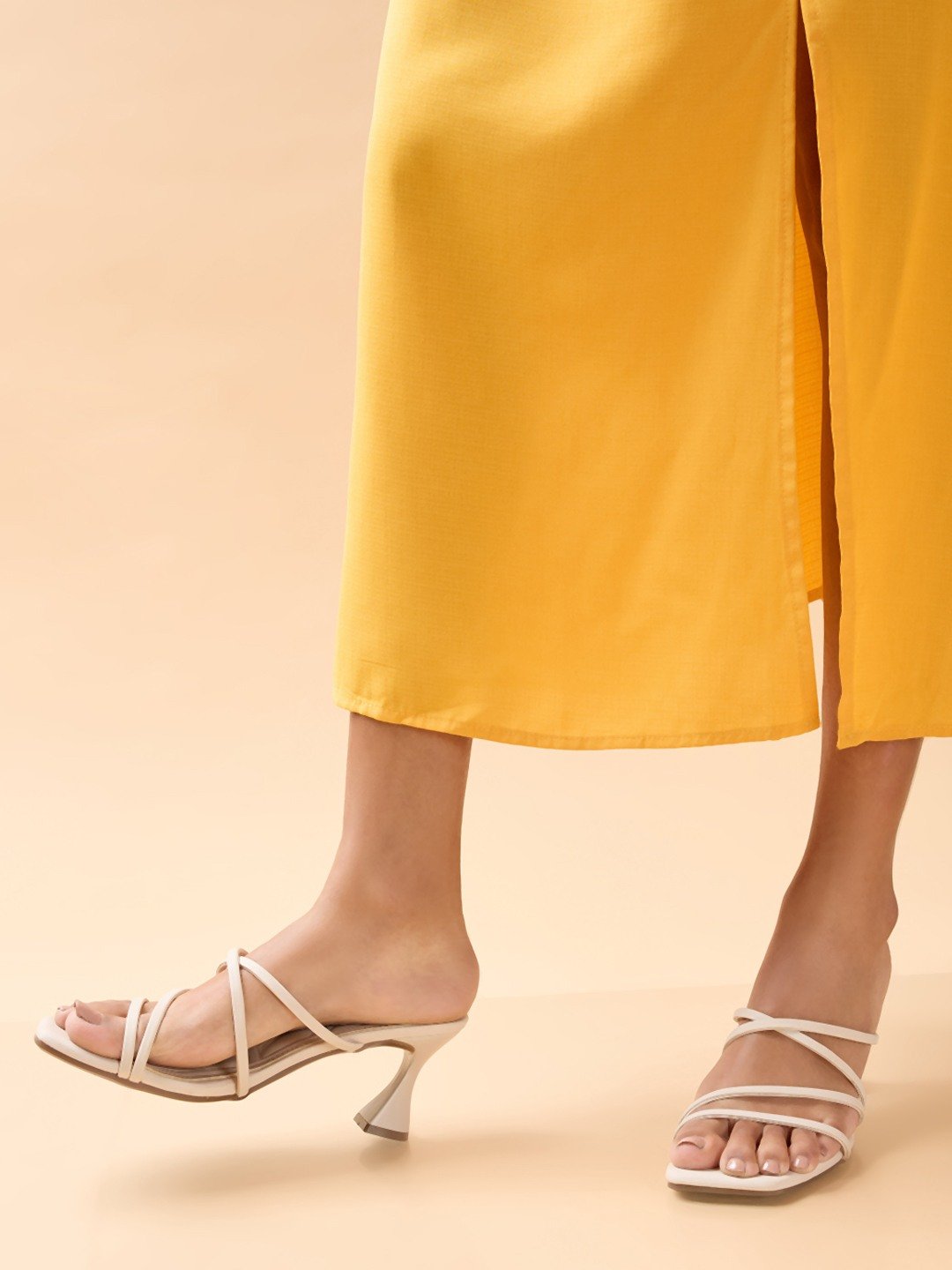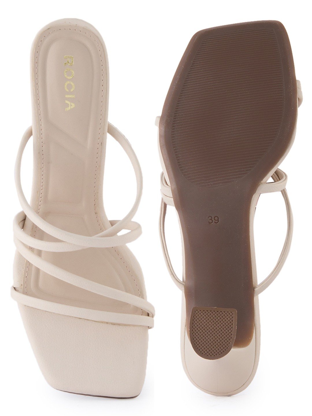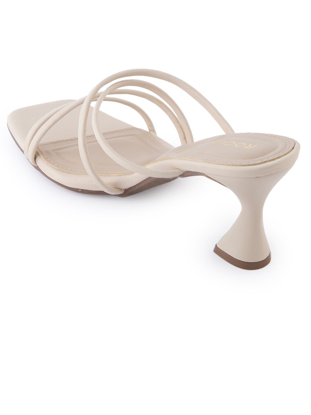 Step out in effortless style with classic strapless stilettoheel sandals by Rocia by Regal Shoes, designed with a square toe and 2.5-inch heel for versatile ethnic-casual and summer wear.