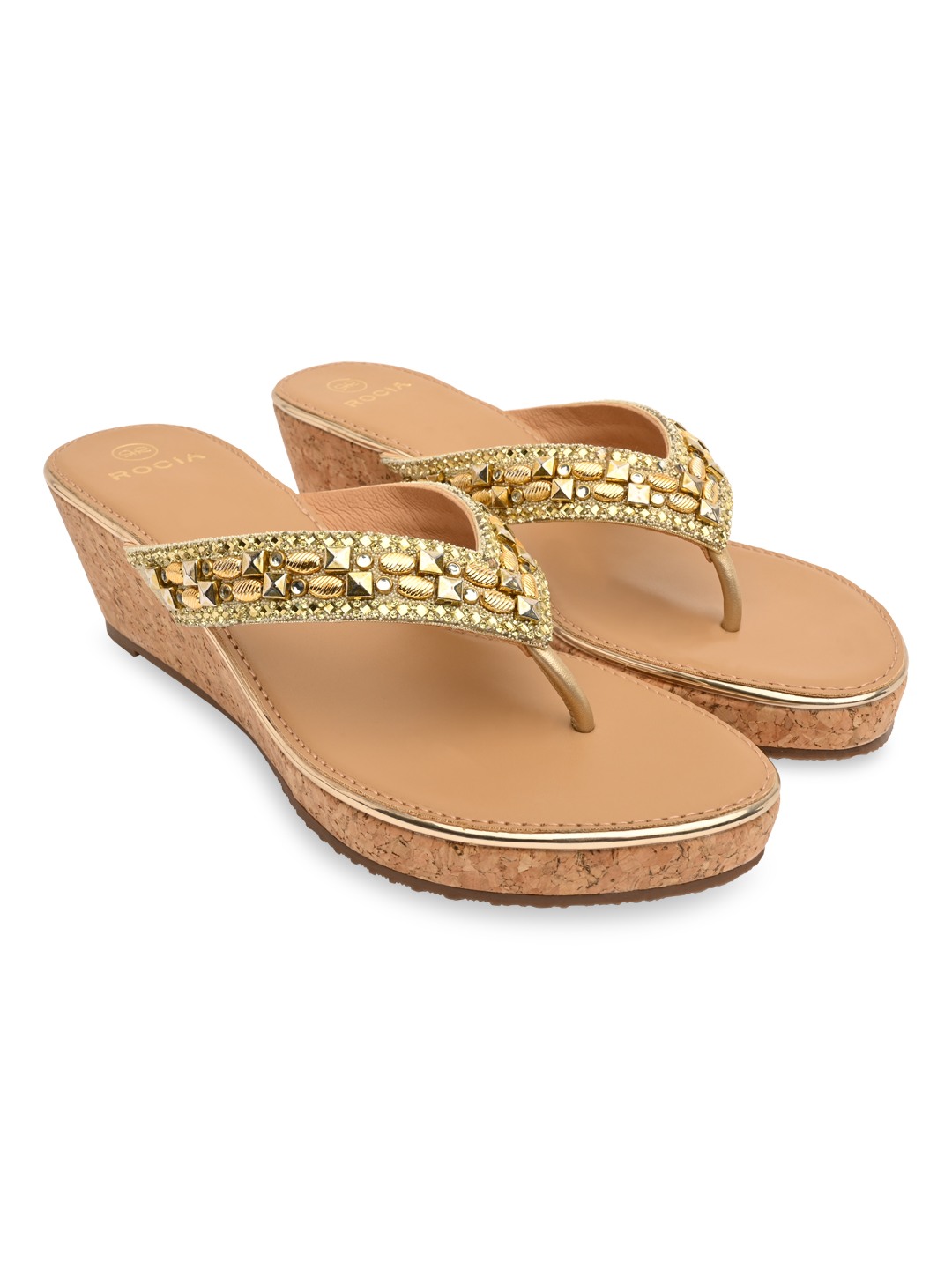 Showcase artisanal style with these cork-covered embroidered wedges. The mix of natural cork texture and intricate embroidery creates a striking contrast. Comfortable yet refined, they’re perfect for summer occasions or festive evenings. Add a boho-chic flair to your step with this unique design.