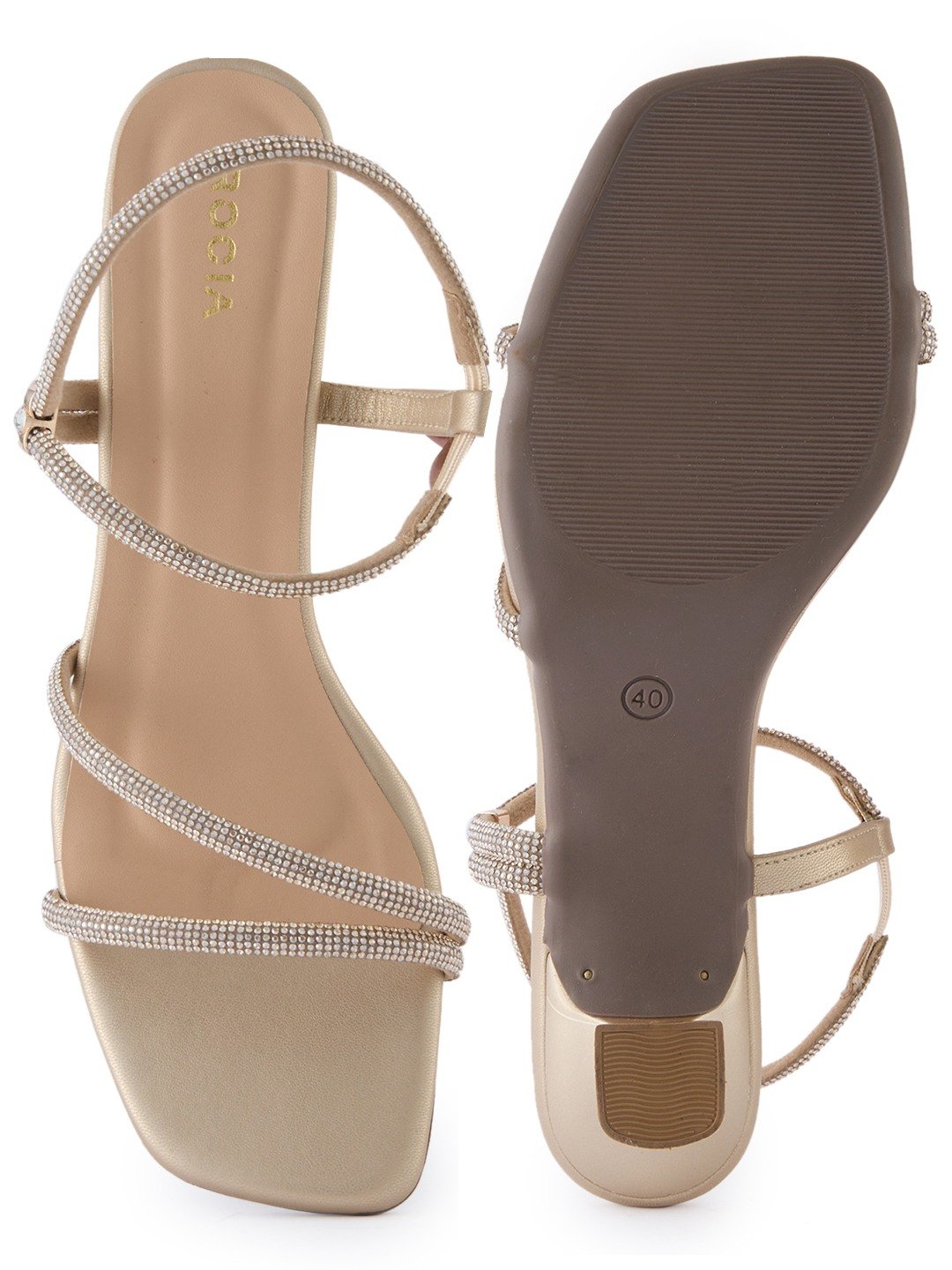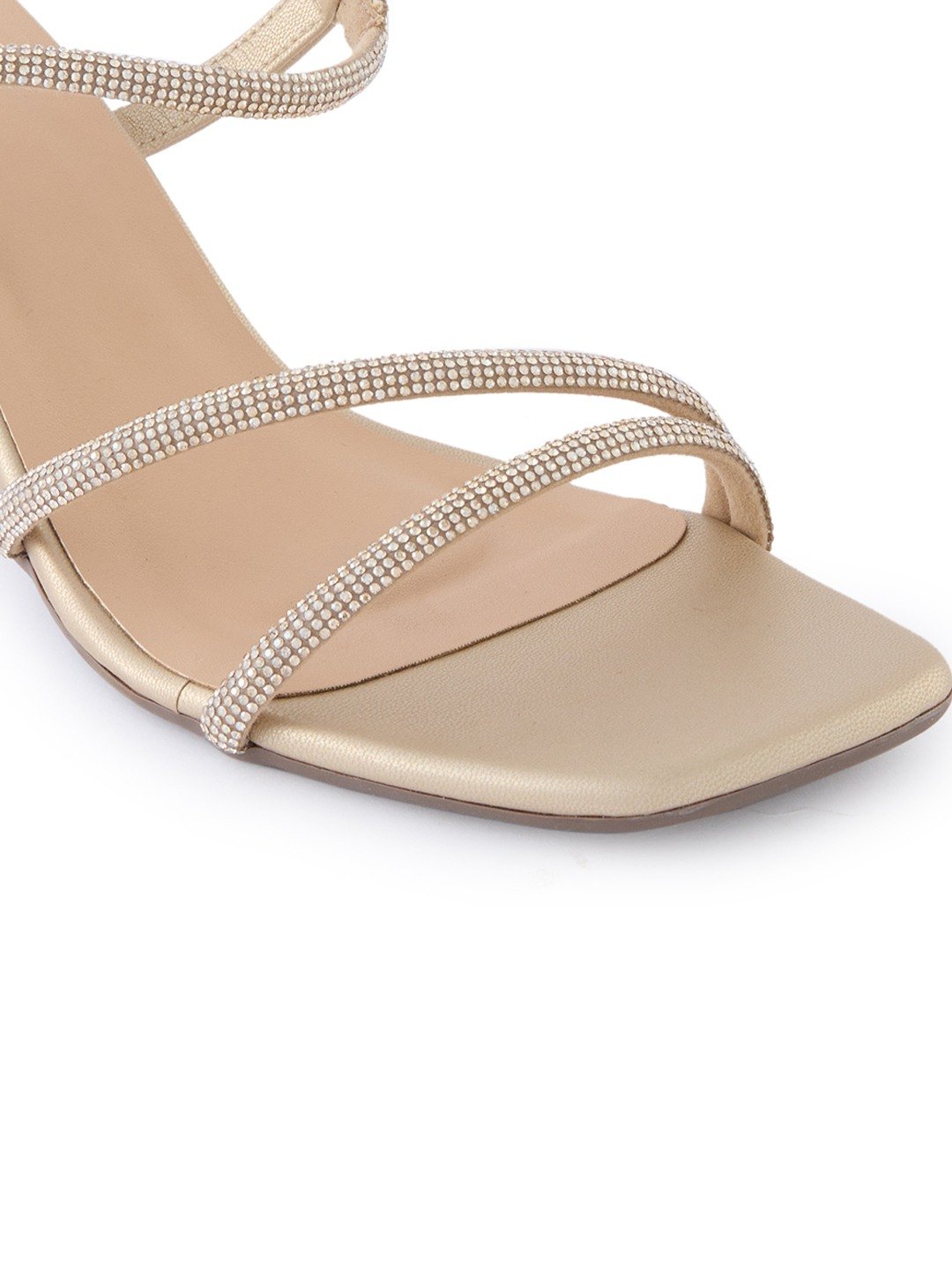 Shine at every celebration with elegant diamond-embellished stiletto sandals by Rocia by Regal Shoes, designed with a square toe and single strap for weddings and festive party nights.