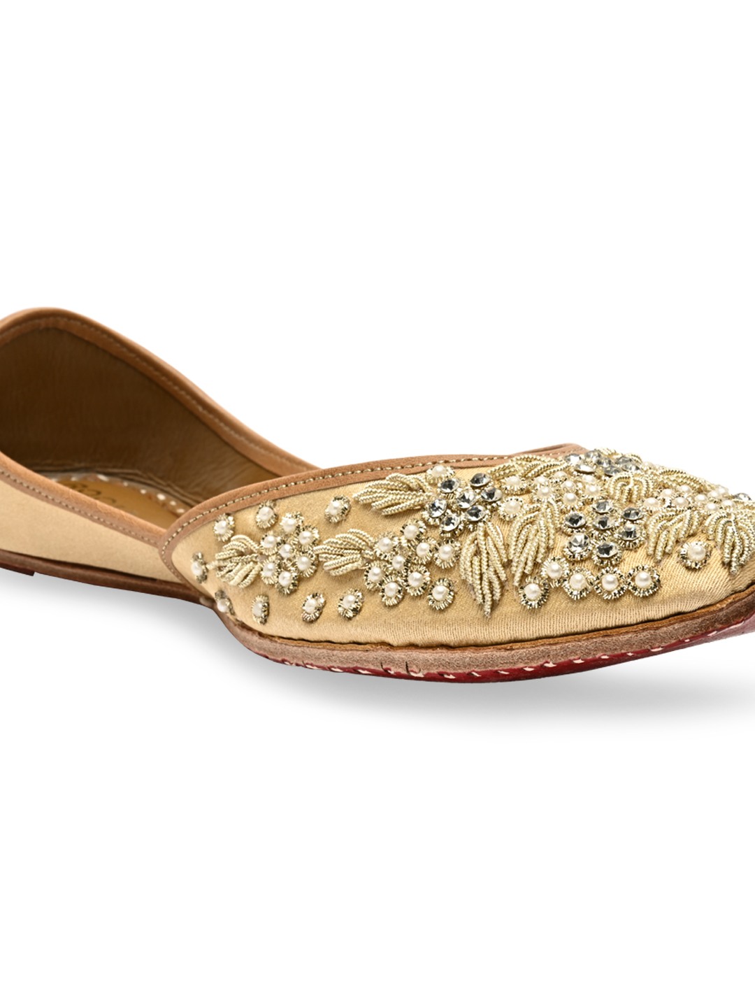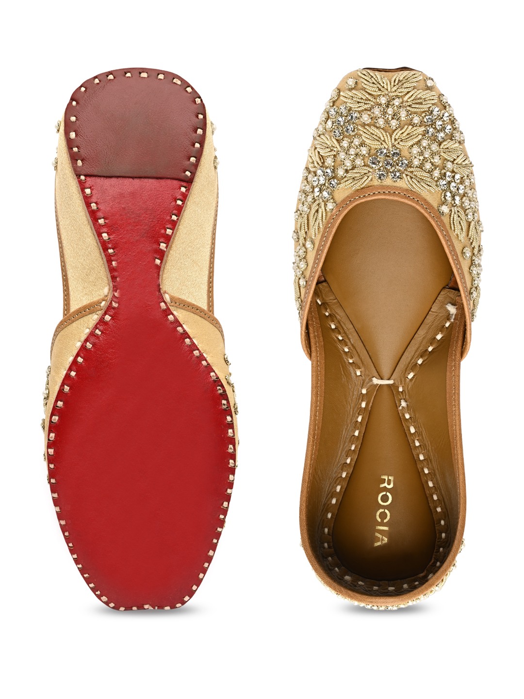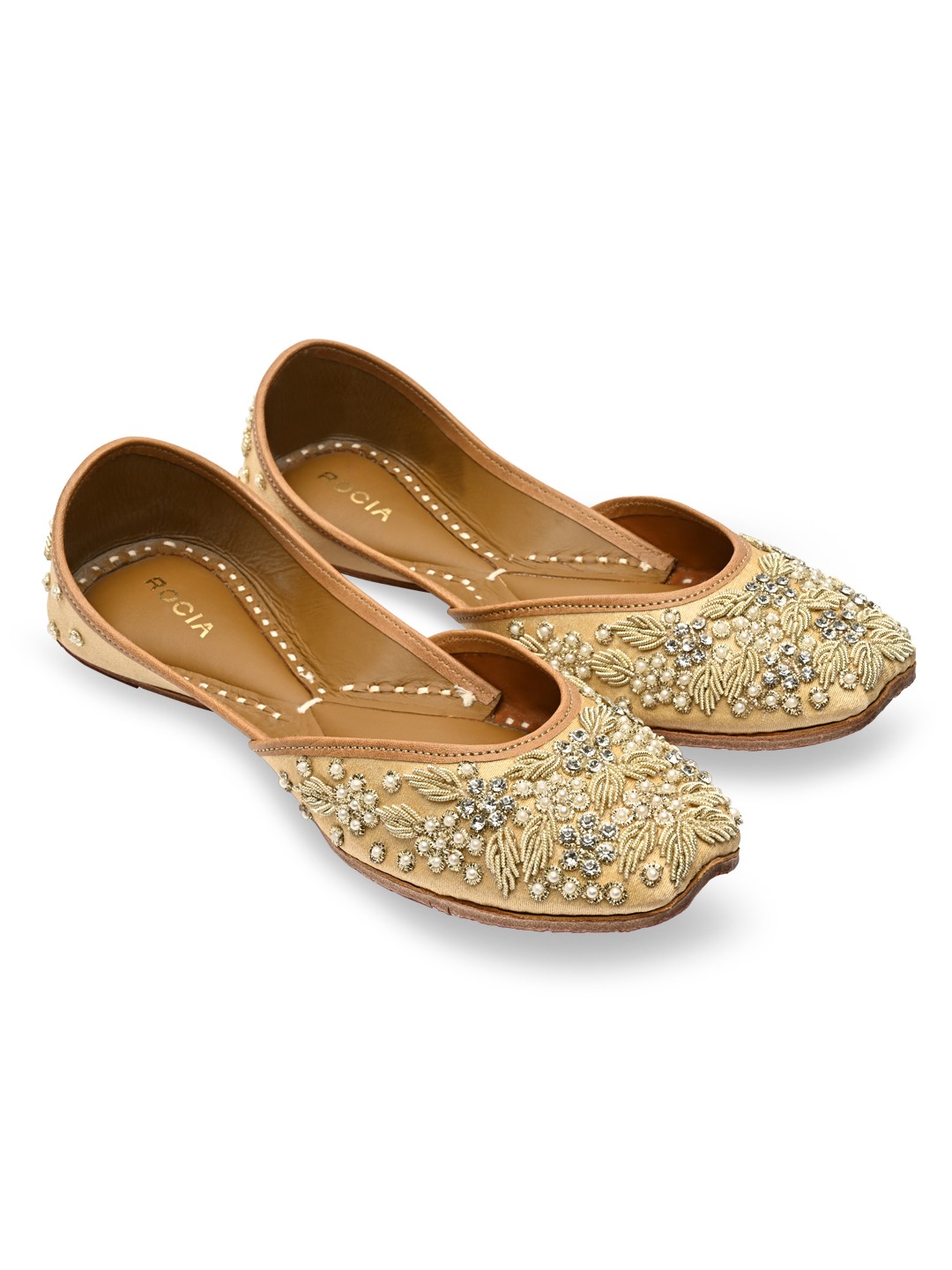 Graceful embroidered traditional juttis or mojaris from Rocia by Regal Shoes, designed for all-day comfort. Featuring a square toe and slip-on style, perfect for festive dressing.