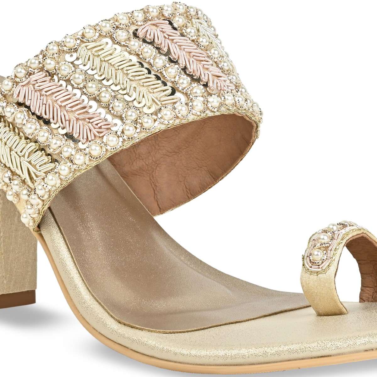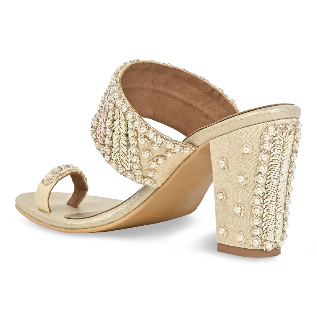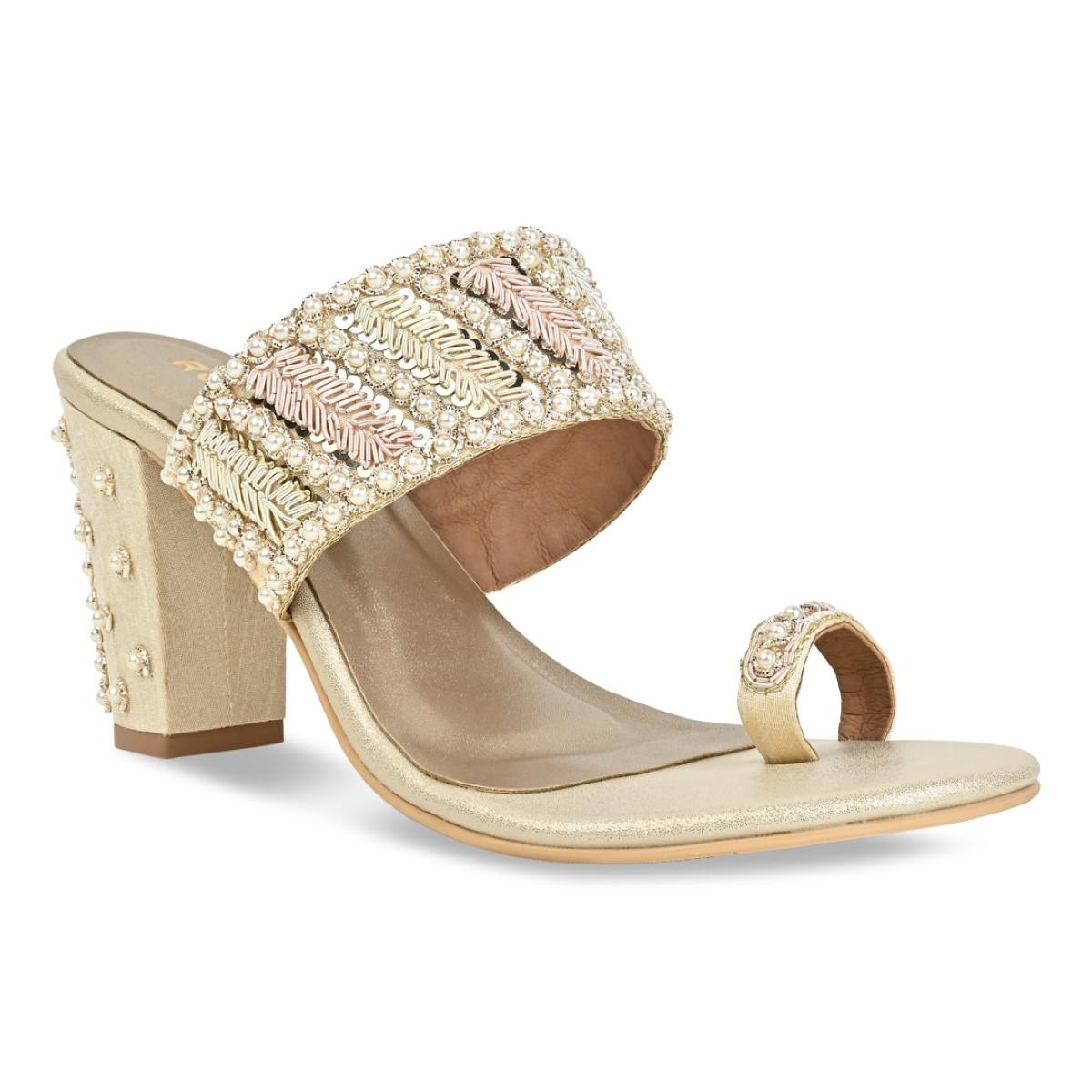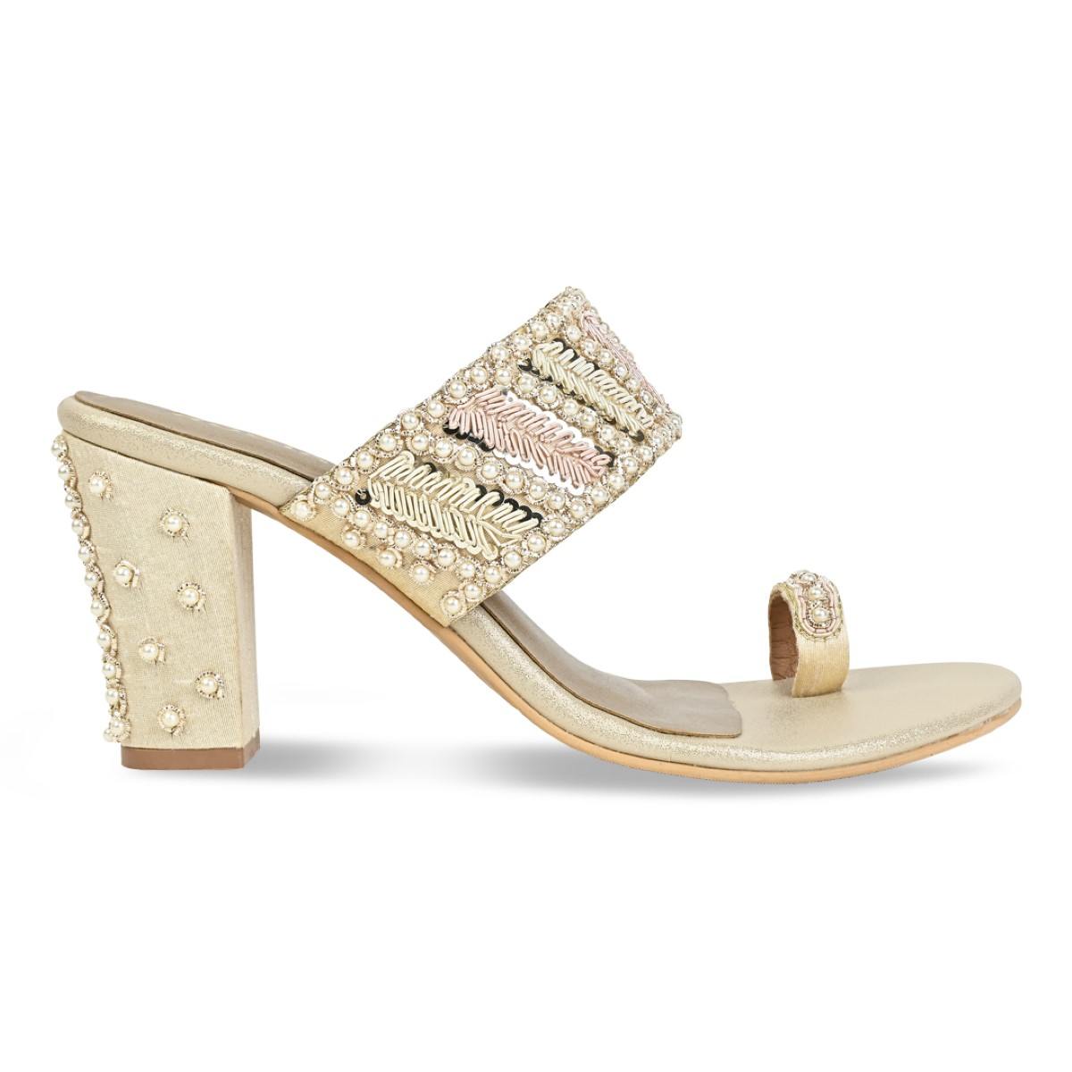 Indulge in the timeless charm of our Women's Ethnic Hand-Embroidered Flats – where tradition meets contemporary style. Each pair is a masterpiece adorned with intricate pearl-studded hand embroidery including on the heel, reflecting the rich heritage of Indian traditional craftsmanship.The perfect wedding pair for teh bride or her tribe. Heel Height : 3 inches