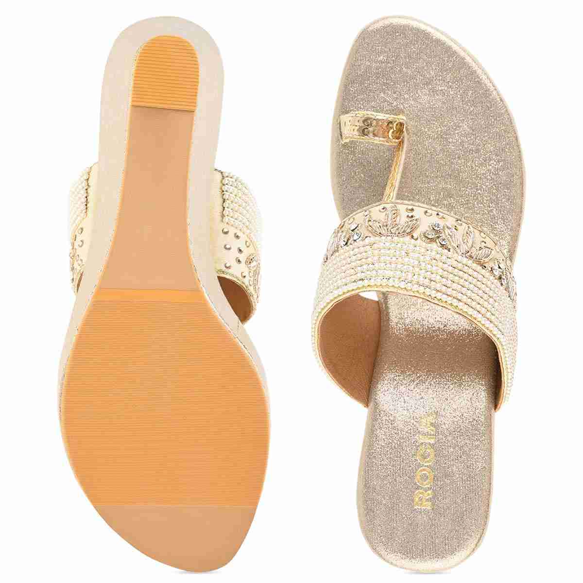 Wedding-perfect beautifully traditional bead embroidered women's wedge sandals for ethnic wear.