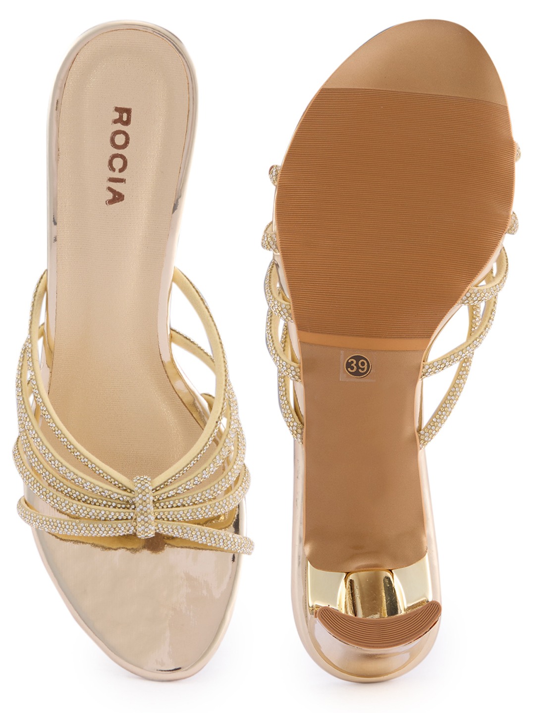 Sparkle with sophistication in these strappy diamond block heels. The glittering straps add a touch of luxury, while the block heel ensures balance and ease. Perfect for cocktail nights or festive occasions, they bring shine and comfort in equal measure. A dazzling choice for your elegant evenings.