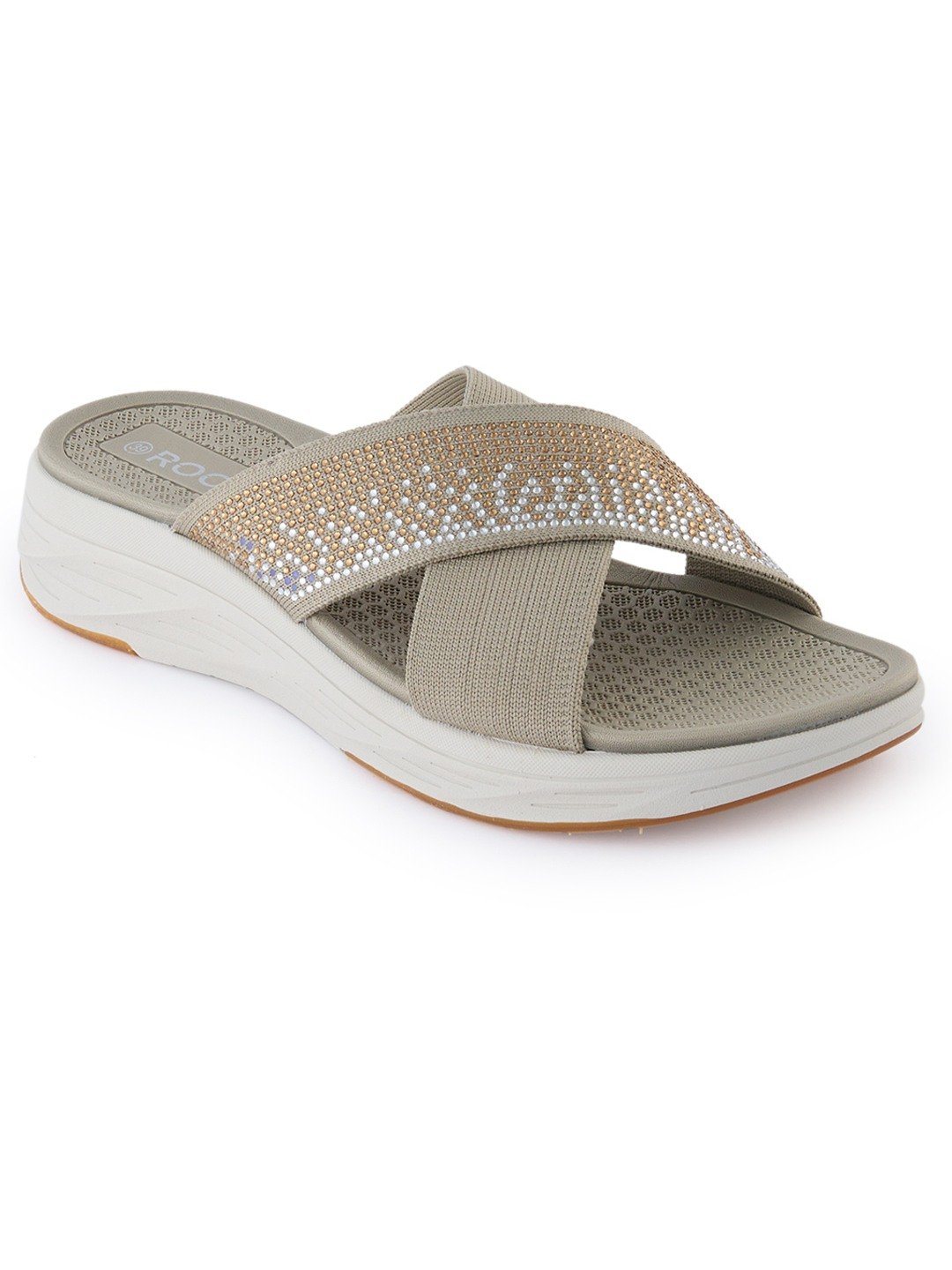 Sparkling studded strapless slip-on flat sandals by Rocia by Regal Shoes with a soft EVA sole—perfect for daily wear and summer comfort.