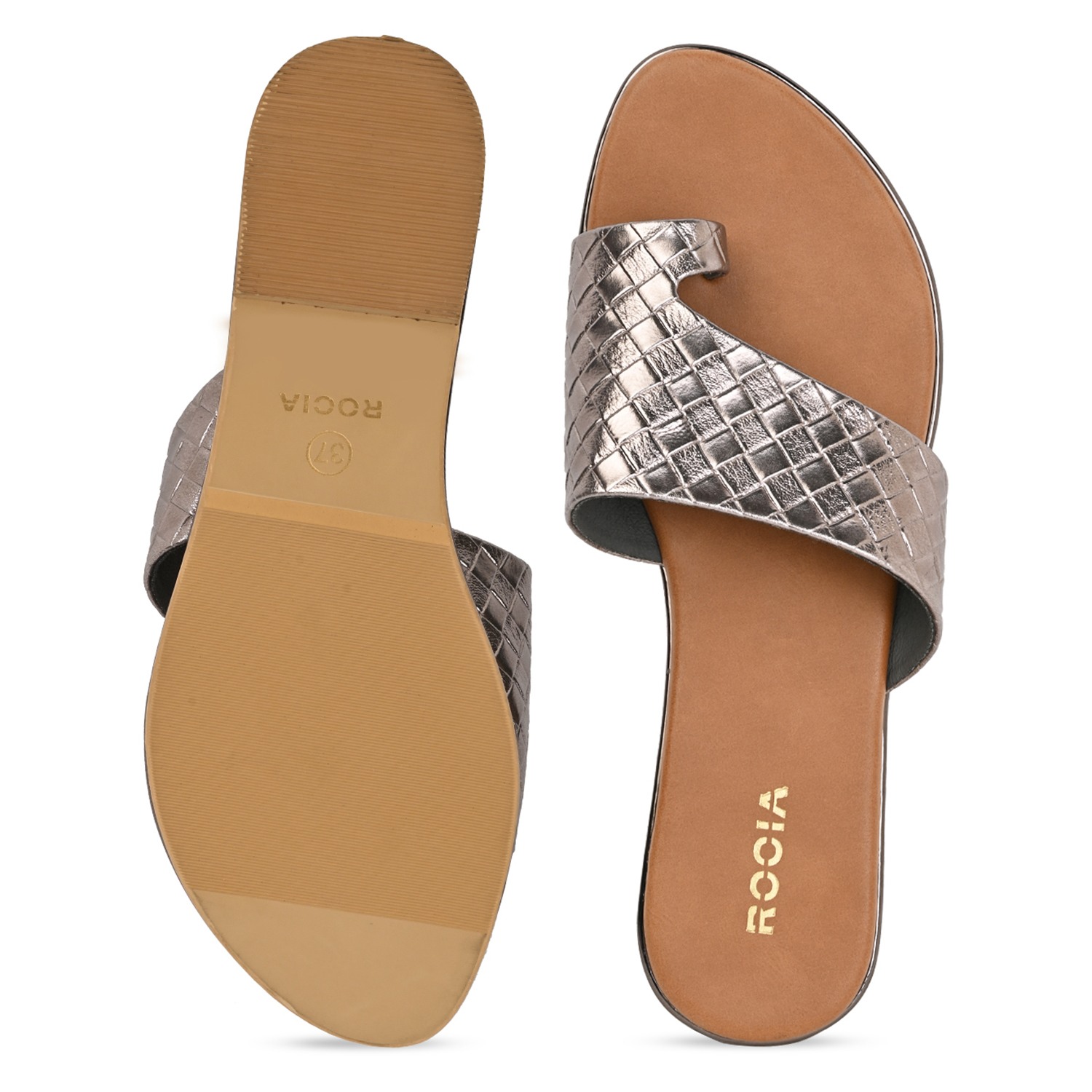 Rocia Women's Trendy Casual Woven Chataai Flats effortlessly blend fashion-forward design with ergonomic craftsmanship. These flat sandals are a testament to modern elegance. Walk with confidence and grace as each step is cushioned by a perfect blend of comfort and trendiness. Elevate your casual ensemble with Rocia's signature flair, where every detail speaks volumes. Heel Height: 1 inch