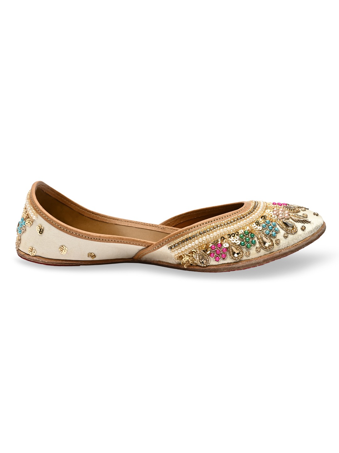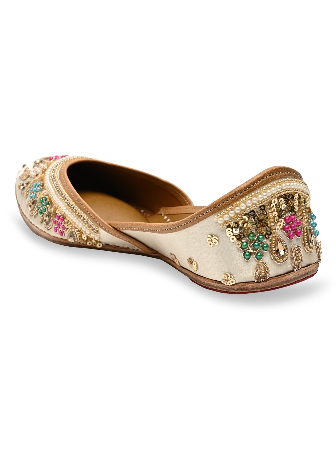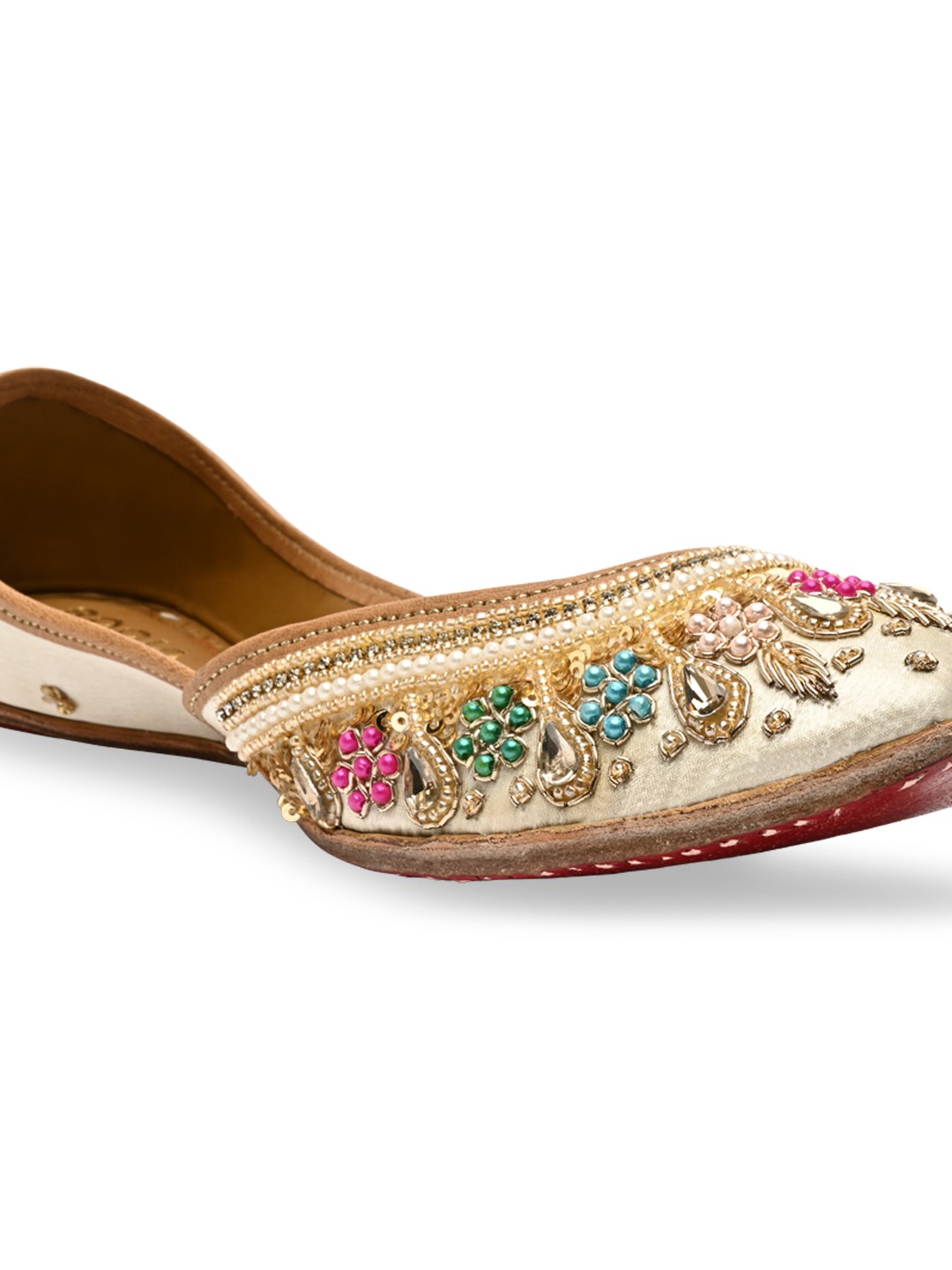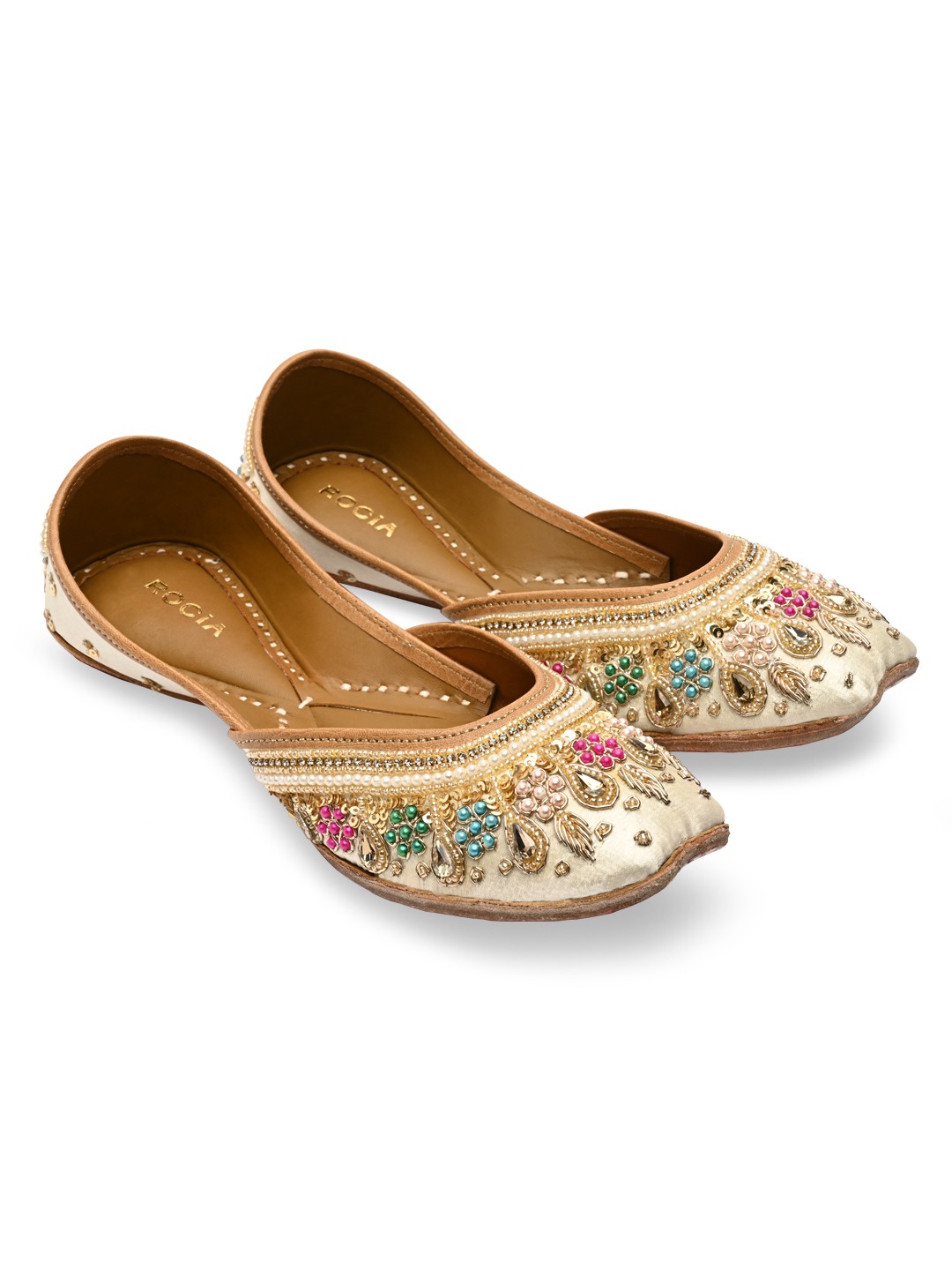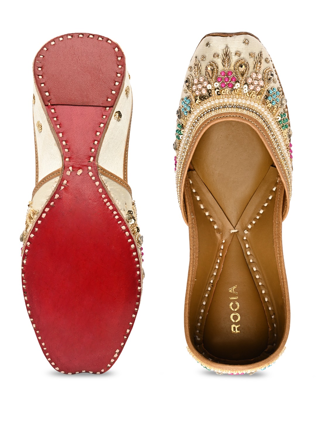 Traditional embroidered traditional juttis or mojaris from Rocia by Regal Shoes, featuring soft lining and a 1-inch lift. Ideal for ethnic occasions, celebrations, and wedding outfits.