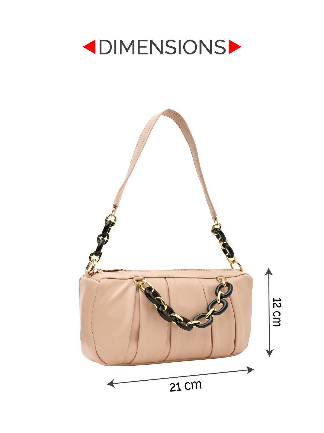 Add a hint of glam to your look with the Rocia Women’s Casual Chain Embellishment Bag. This PU handheld bag features a stylish chain detail, single handle, and zip closure. Compact and trendy, it’s ideal for parties or evening outings. Shop embellished handbags for women at Rocia by Regal Shoes.