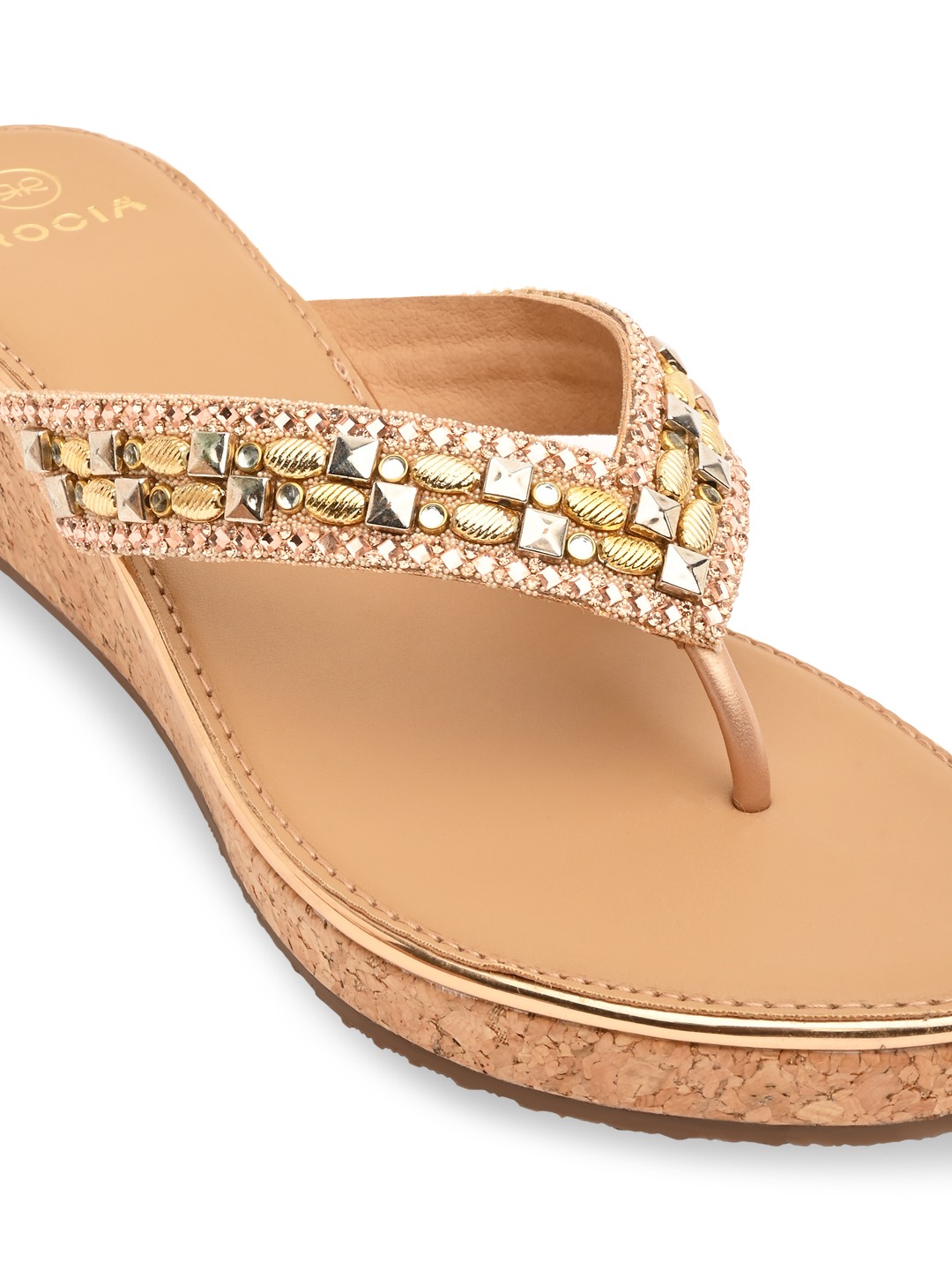 Showcase artisanal style with these cork-covered embroidered wedges. The mix of natural cork texture and intricate embroidery creates a striking contrast. Comfortable yet refined, they’re perfect for summer occasions or festive evenings. Add a boho-chic flair to your step with this unique design.