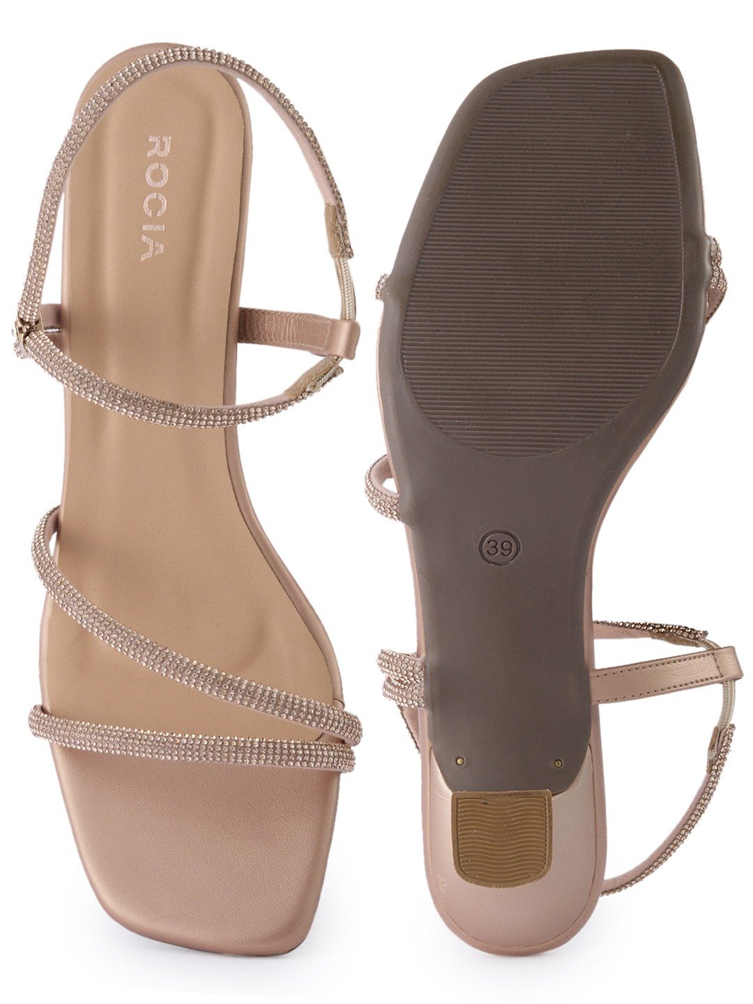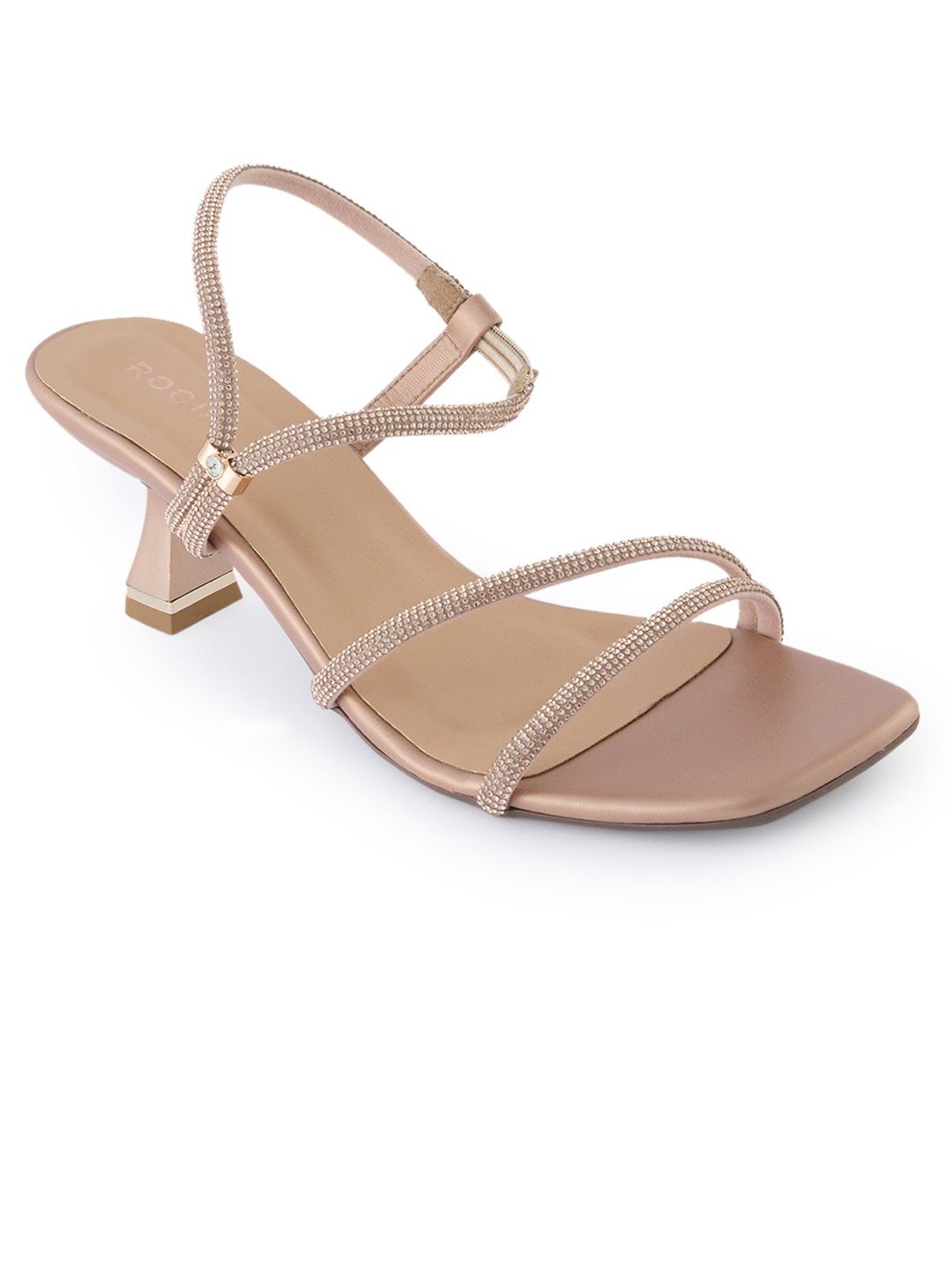 Shine at every celebration with elegant diamond-embellished stiletto sandals by Rocia by Regal Shoes, designed with a square toe and single strap for weddings and festive party nights.