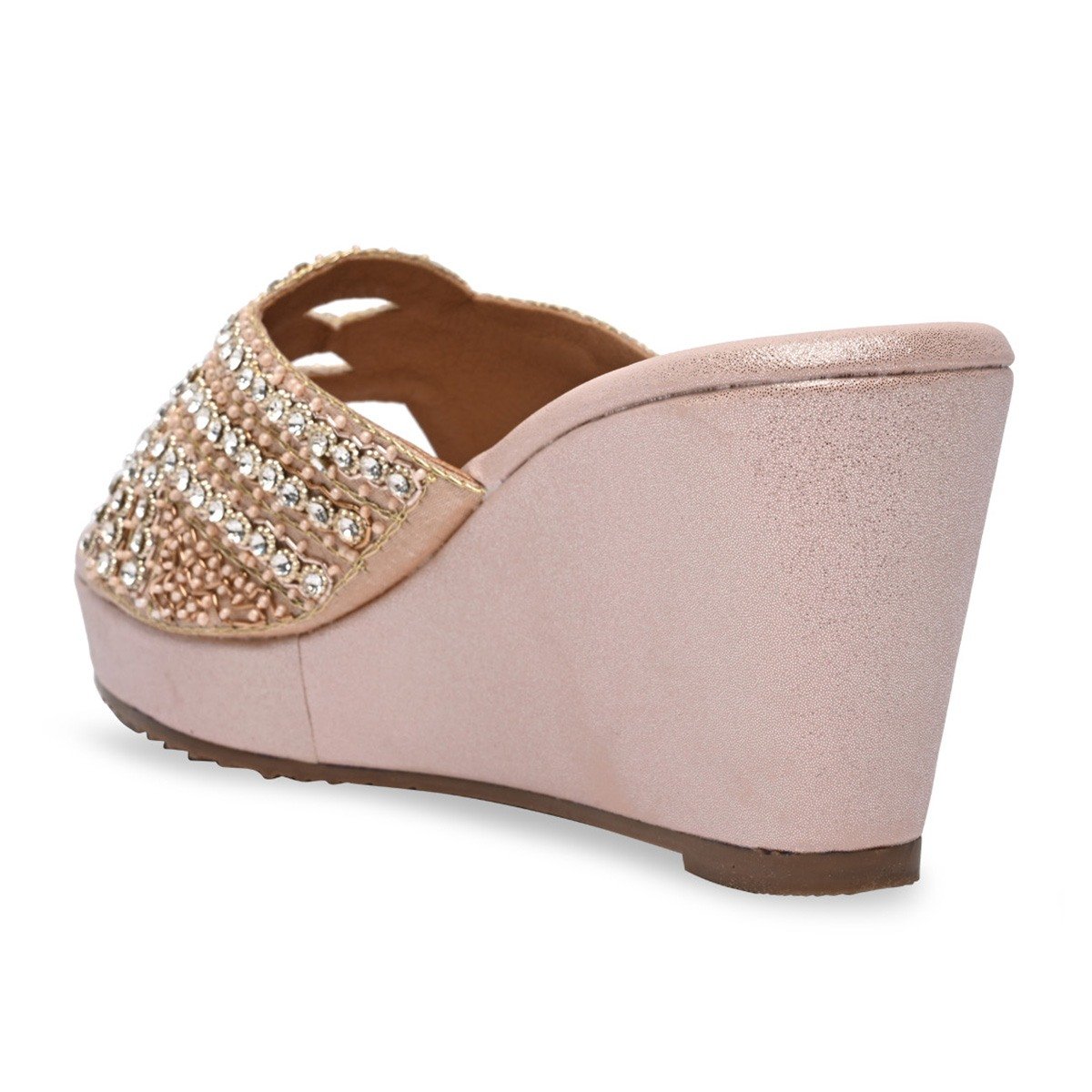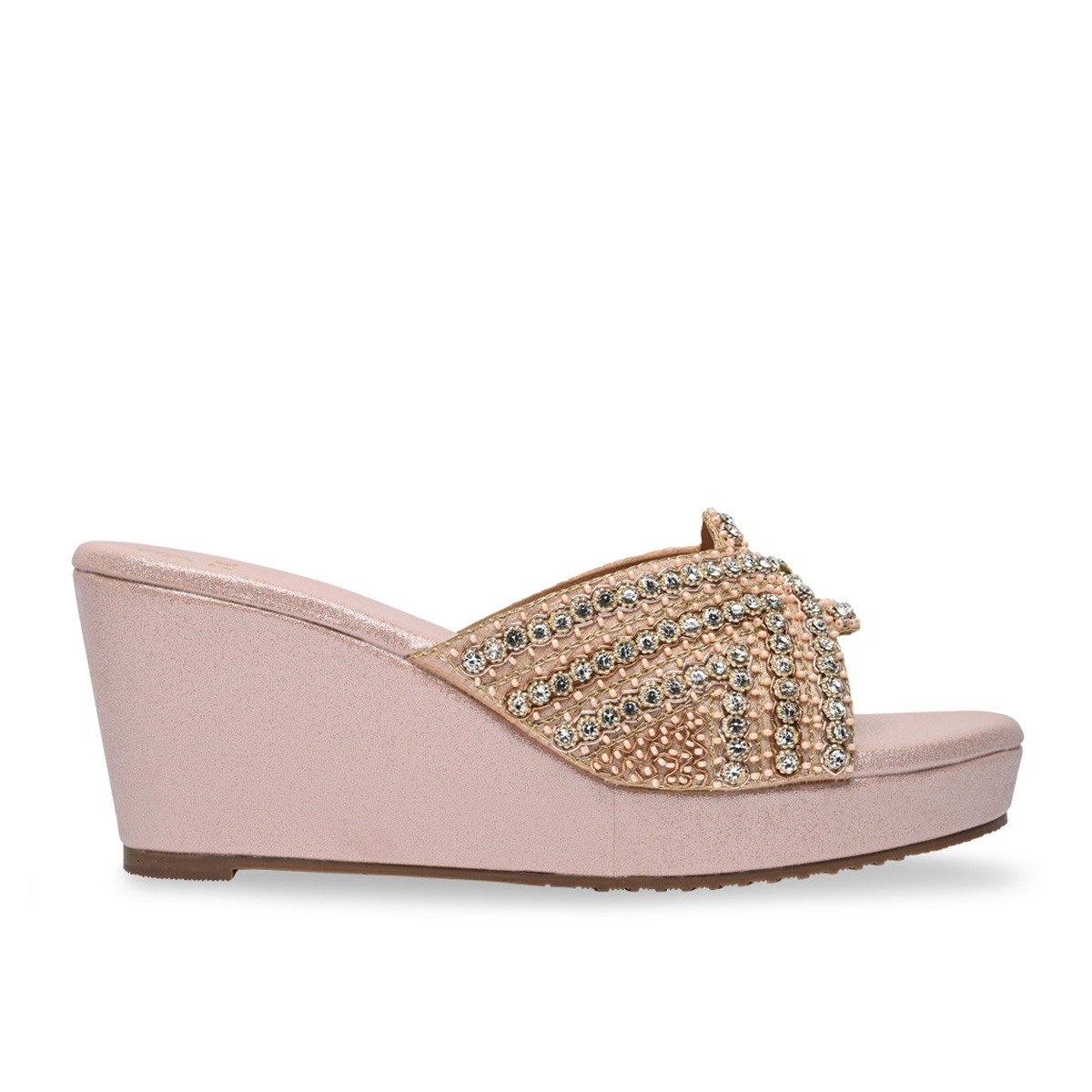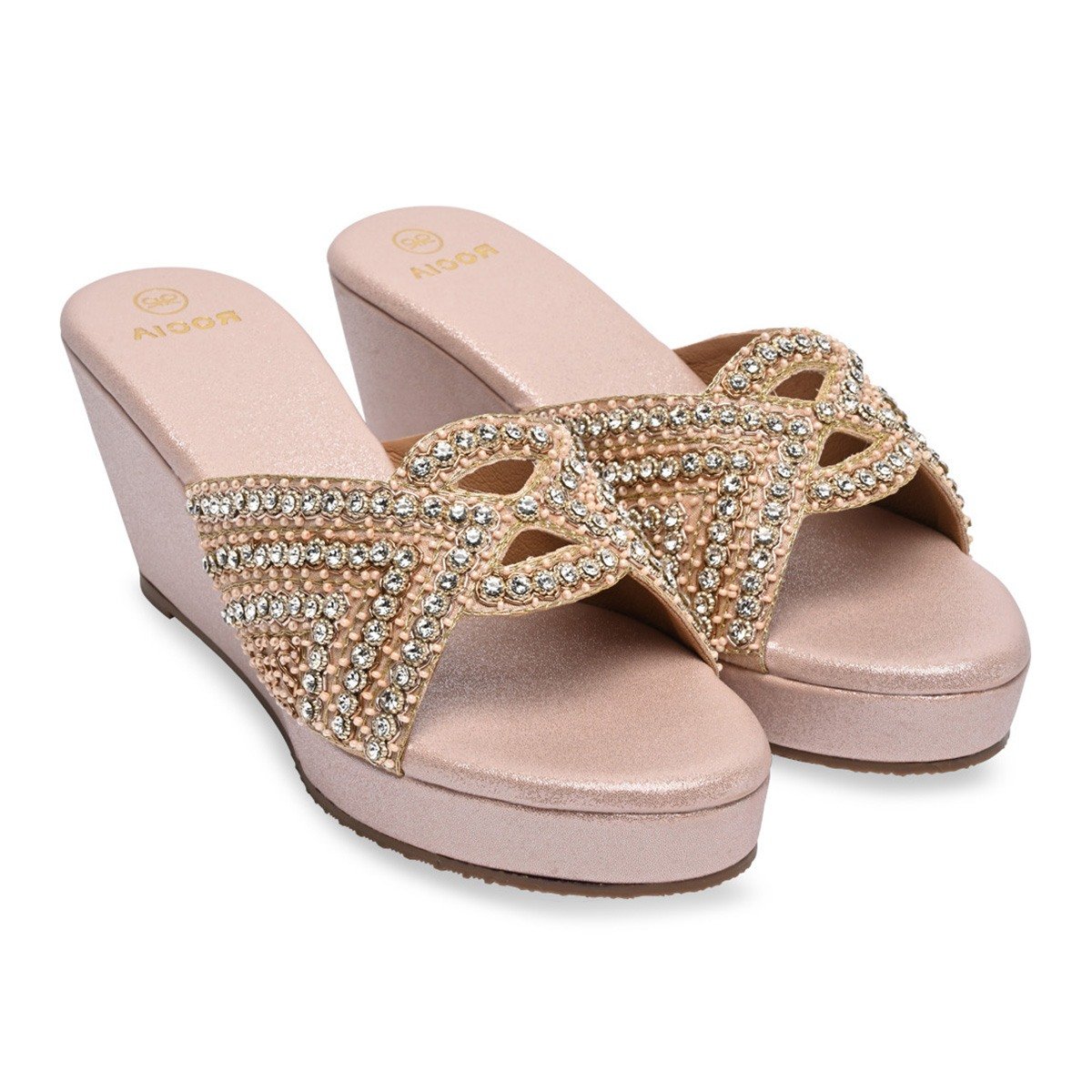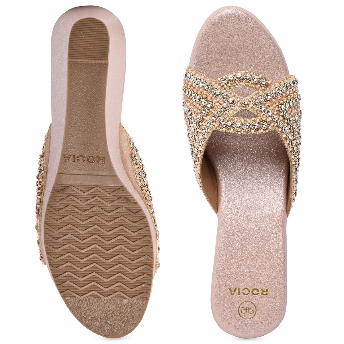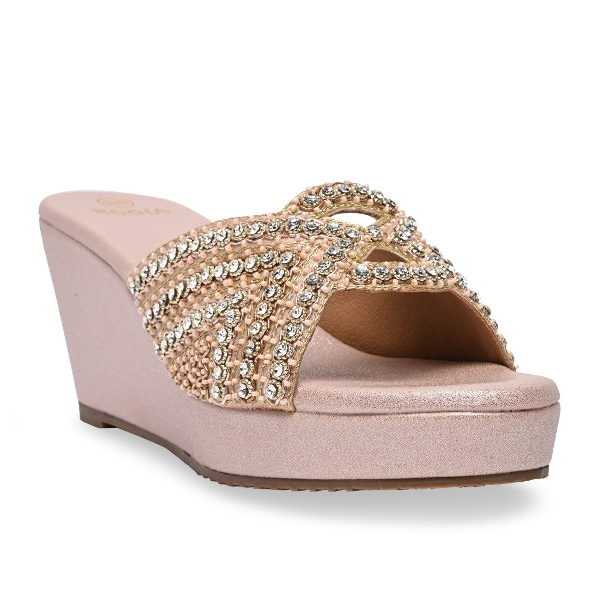 Add opulence to your wardrobe with Rocia’s Women Heavy Encrusted Diamond Platforms. Featuring dazzling diamond detailing, these platforms are perfect for weddings, receptions, and grand events. Heel Height: 3.5 inches