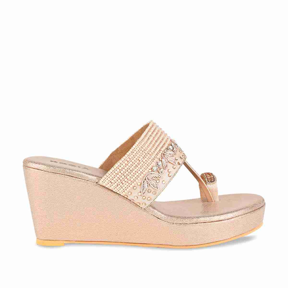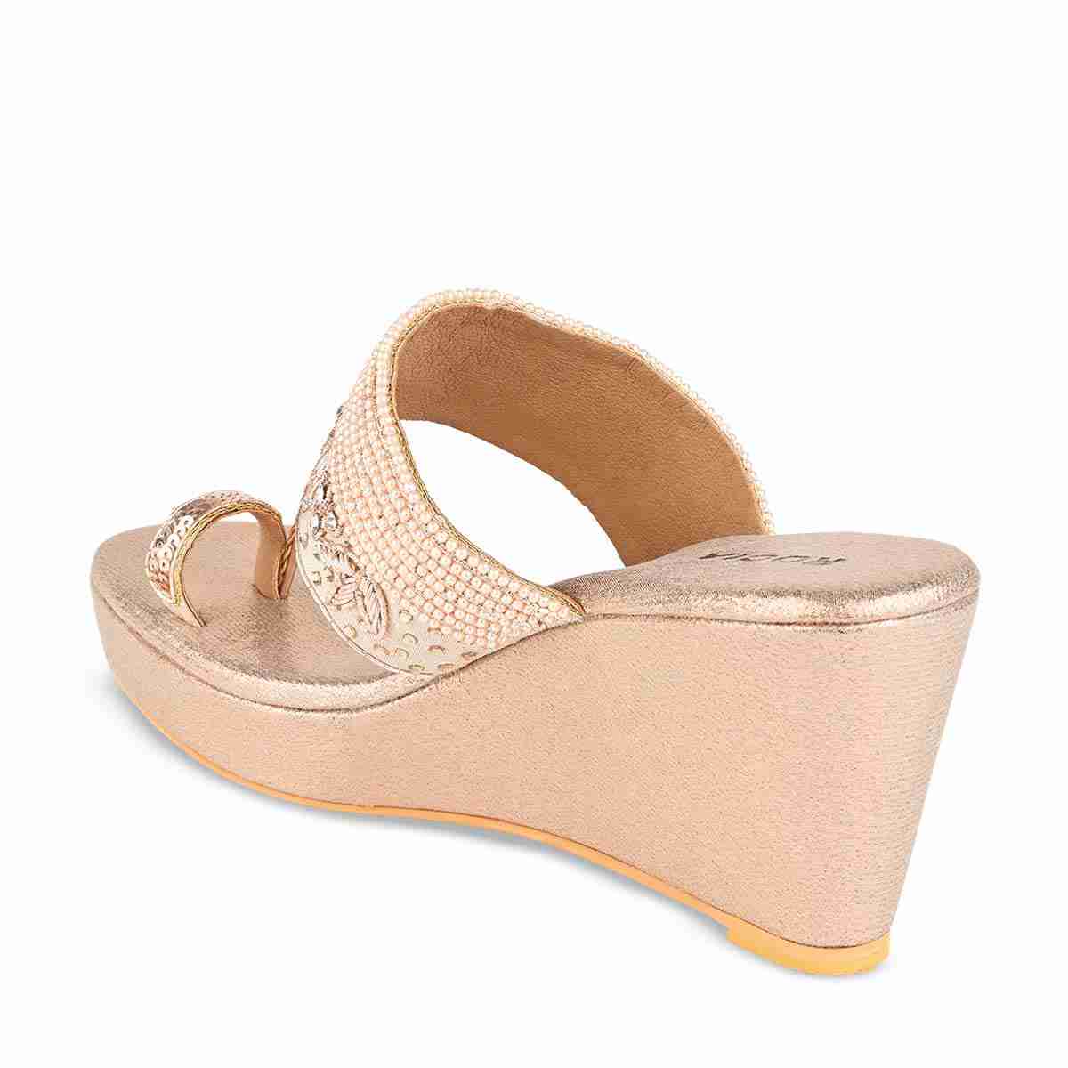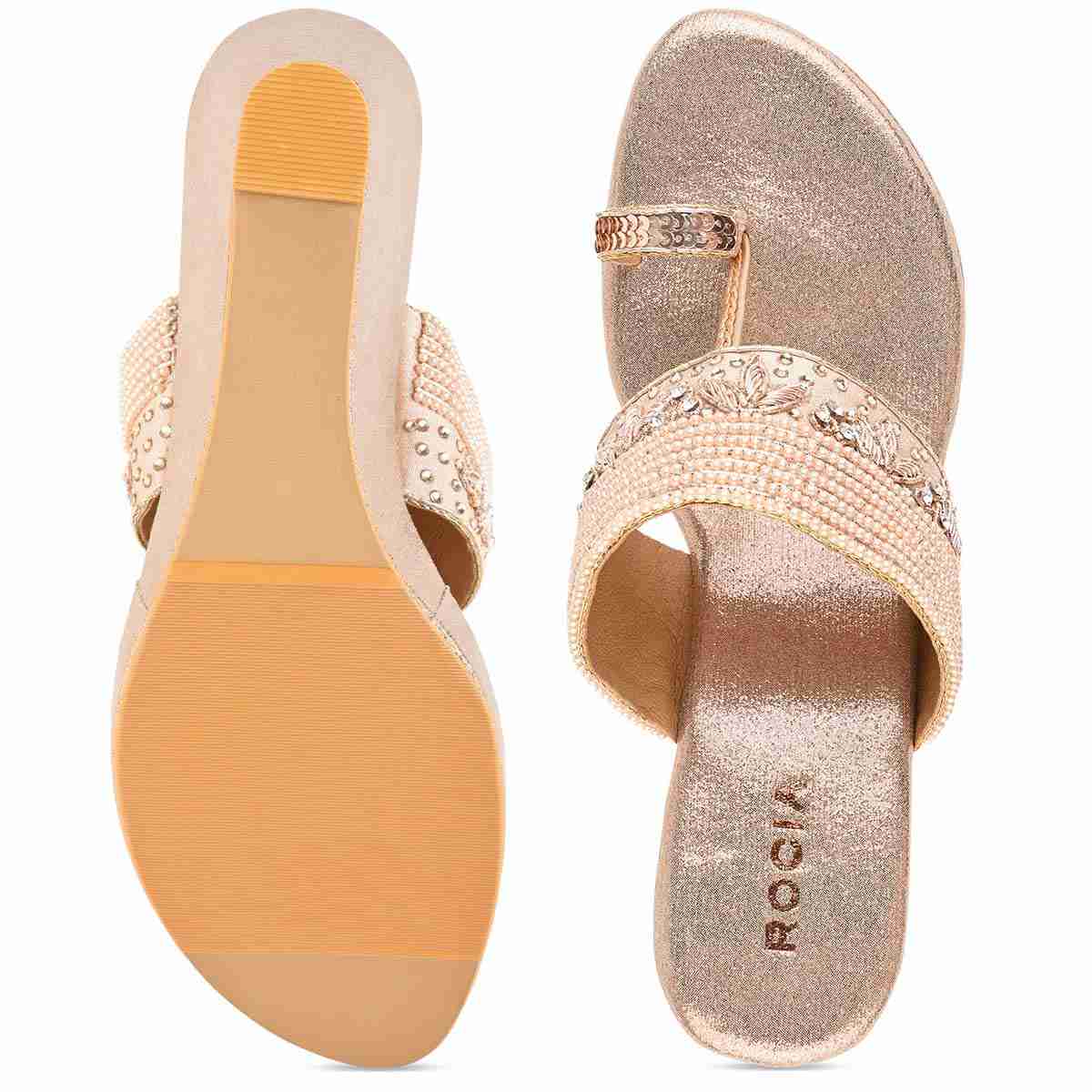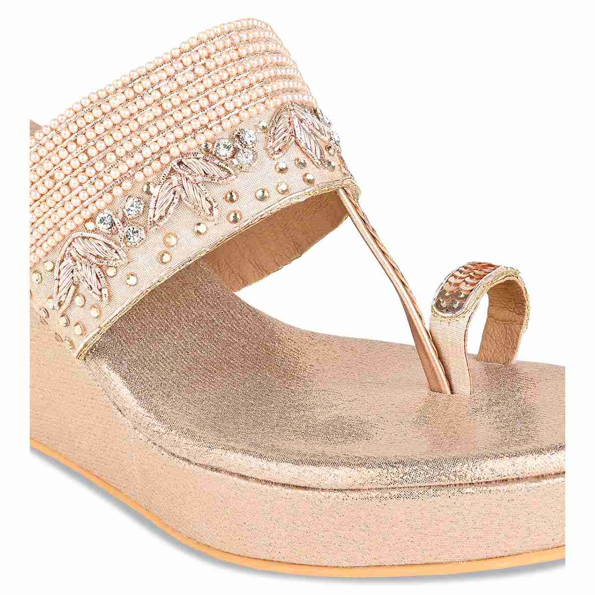 Rocia By Regal Rose Gold Women One Toe Hand Embroidered Wedges