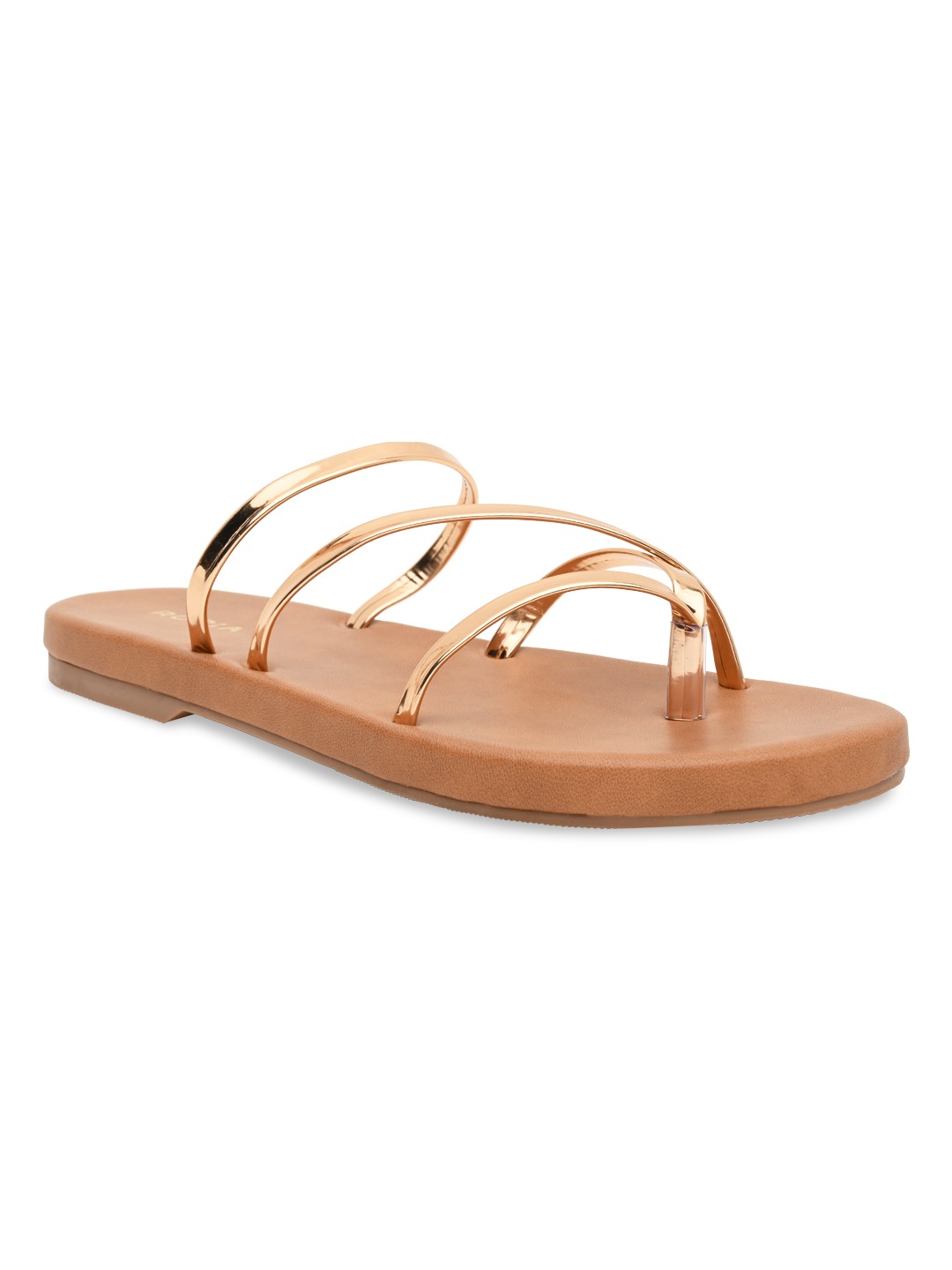 Add a feminine touch to your casual wardrobe with the Rocia By Regal Women Strappy Flats. These synthetic slip-on sandals with TPR soles feature delicate straps and a round open toe, offering both style and comfort for summer outings and casual events
