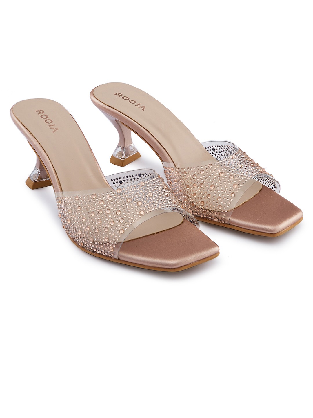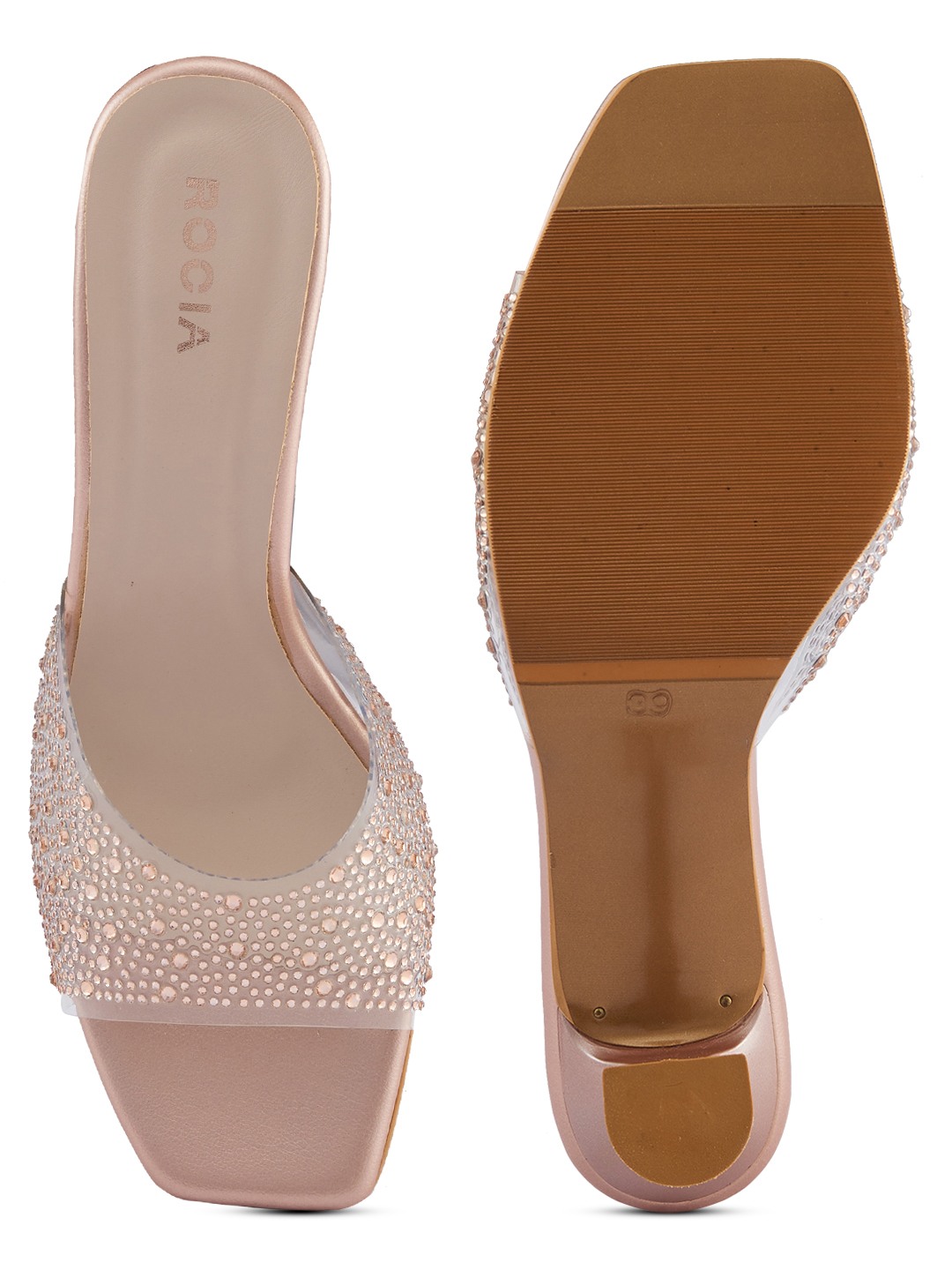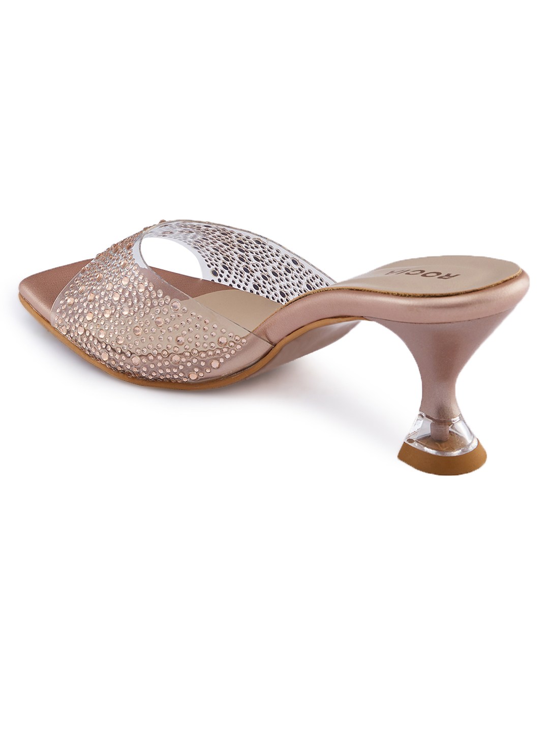 Shine bright in these diamond-studded vinyl stilettos that redefine luxury. The transparent design gives them a bold, contemporary appeal, while the glimmering accents add sophistication. Lightweight and striking, they make every outfit runway-ready. Perfect for evening wear or glamorous events.