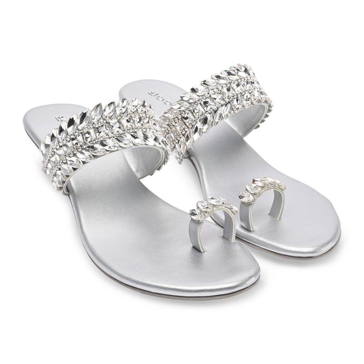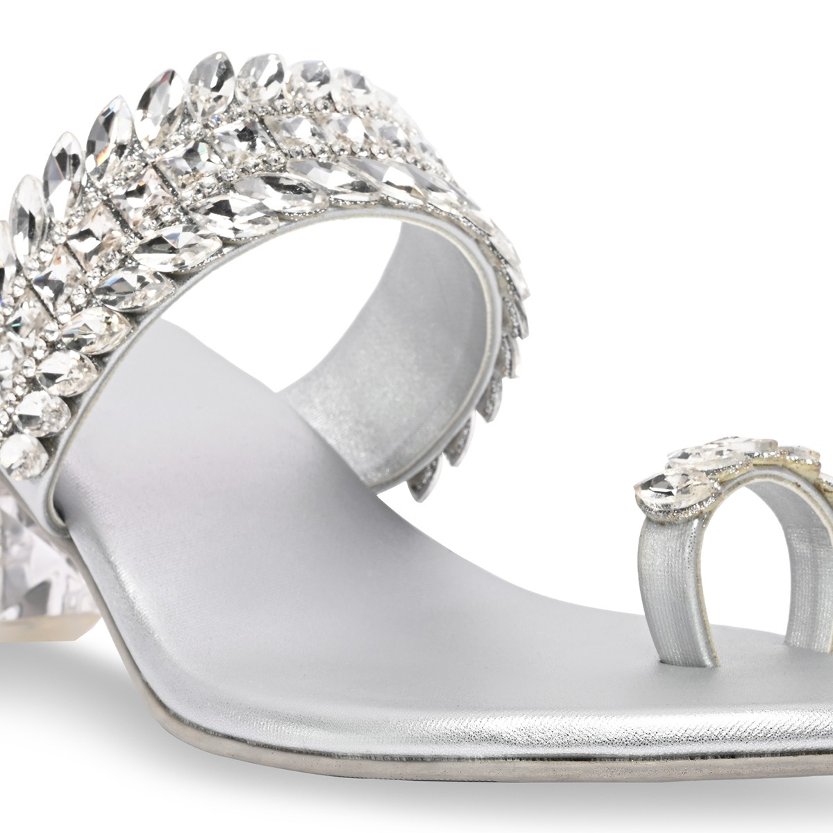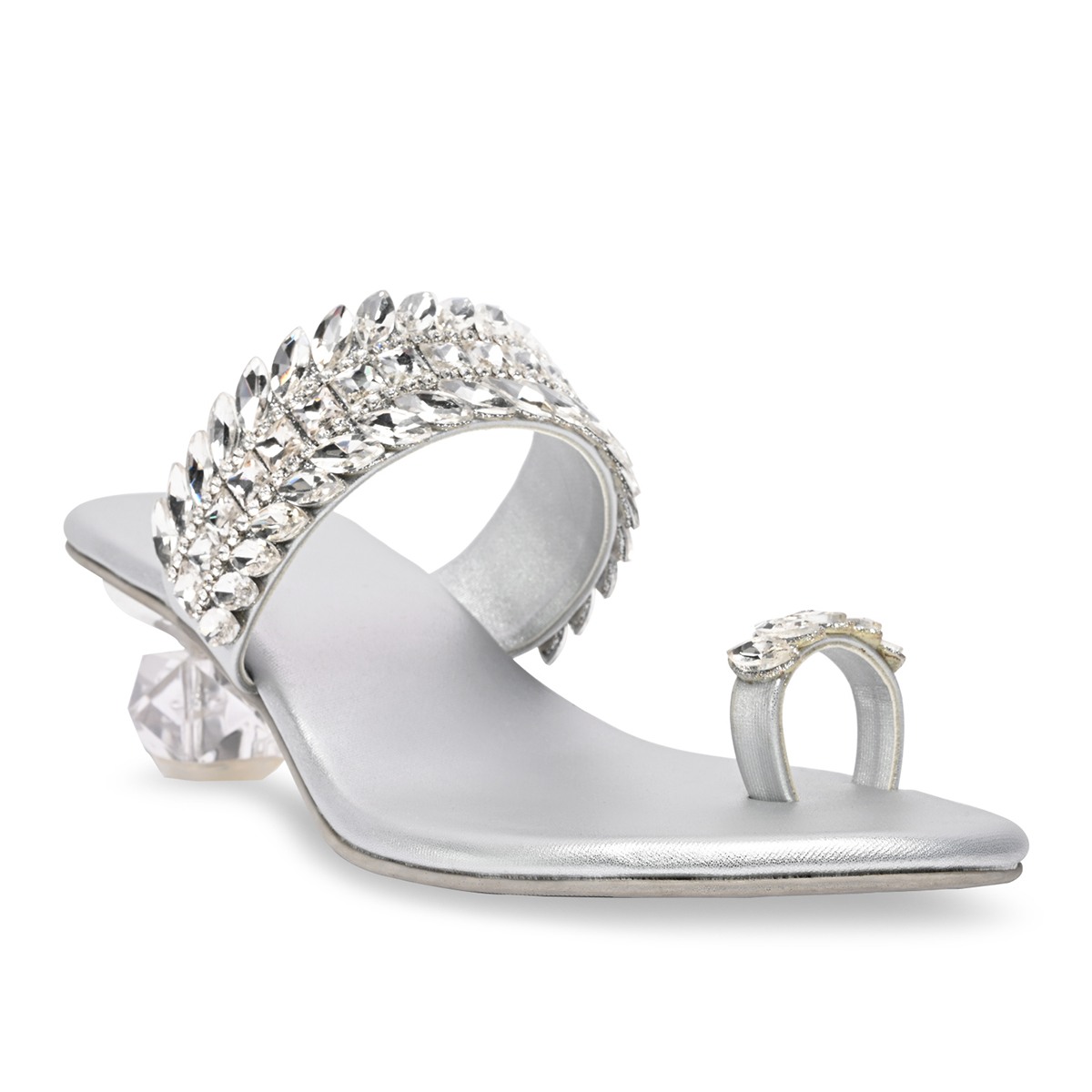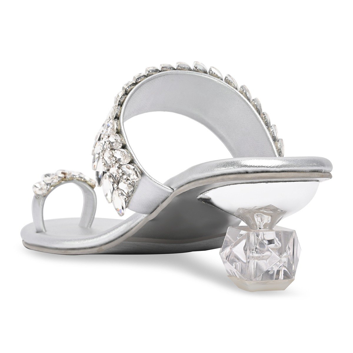 Step into luxury with Rocia’s Women One Toe Diamond Encrusted Glass Heel Sandals. The dazzling diamond accents and transparent glass heel create a unique, glamorous look perfect for weddings and parties. Heel Height: 1.5 inches