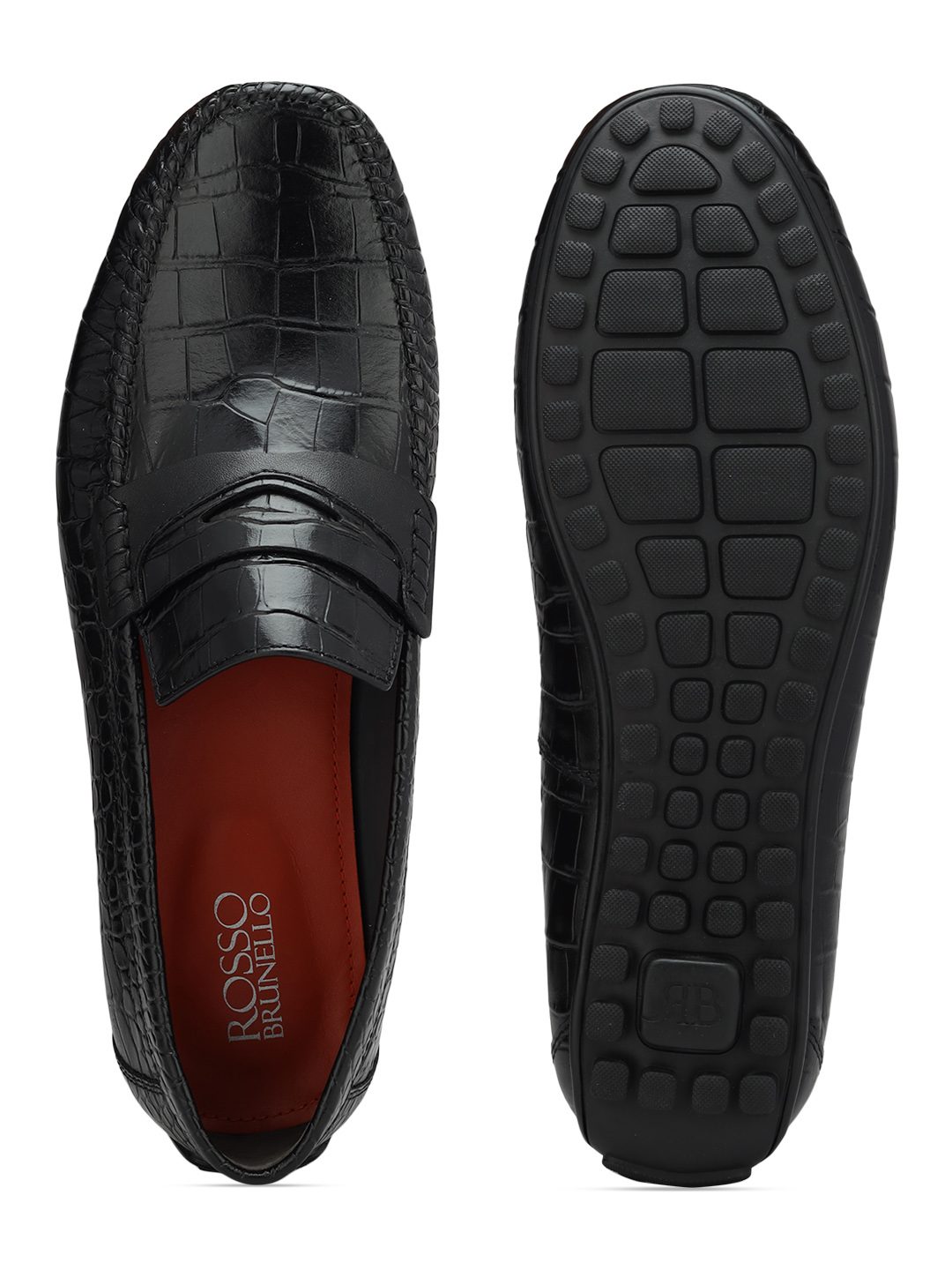 ROSSO BRUNELLO MEN BLACK MENS MOCCASINS