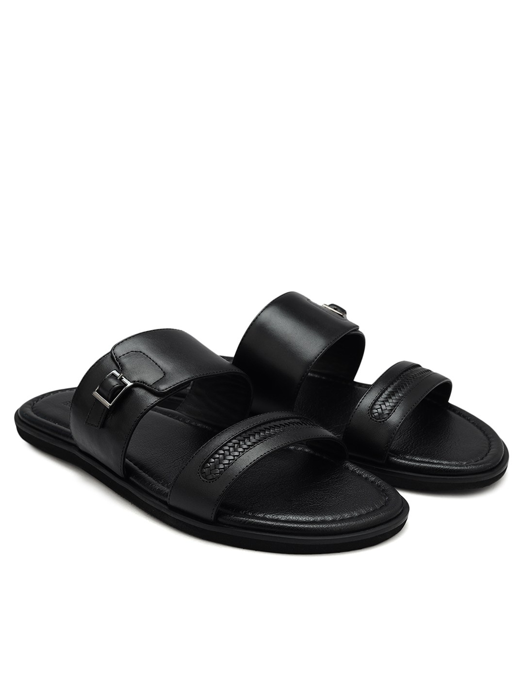 ROSSO BRUNELLO MEN BLACK SLIPPERS