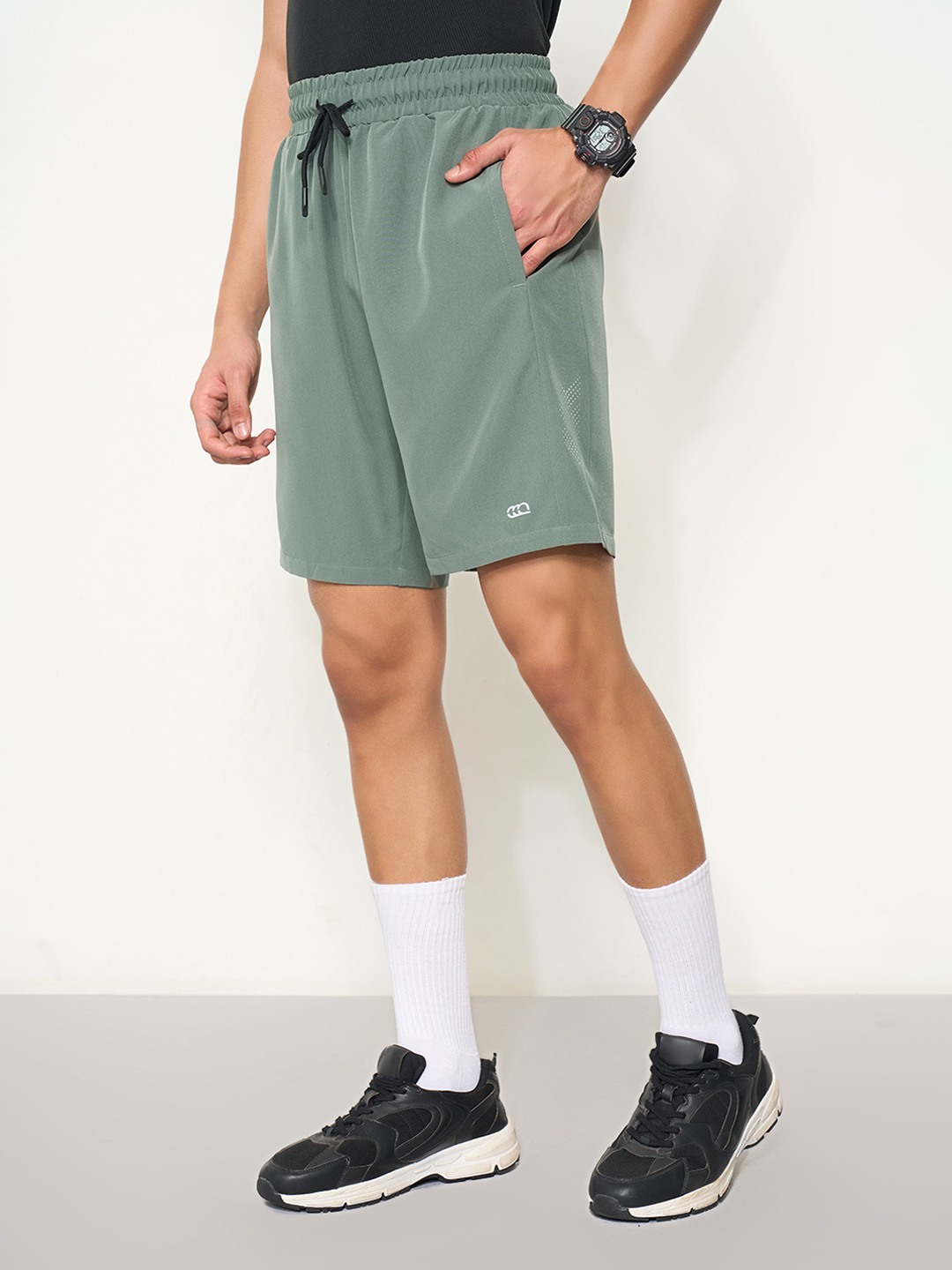 Streamlined and functional, these shorts blend comfort with an athletic edge. Designed in lightweight stretch knit with side mesh panels, an elasticated waistband, and adjustable drawstrings for a secure fit. Quick-dry and breathable, they move seamlessly through training and downtime.