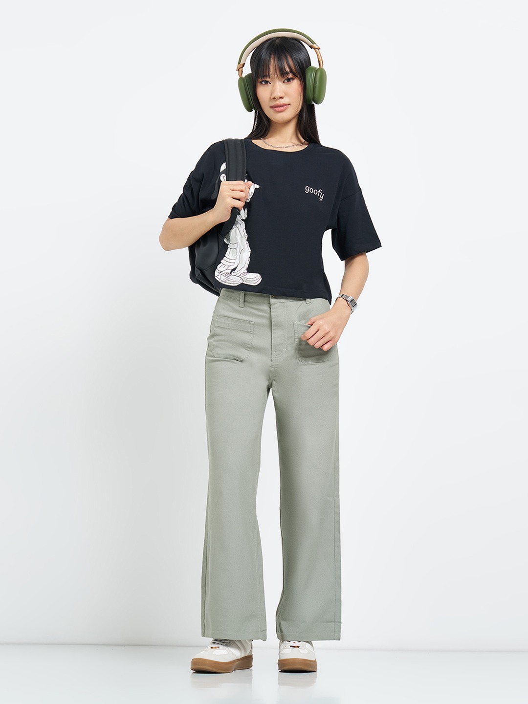 Designed with a clean, utilitarian sensibility, these straight-fit jeans offer a structured yet relaxed silhouette. Cut with a straight leg, they feature oversized front patch pockets, belt loops and a classic button-and-zip closure that gives them a workwear-inspired edge. The solid finish keeps the look sharp and versatile while maintaining a modern, laid-back appeal.