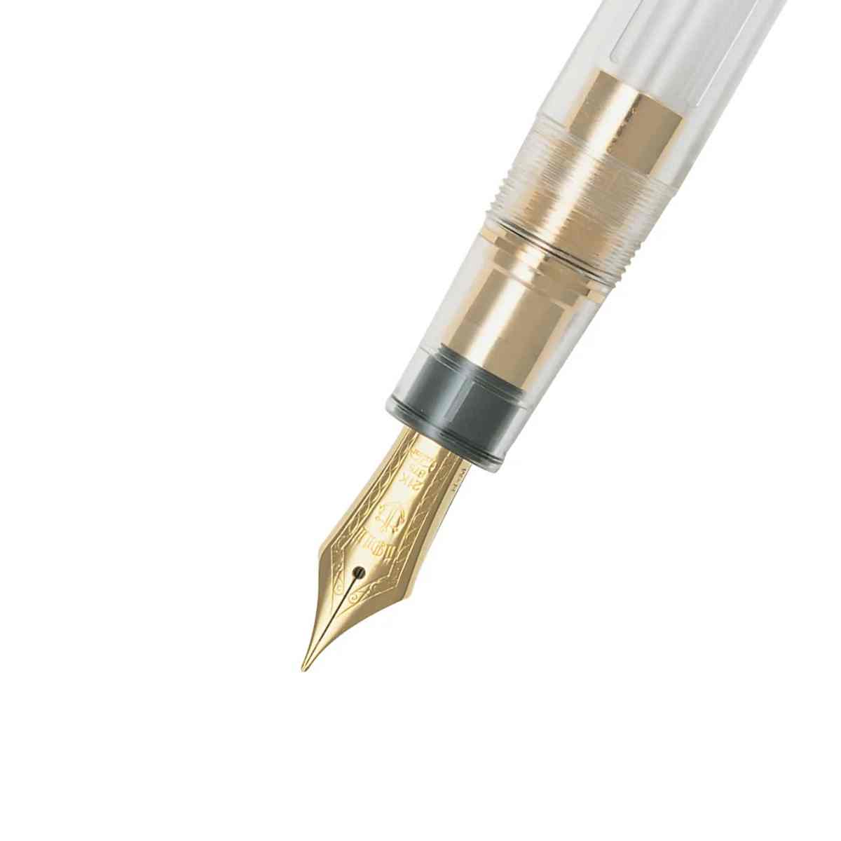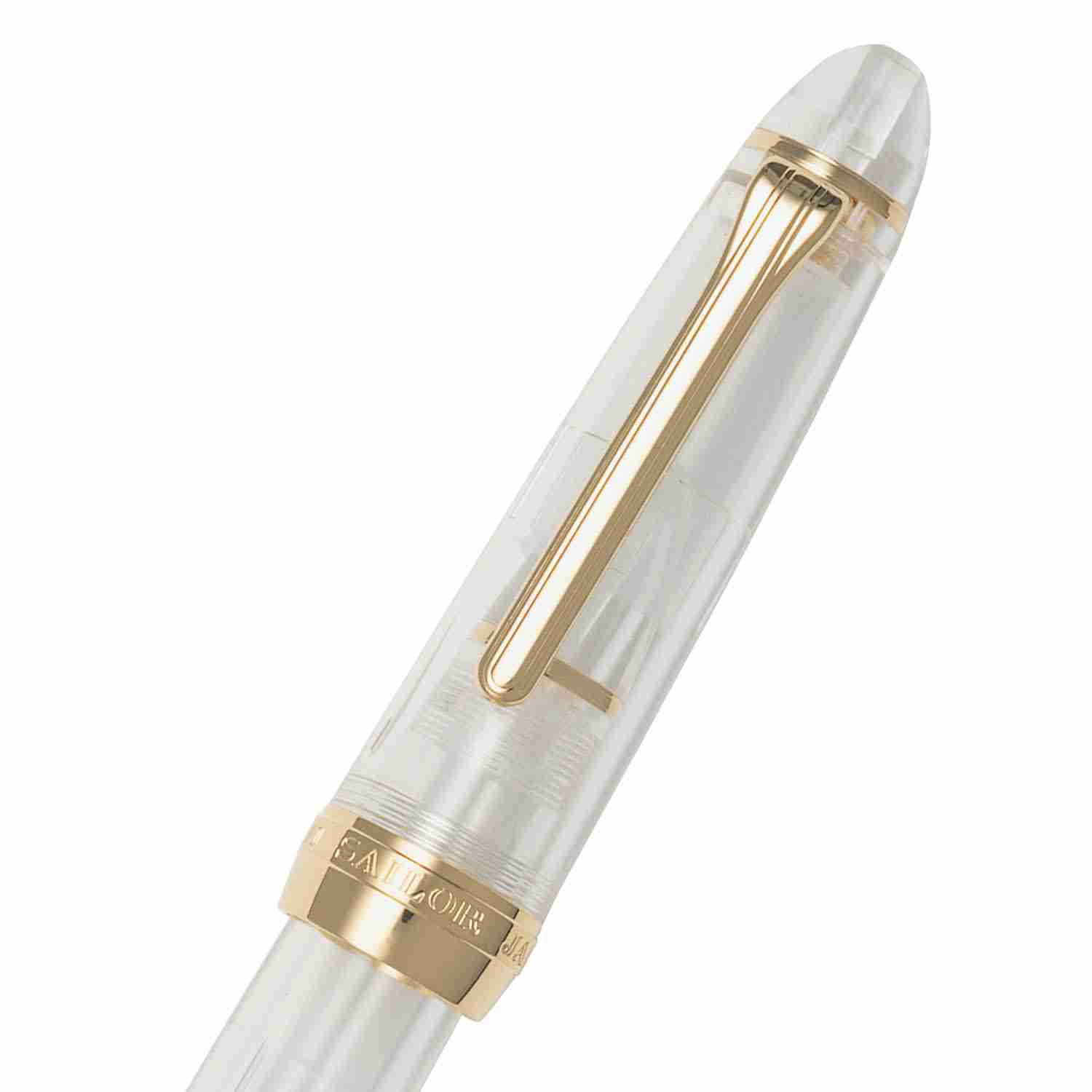 The Sailor 1911 Large fountain pen features a screw-on cap, an inscribed cap-band, and a 21k gold nib. Named after the companys founding year, the 1911 range was designed to showcase the standards of quality and craftsmanship that have made Sailor so well respected from the beginning. The rounded ends give the 1911 a more classic cigar shape than the Pro Gear range, and is for those who prefer a more traditional look. The pen benefits from Sailors excellent cartridge-converter design, allowing it to be filled with bottled ink (using the provided converter) or with Sailor ink cartridges. This is a crystal-clear demonstrator model.