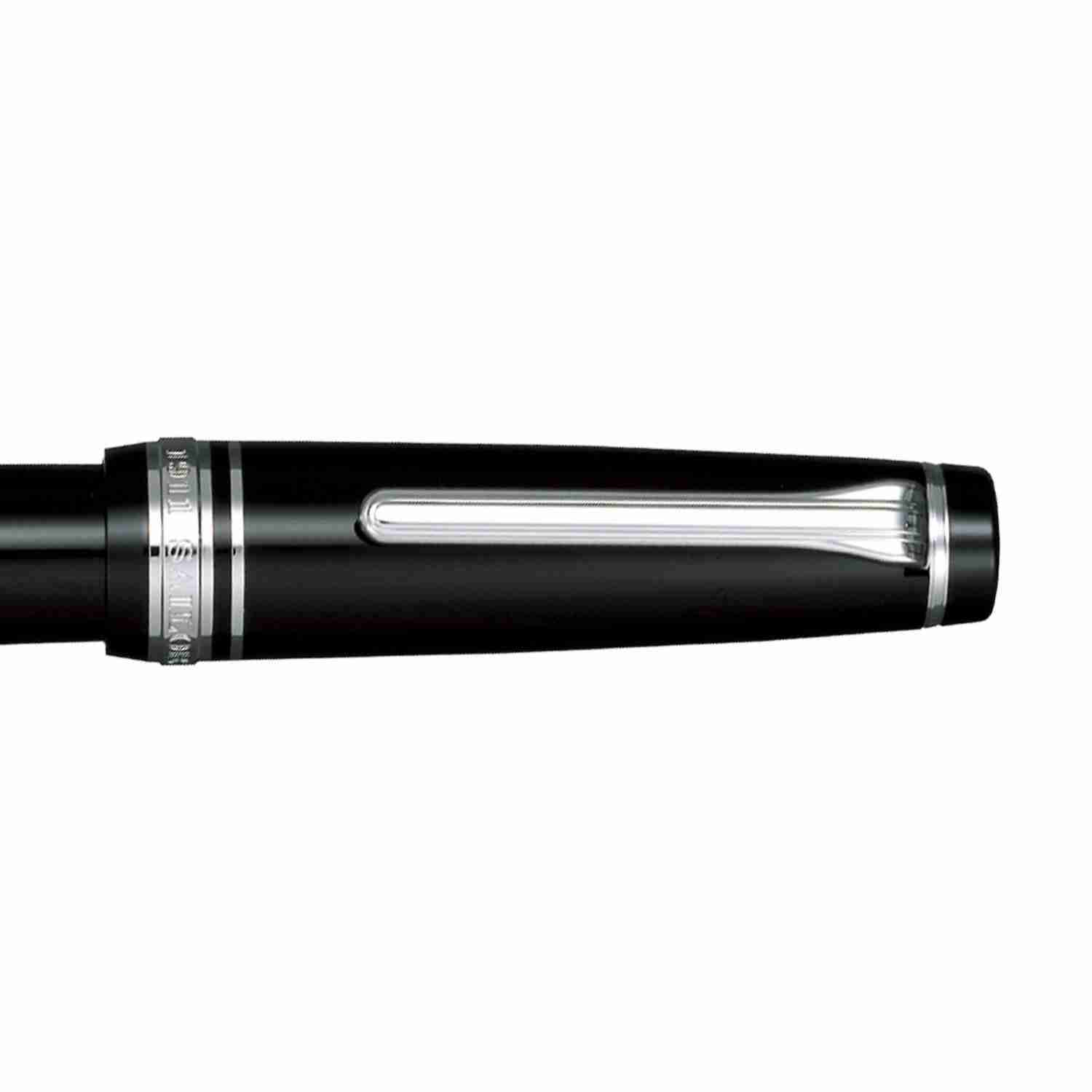 The Pro Gear, as it is affectionately known, is Sailors flat-top, full-sized fountain pen. The Sailor Pro Gear Black Silver offers a stylish and contemporary take on a classic style, and has a solid gold 21k nib. The narrow bands above the engraved cap and at the top of the section accentuate the subtle lines of the design. The pen benefits from Sailors excellent cartridge-converter design, allowing it to be filled with bottled ink (using the provided converter) or with Sailor ink cartridges. The Sailor Anchor logo, in rhodium-plated brass, adorns the top of the cap.