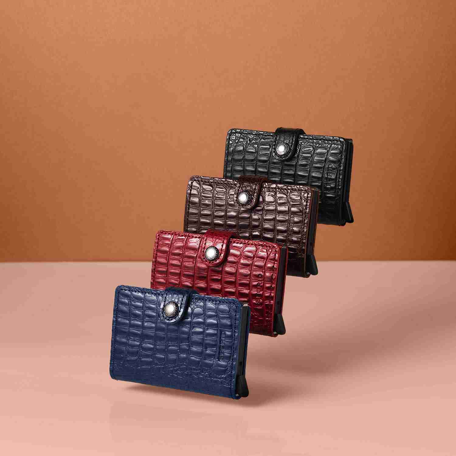 This cow-hide leather has a handmade crocodile-embossed finish. The deep rich multitoned colour is achieved with the help of the special Tamponato technique and is finished with a high gloss.