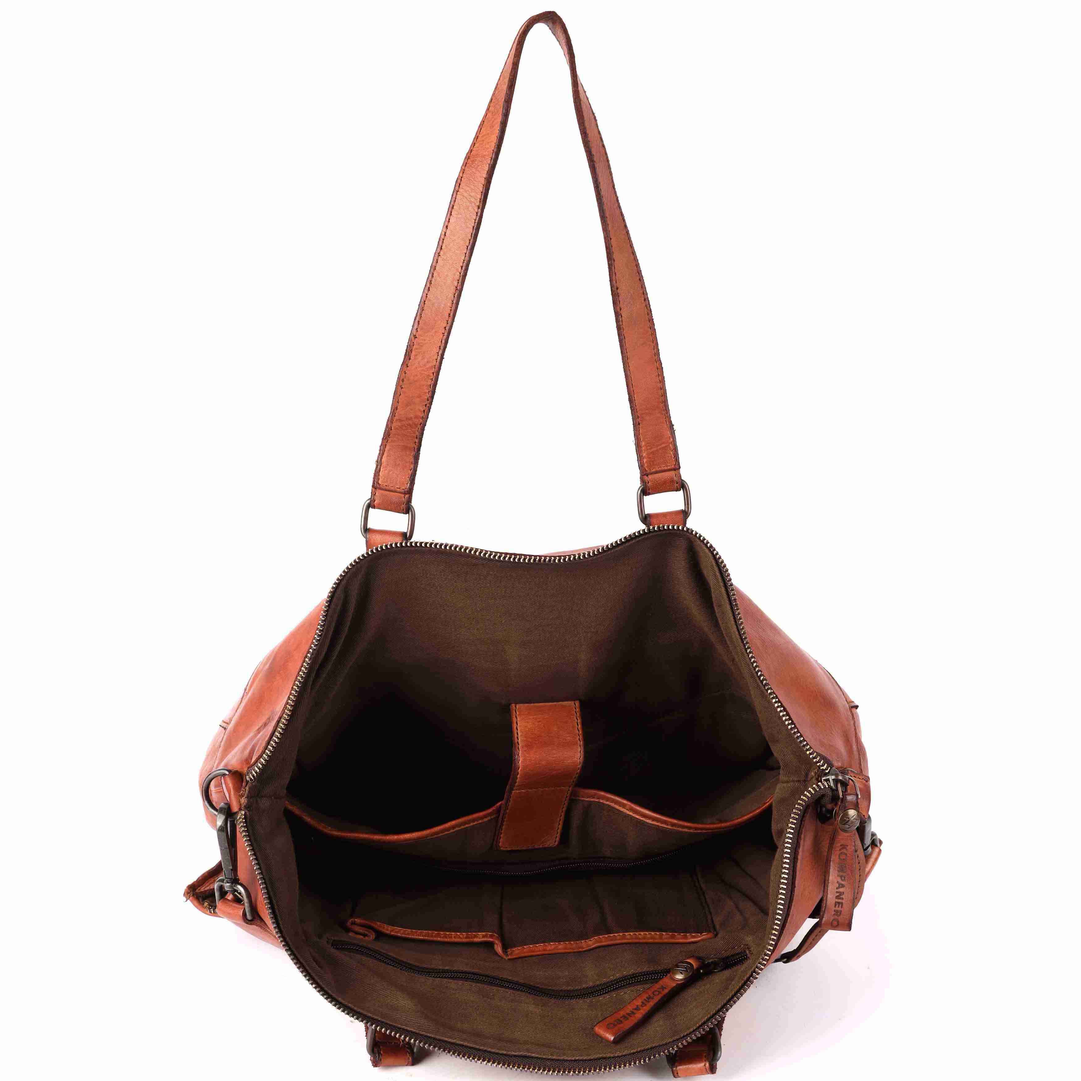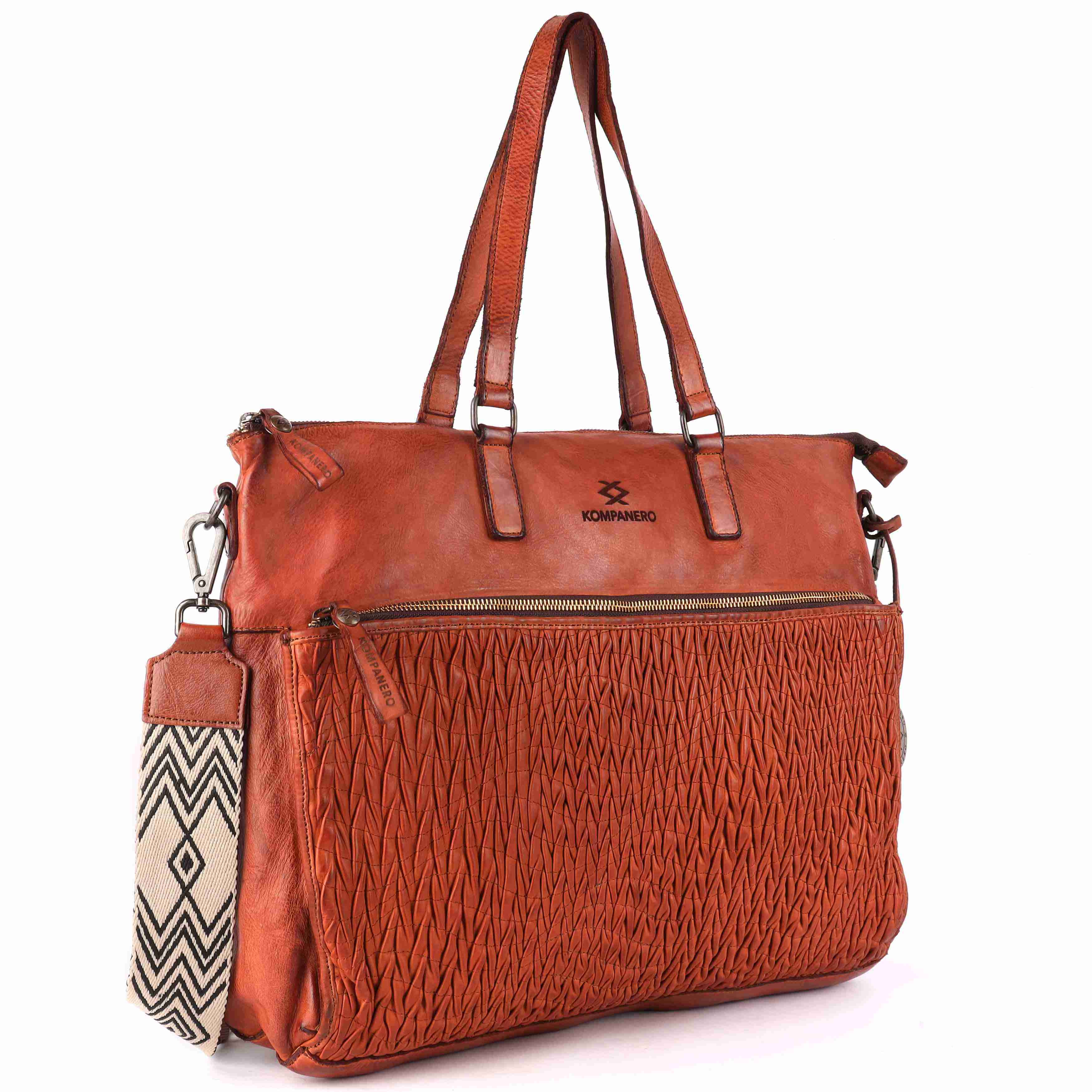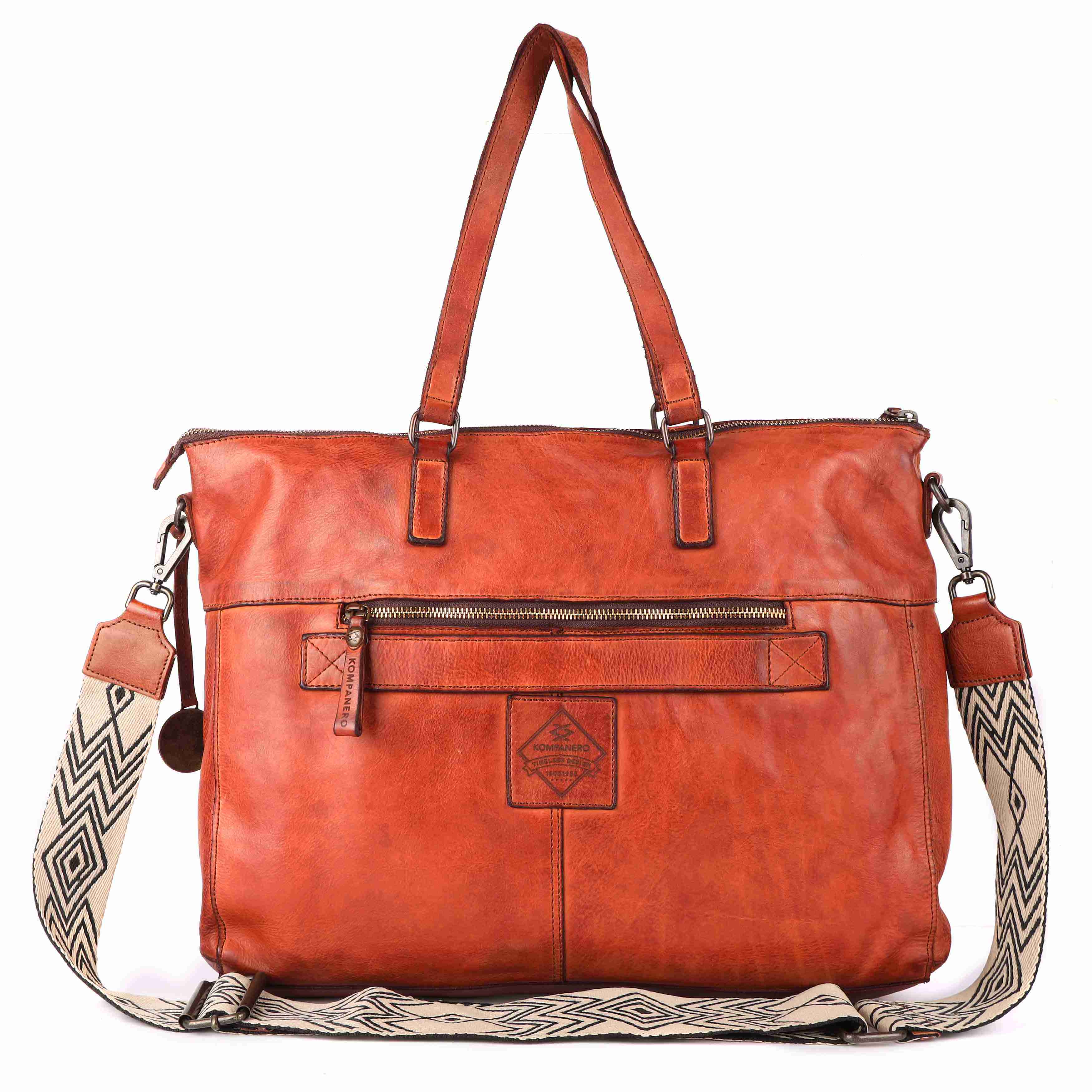 The Serena leather bags, made from LWG Gold certified vegetable-tanned leather, blend style and functionality. Featuring antique metal fittings and a multicolor jacquard strap, they are lined with cotton drill for protection.