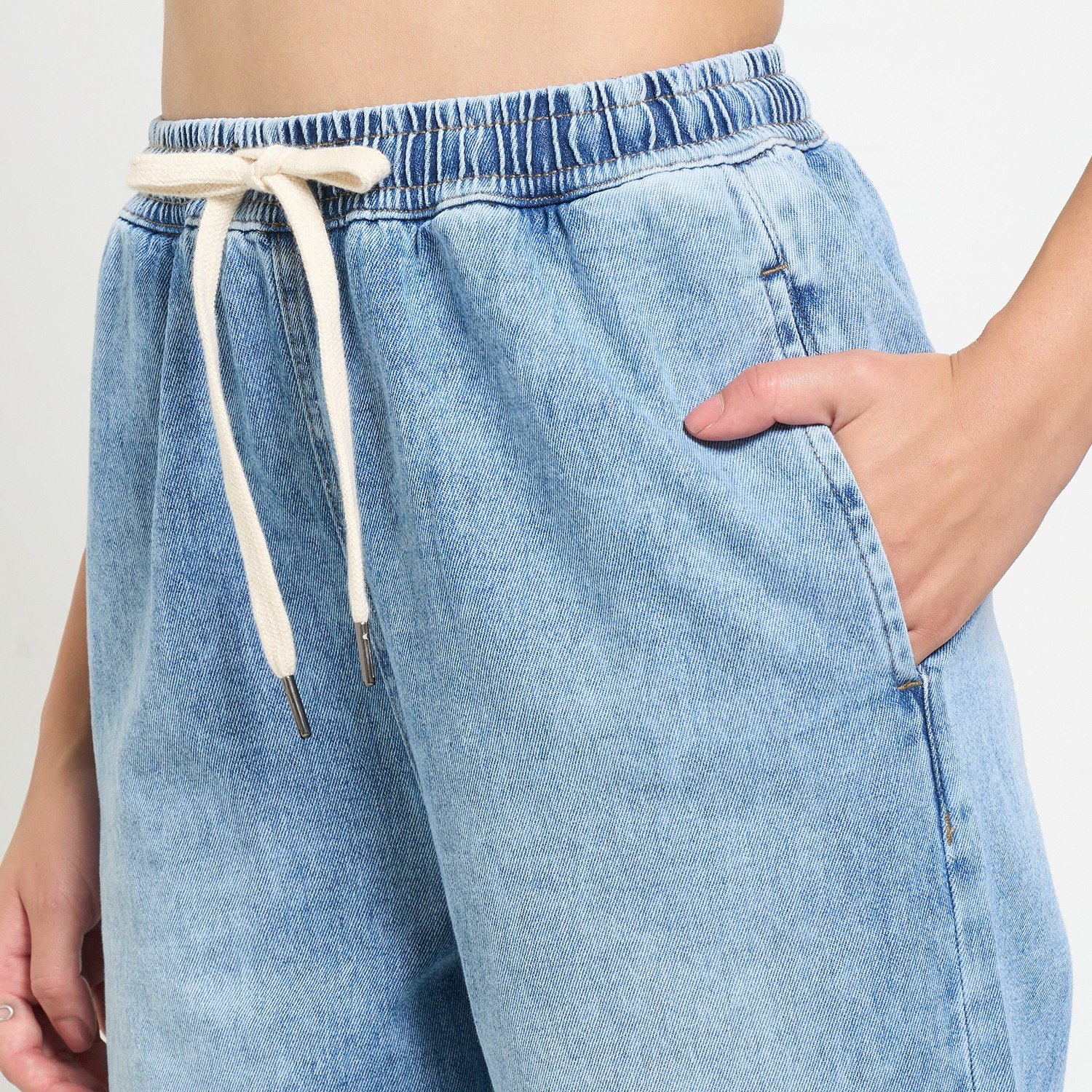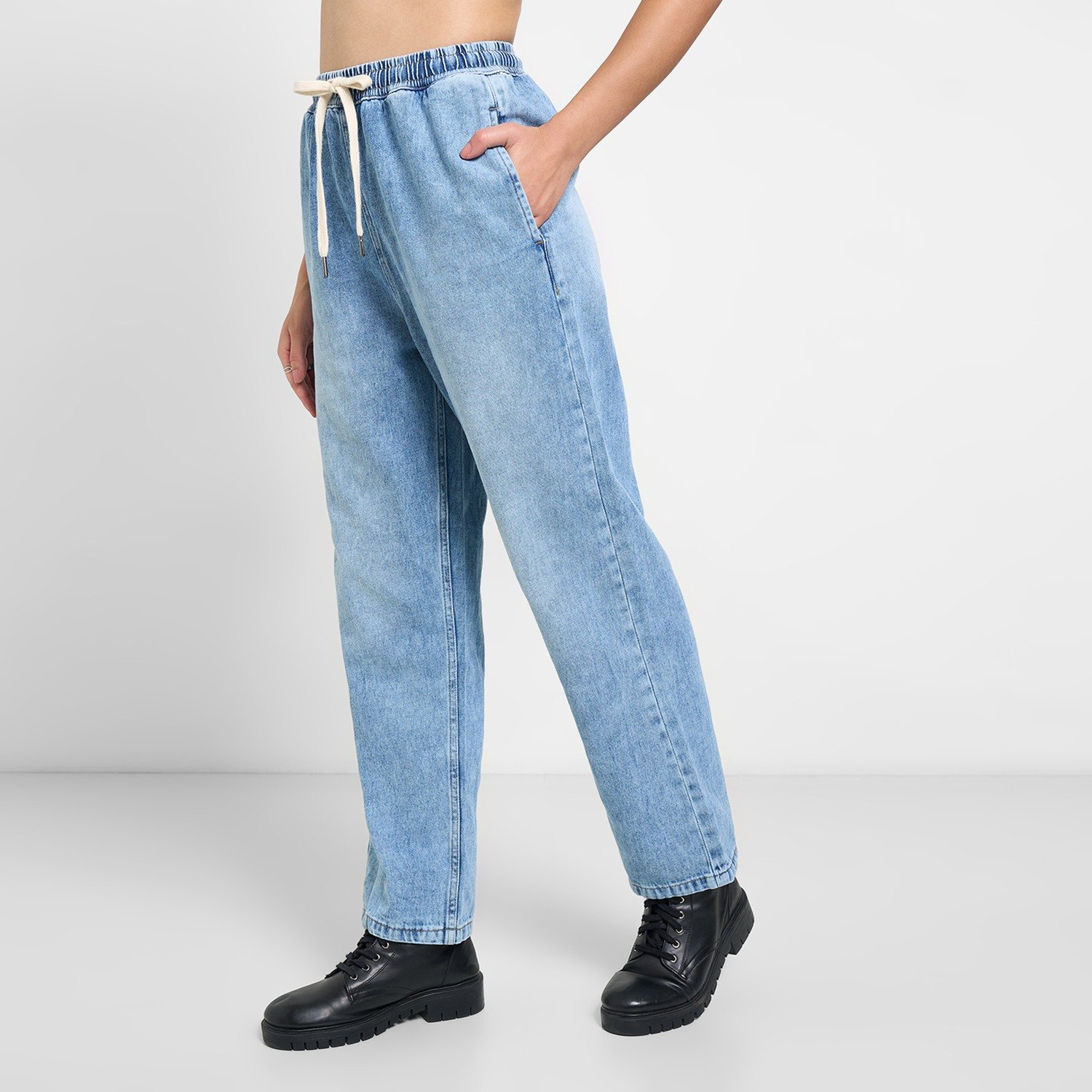 Complement and add to your look with these rocking jeans. Designed in a straight silhouette, these jeans have an elasticated waistband with a drawstring, multiple pockets and a bleached finish. Constructed in a premium fabric that offers fantastic comfort and resilience.