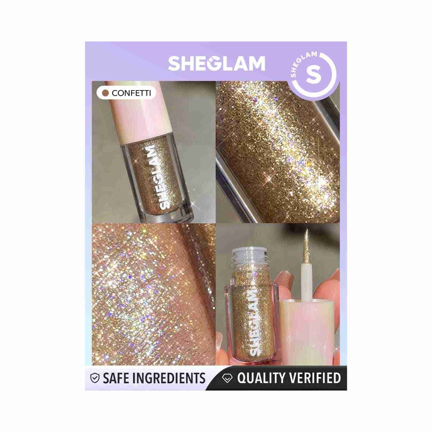 Get ready to shine with the Sheglam Insta-Party Glitter Liner - Confetti (2.6 ml). This versatile liner doubles as both an eyeliner and eyeshadow, allowing you to create stunning party looks with ease. The innovative silicone tip of the Sheglam party liner ensures smooth, precise application, while the multi-dimensional glitter offers a gleaming finish. With a transferproof, smudgeproof, and fallout-proof formula, you can sparkle from day to night without worry!