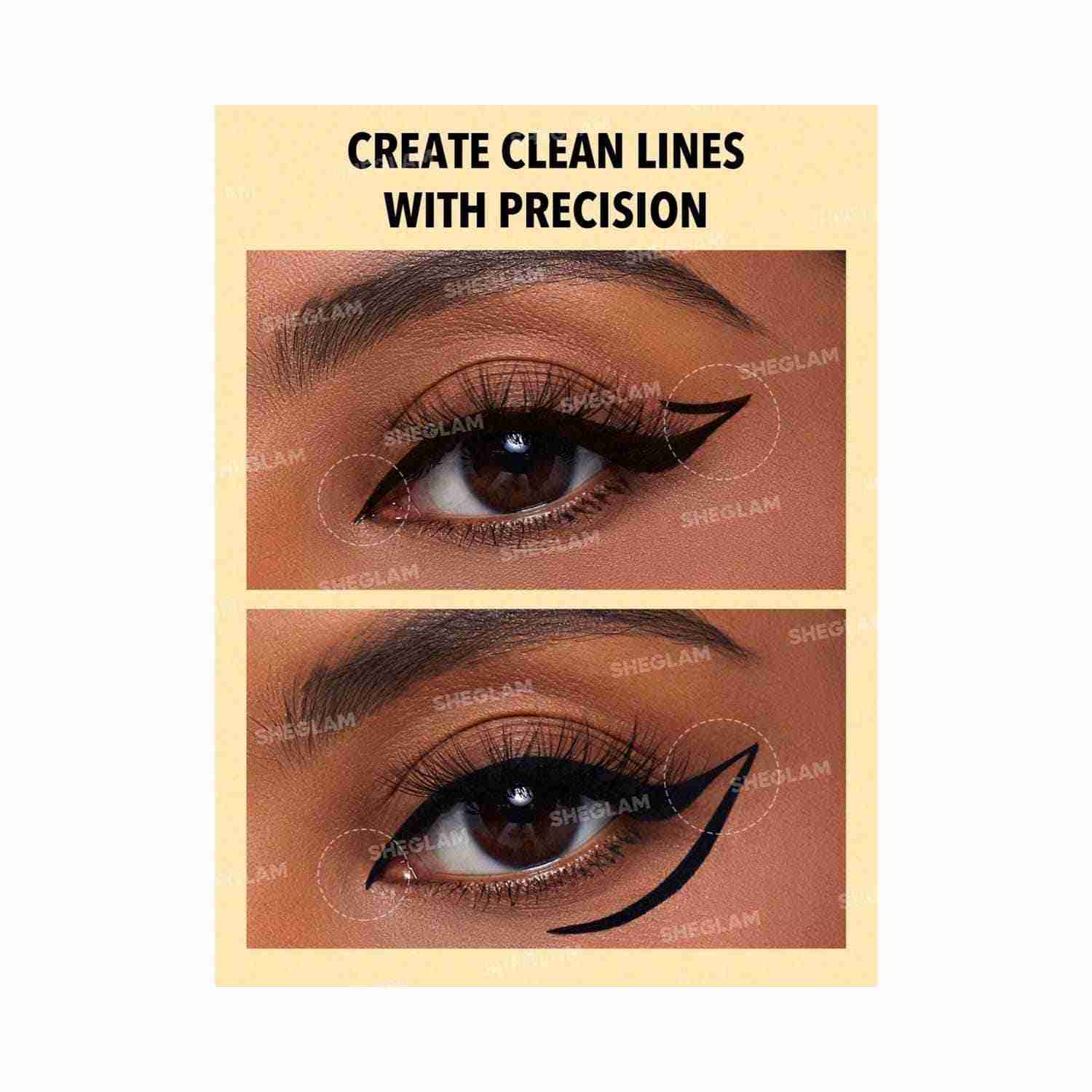 Discover why the Sheglam Line & Define Waterproof Liquid Eyeliner - Black (0.5 ml) is going to be your makeup buddy. This waterproof eyeliner resists smudges and lasts all day, ensuring your eyes look flawless. With a soft, precise tip, the Sheglam eyeliner lets you create subtle lines and bold wings, all with the same precision. Plus, this highly pigmented liner delivers a deep color payoff in a single stroke.