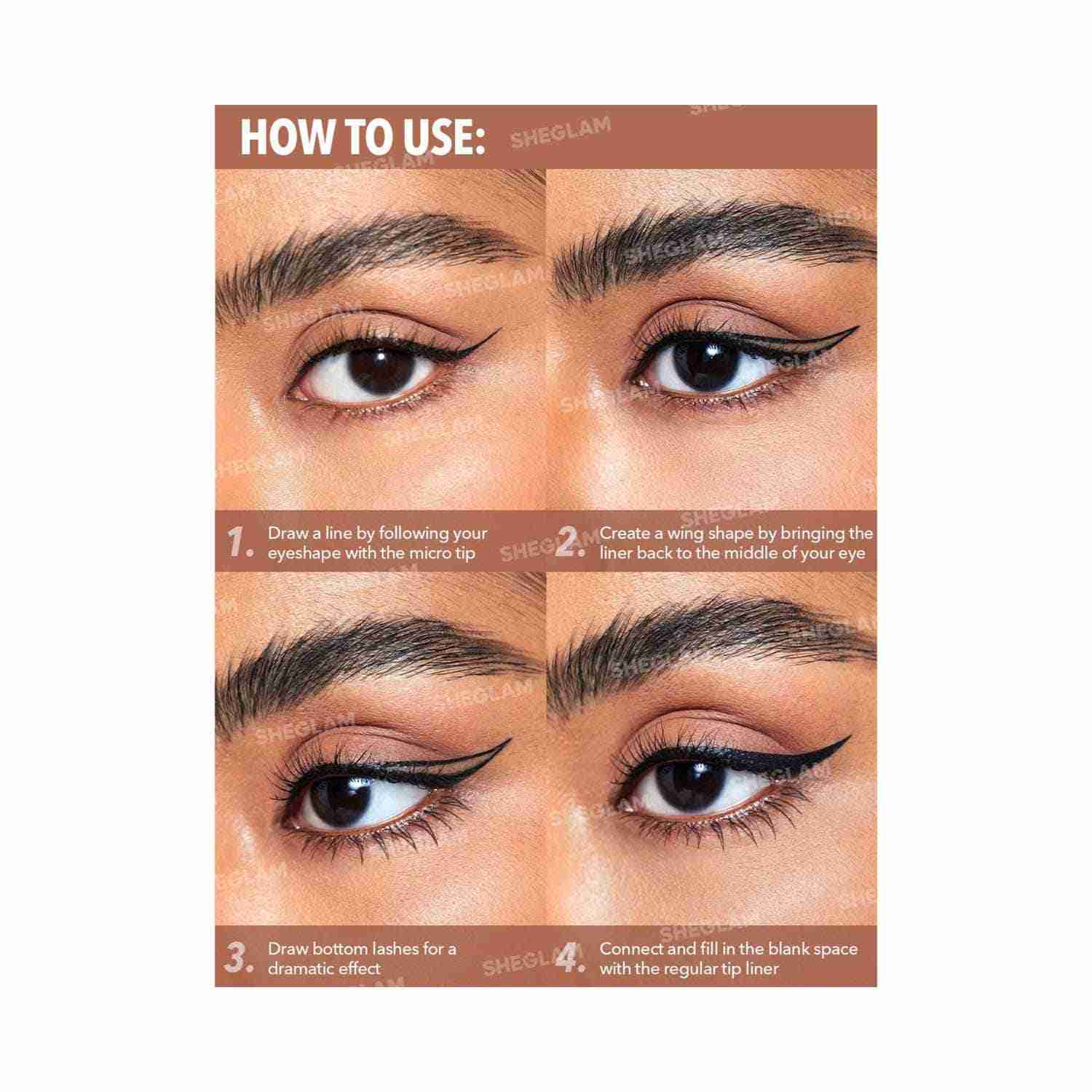 Step up your eyeliner game with the Sheglam Multi-Tasker Line & Detail Eyeliner Pen - Black (0.7 ml). The thick brush tip of this dual-ended eyeliner allows you to create the perfect wing or cat-eye in just one stroke, while the ultra-thin brush tip is perfect for detailing inner corners or adding faux lashes to your lower lash line. With incredible pigmentation, the Sheglam liner delivers a rich color payoff, while gliding on smoothly.
