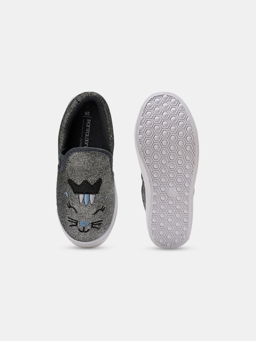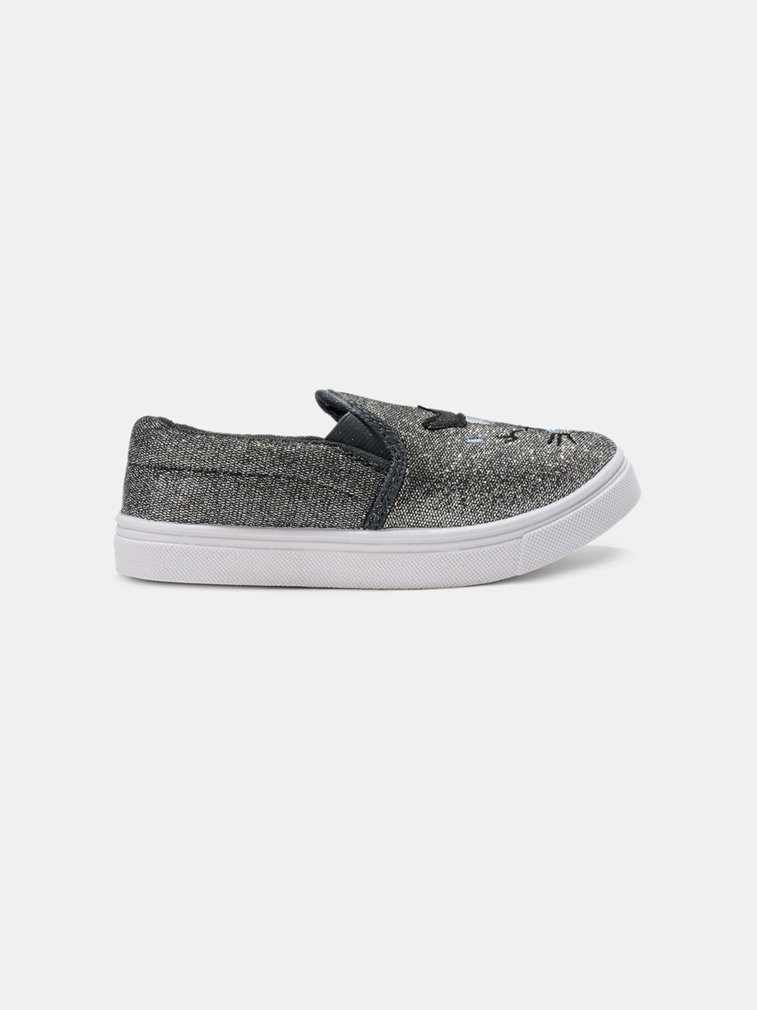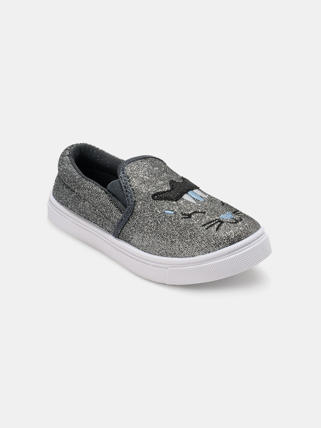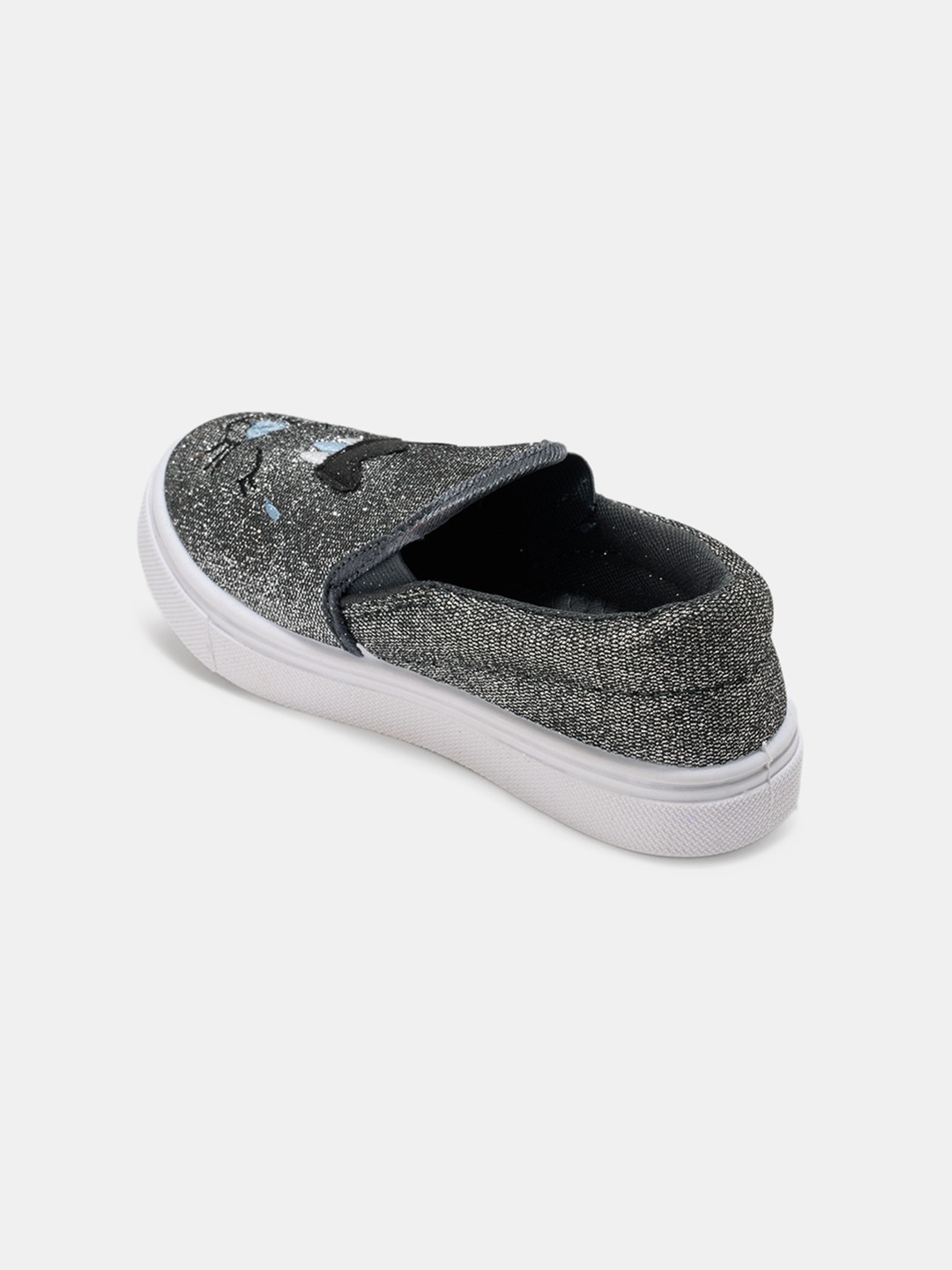 Sparkling and playful, these slip-ons feature a glitter finish with an embroidered cat face and crown motif. The easy slip-on style with cushioned insoles ensures comfort for all-day wear. A fun pair that adds shimmer and charm to casual looks.