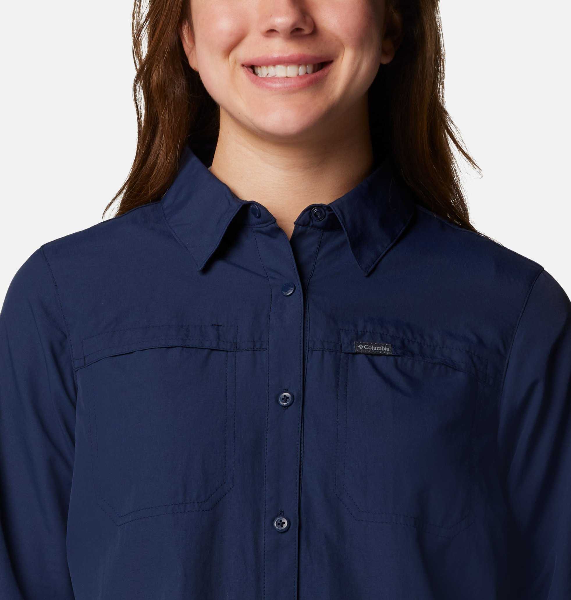 Home/Casual Shirts/Columbia/women navy blue silver ridge 3.0 long sleeve omni freeze shirt