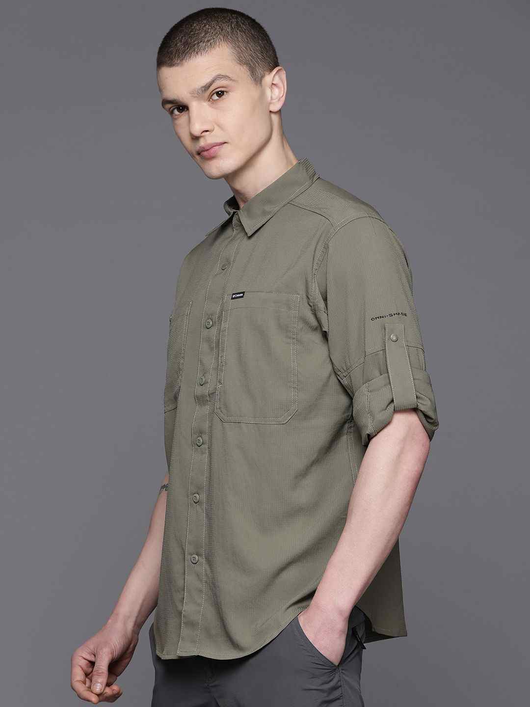 Home/Casual Shirts/Columbia/men green silver ridge utility lite long sleeve omni freeze shirt