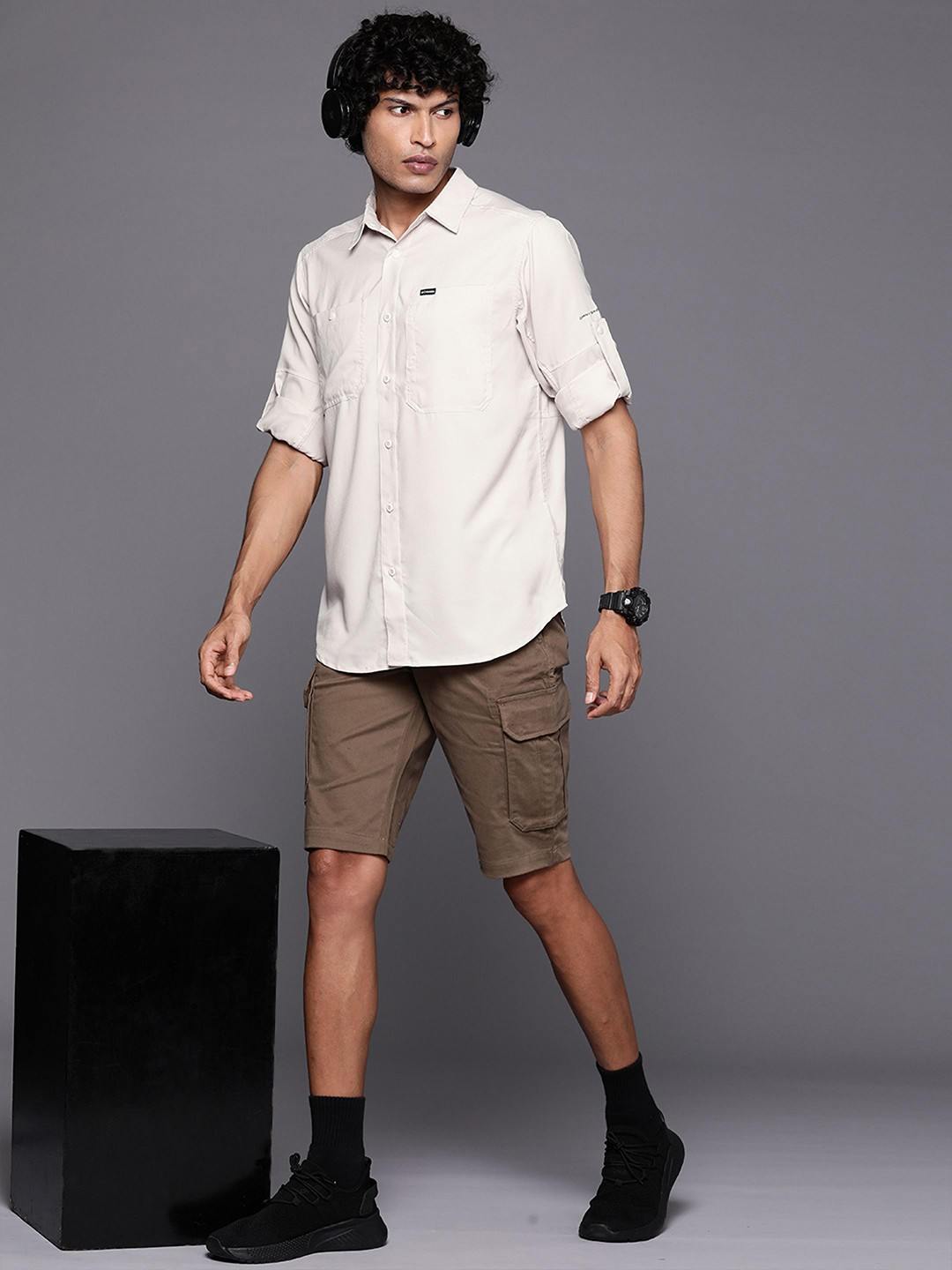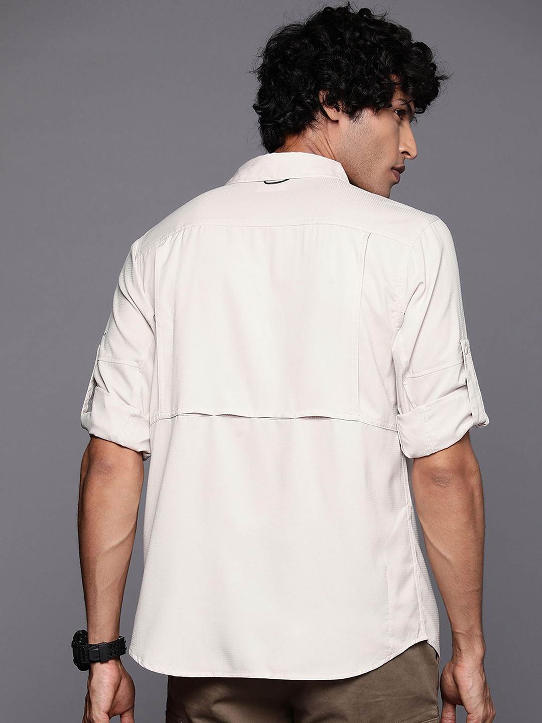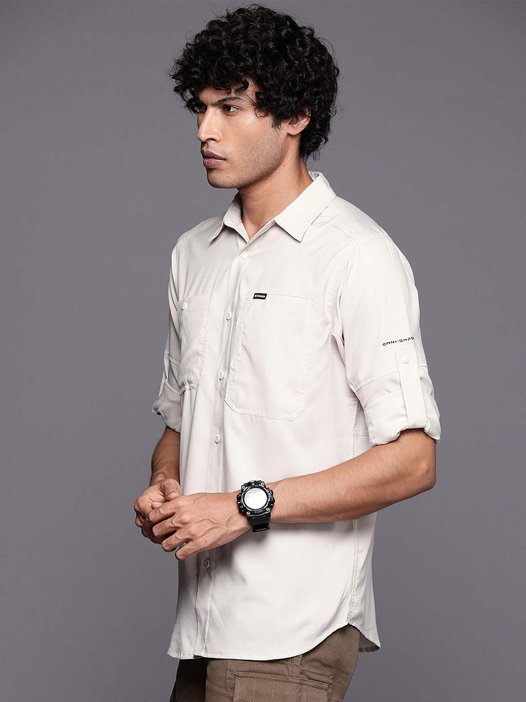 Men Beige Silver Ridge Utility Lite Long Sleeve Omni Freeze Shirt