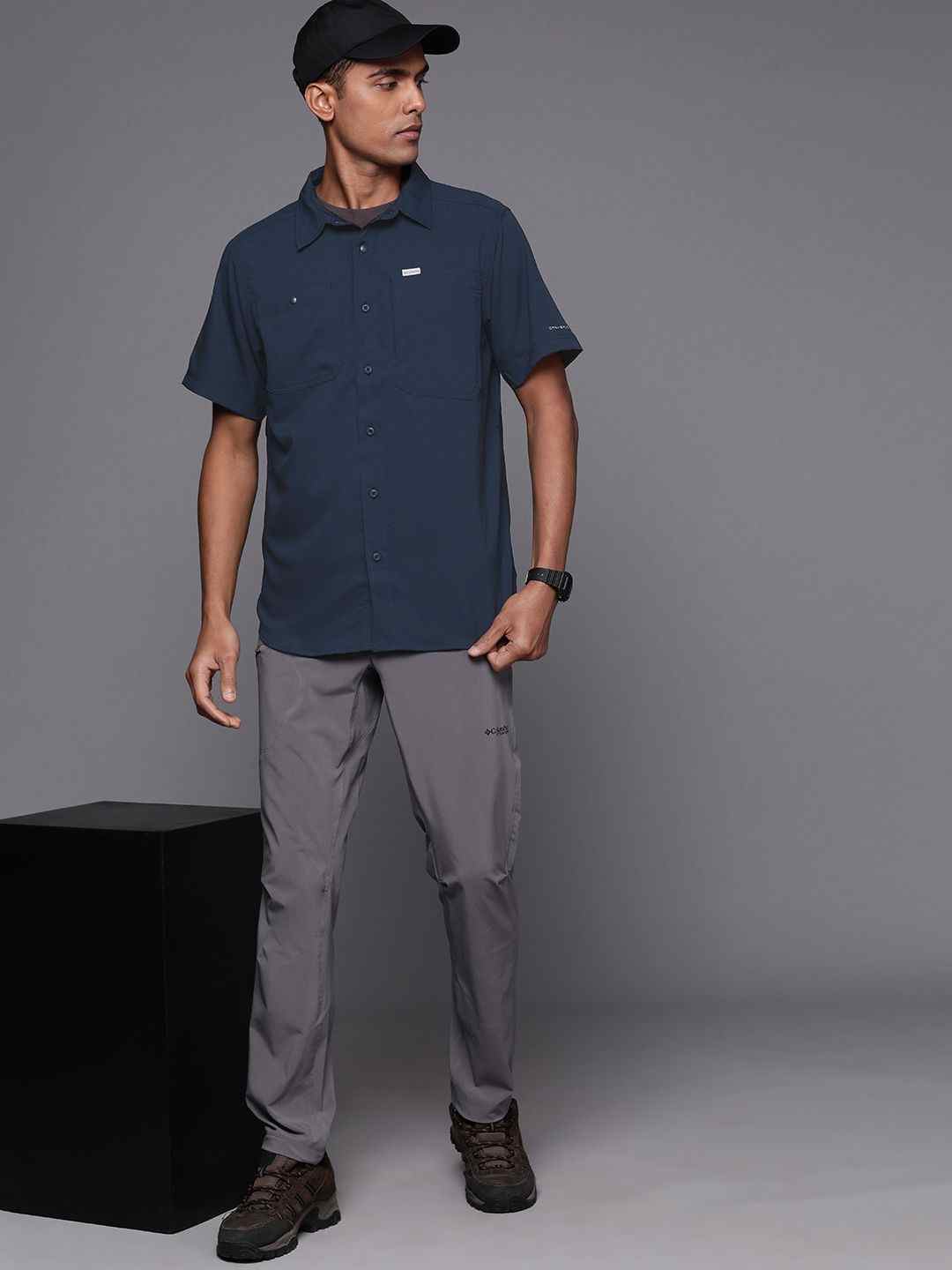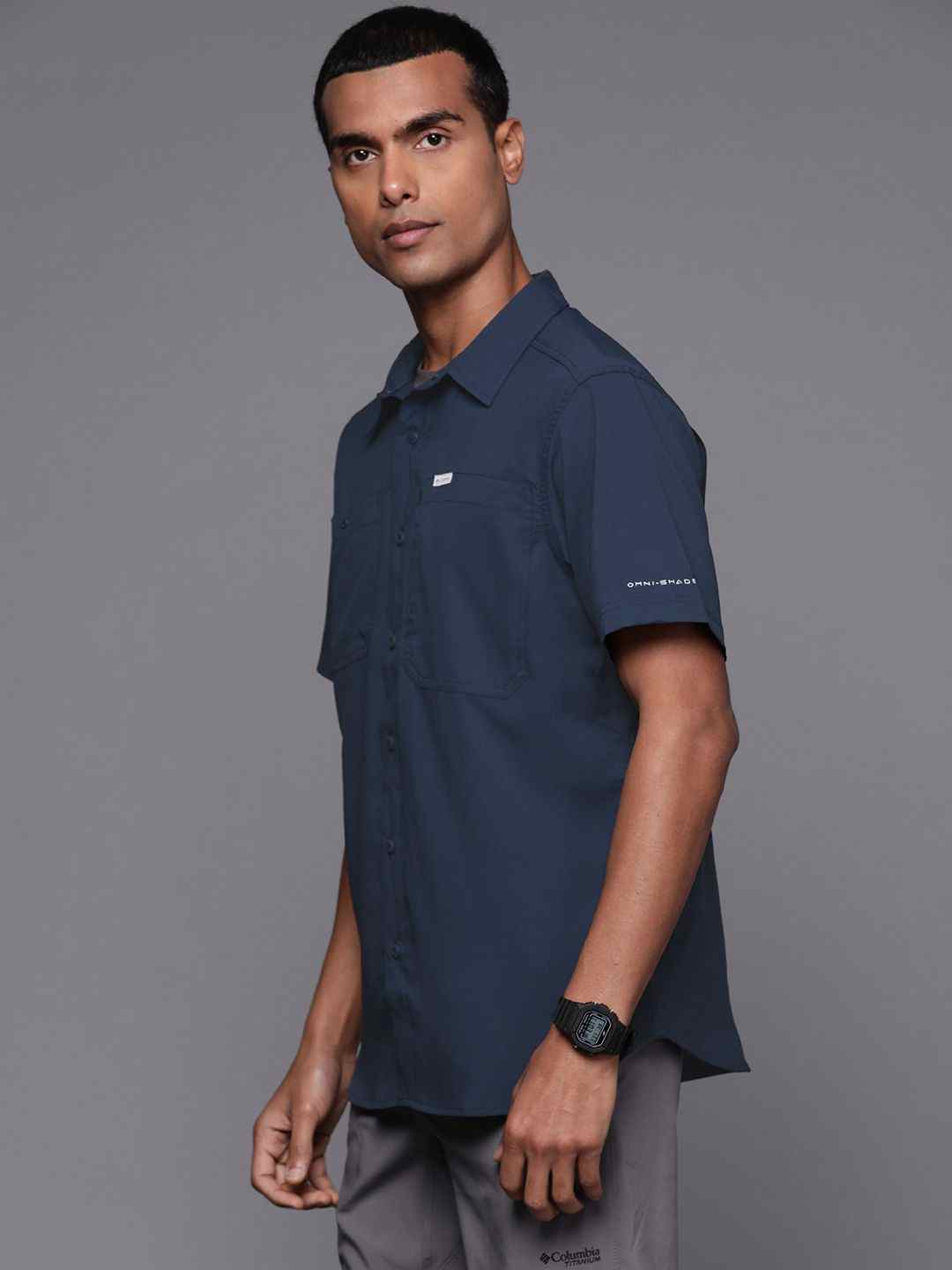 Men Navy Blue Silver Ridge Utility Lite Omni Freeze Shirt