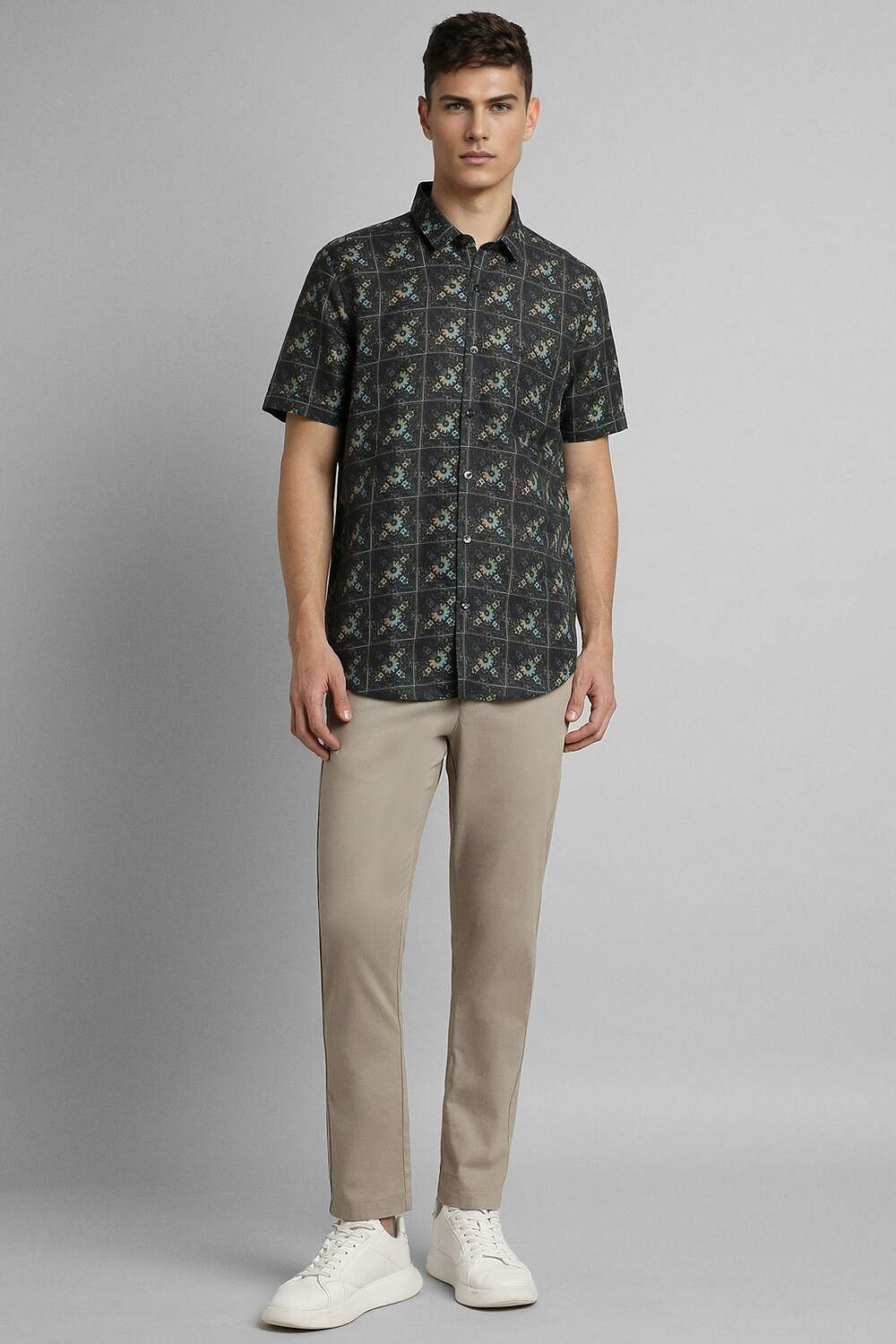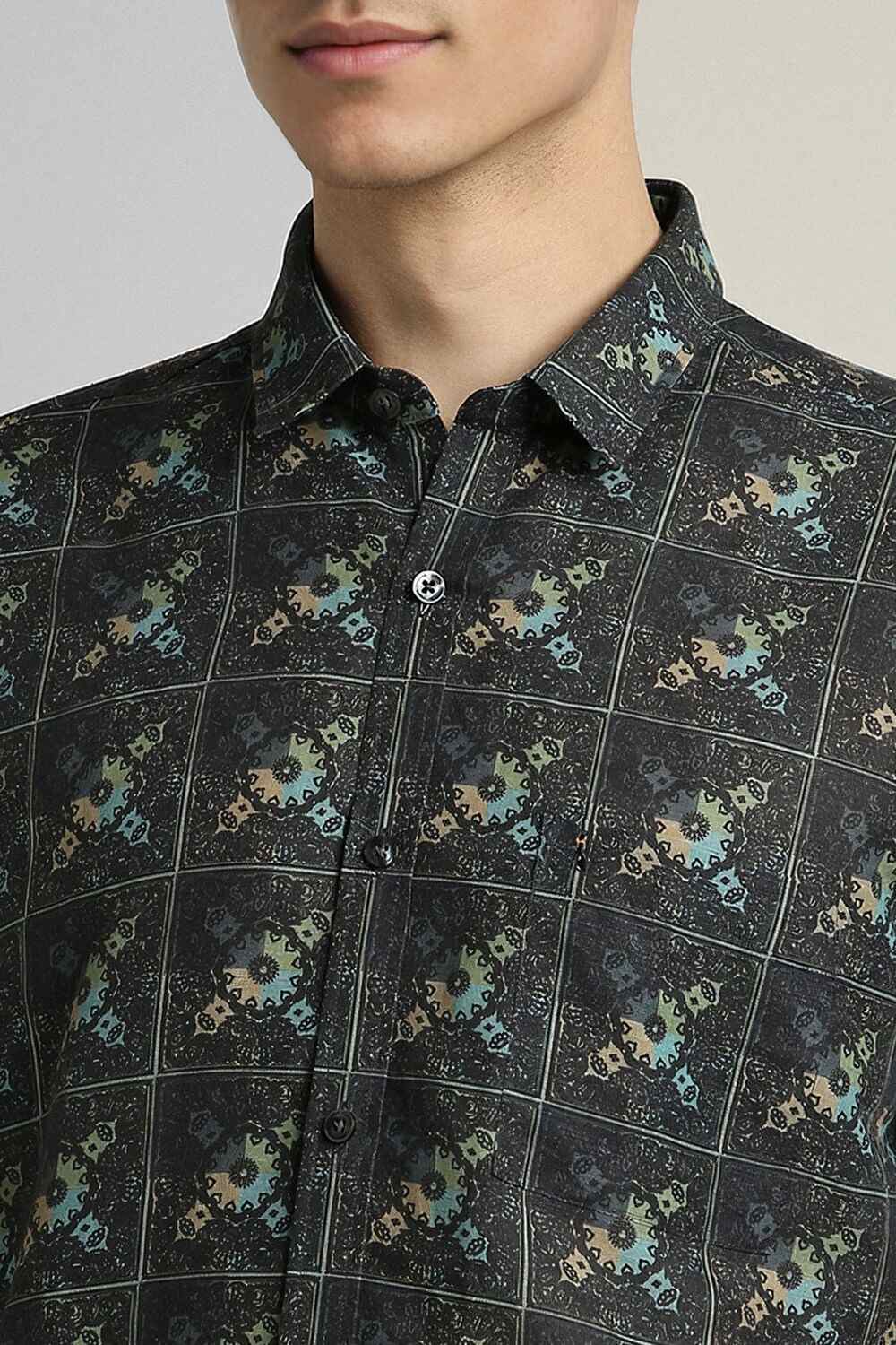 Elevate your casual wardrobe with the Simon Carter black printed shirt. Crafted from a luxurious blend of cotton and linen, this slim-fit shirt offers breathability and style for any occasion. The half sleeves and unique print enhance its contemporary appeal, making it a perfect choice for relaxed outings. Experience the blend of comfort and modern design, and refine your everyday look effortlessly.