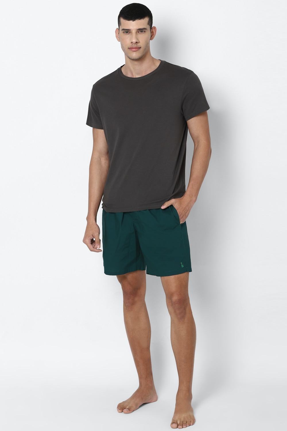 Indulge in comfort with Simon Carter`s solid green boxer shorts, designed for the modern man. Crafted from breathable cotton, these regular-fit shorts are perfect for casual lounging or everyday wear. Their classic style ensures a perfect blend of relaxation and sophistication, making them an essential addition to any wardrobe. Discover the ease of movement and comfort that these boxer shorts provide, elevating your casual attire effortlessly.