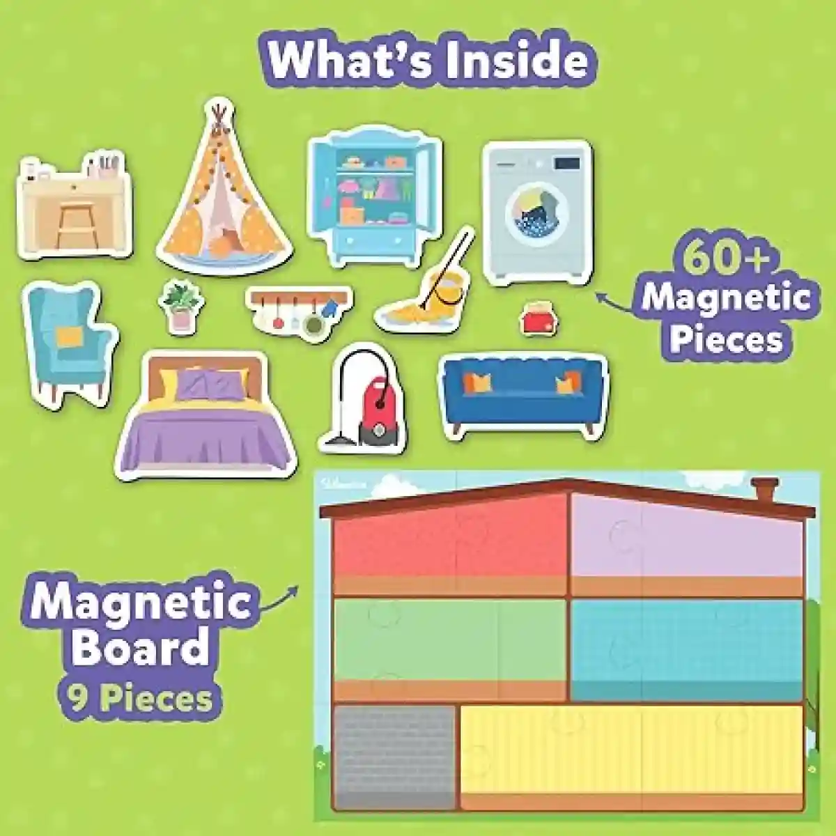Create your own dream house using over 60 magnetic pieces. Decorate your own living room and bedroom, transform a room into your pup's playroom, or build yourself a room of toys! With furniture, toys, plants, pets, and more, there are endless opportunities to stretch your imagination and creativity!