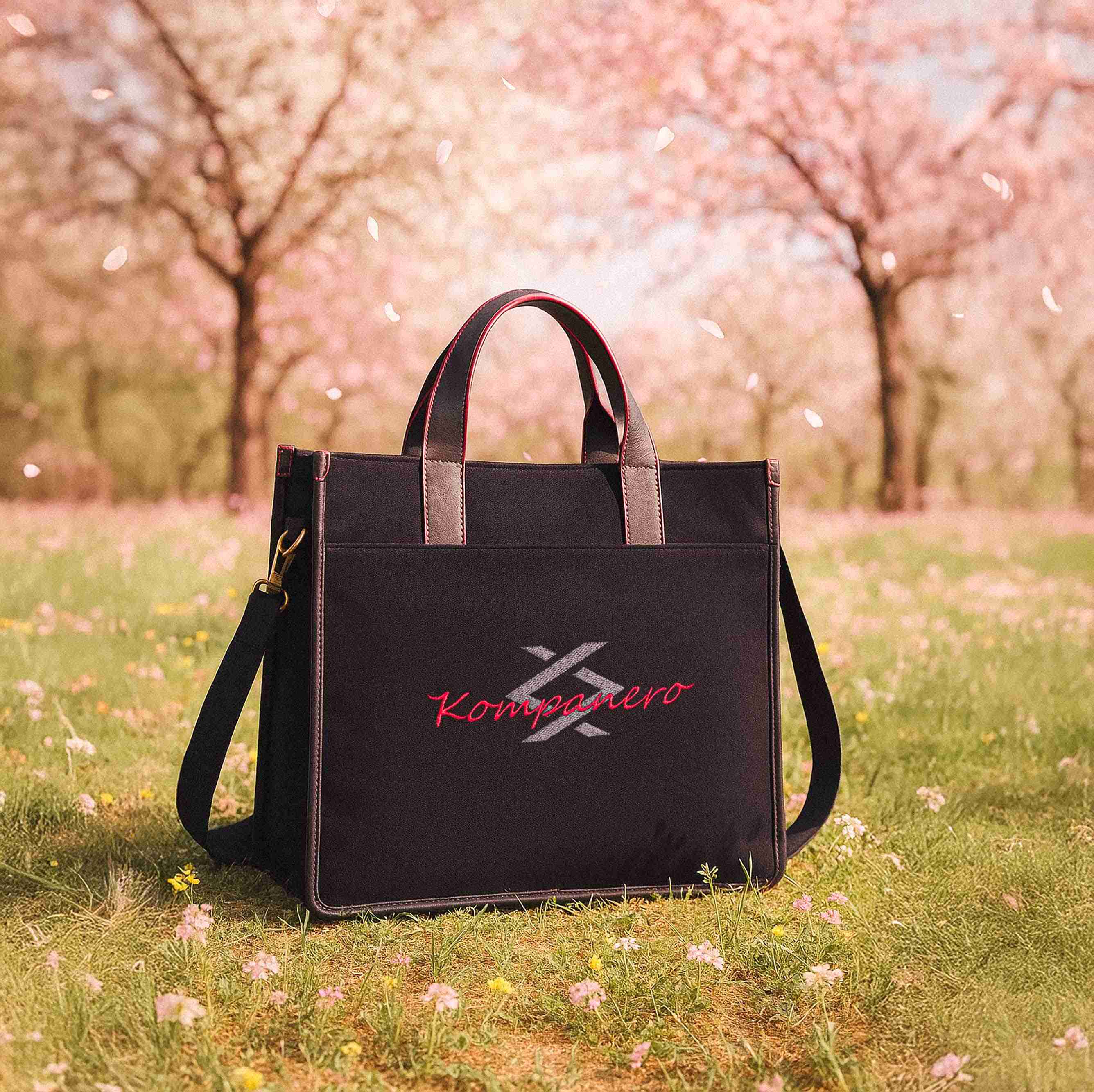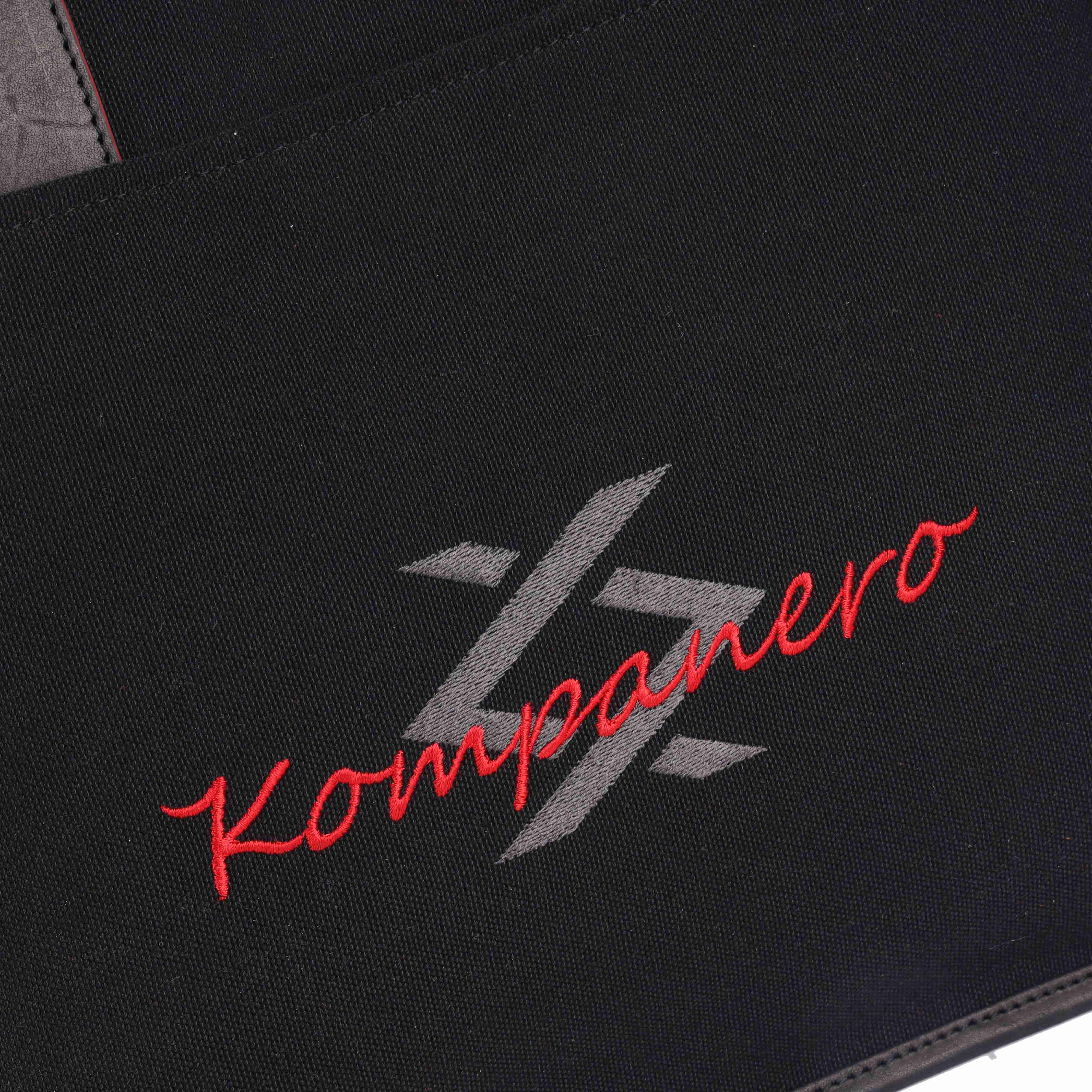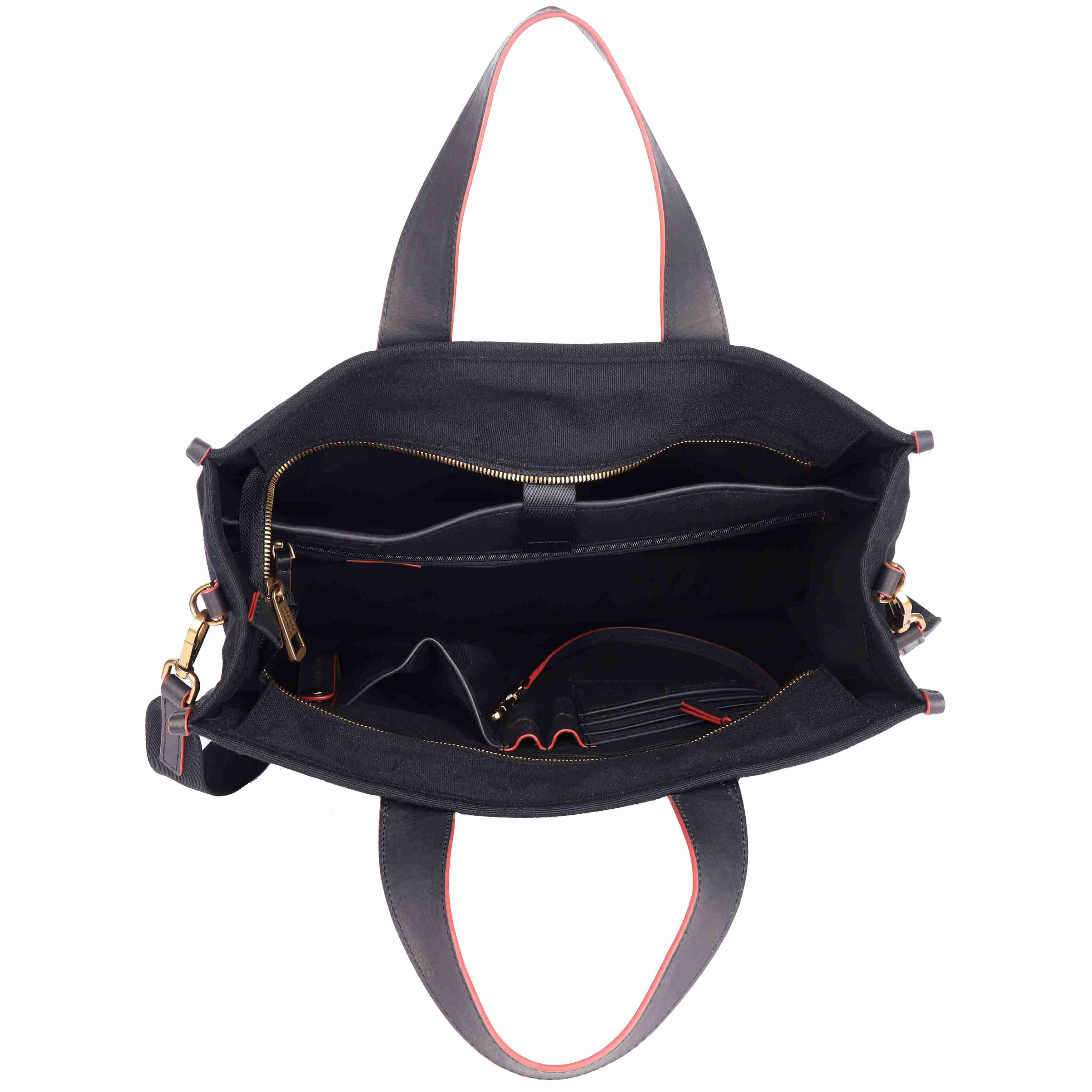 Crafted from solid black canvas and premium vegetable-tanned leather, this tote stands out with its striking red edge-inking that adds a bold finishing touch. The front embroidered branding elevates the design, making a unique and stylish statement that's both modern and timeless.