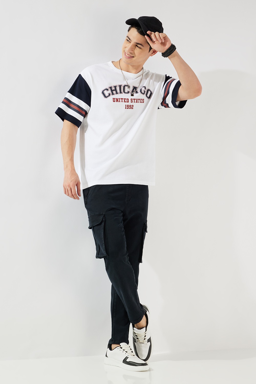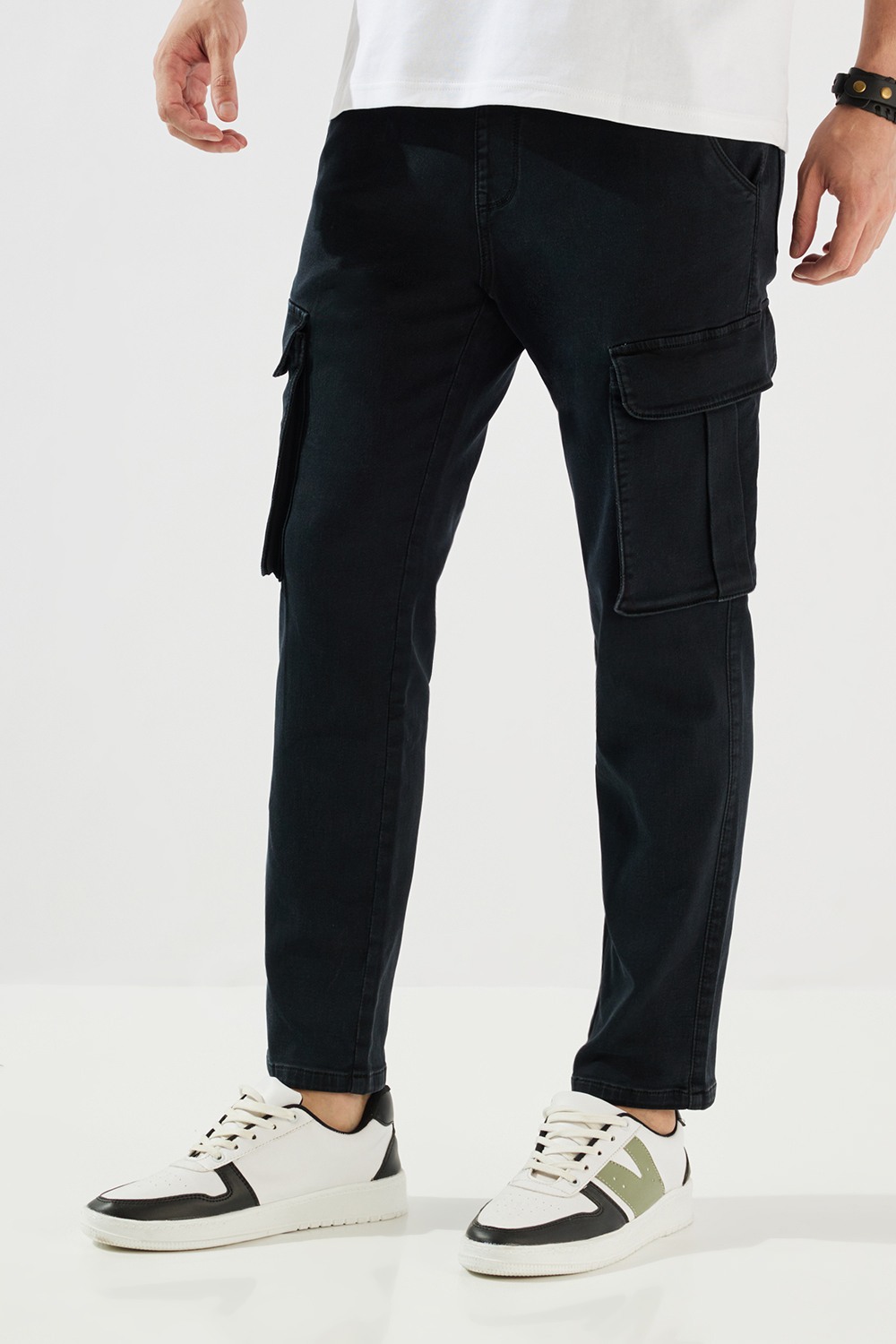 Solid Blended Fabric Slim Fit Men's Cargo Pants