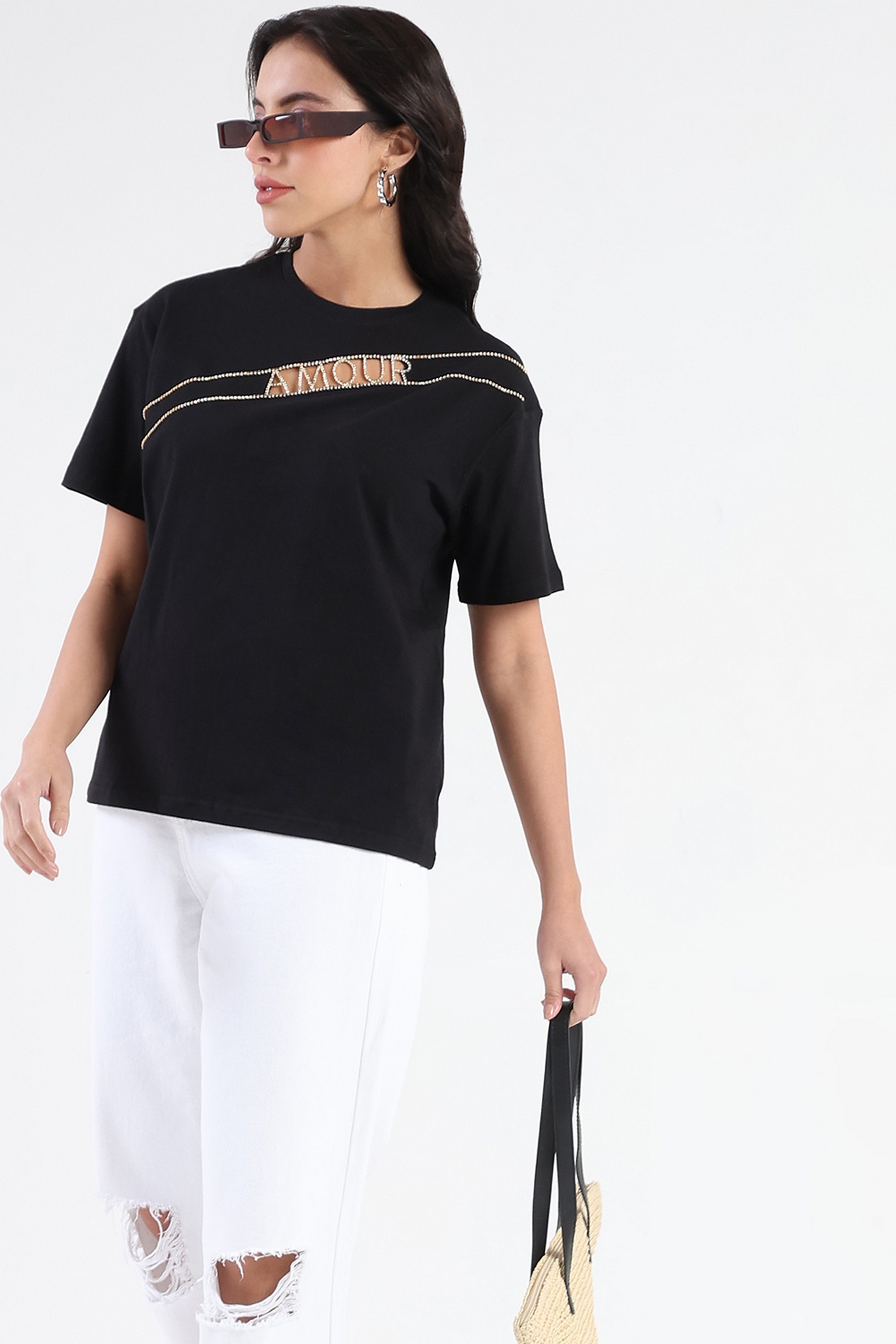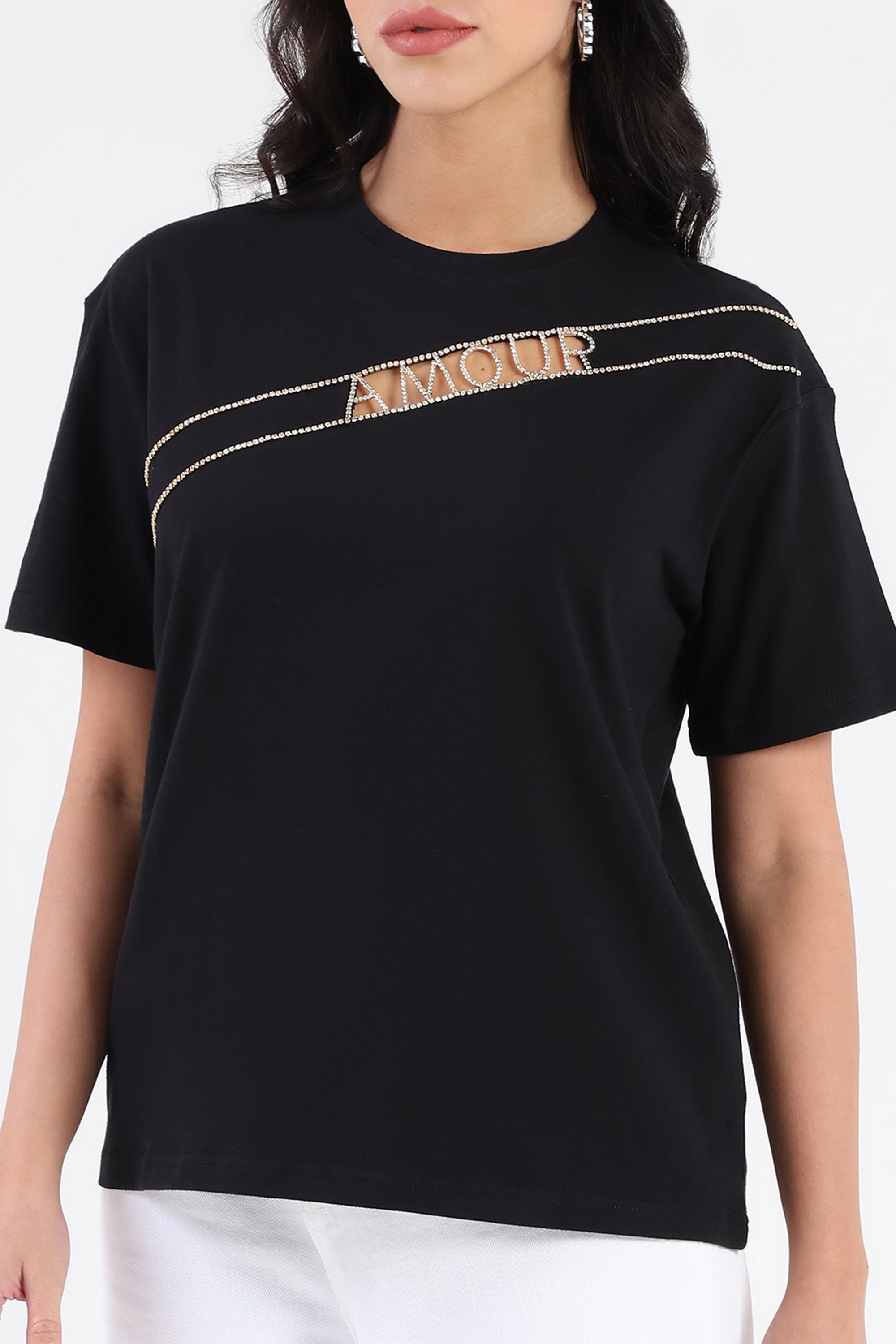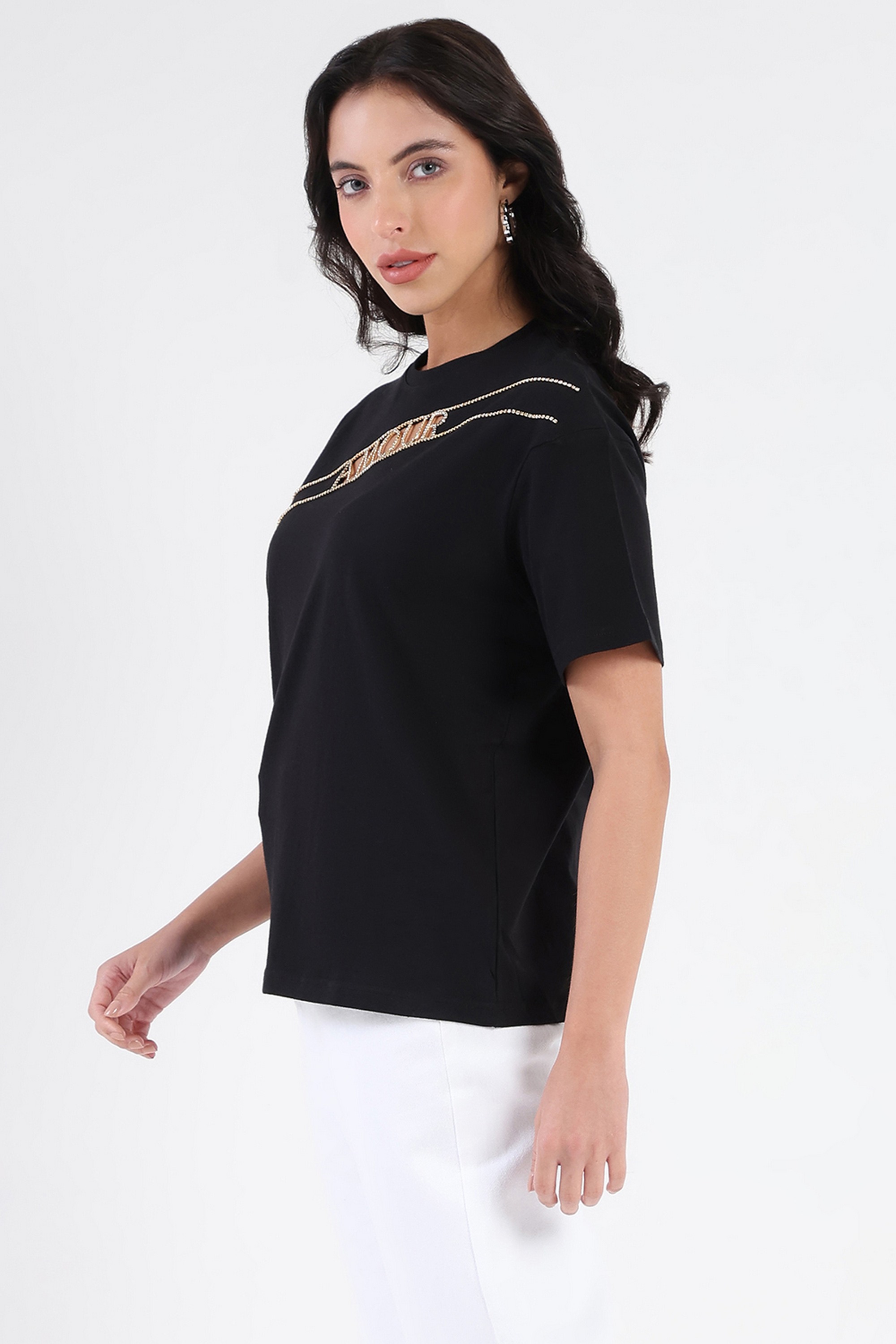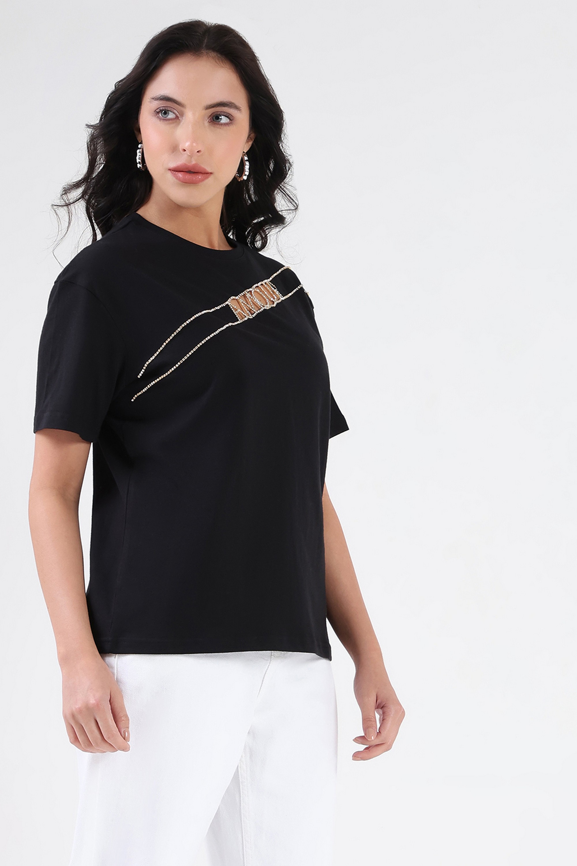 Home/T-Shirts/Madame/solid cotton round neck women's t-shirt
