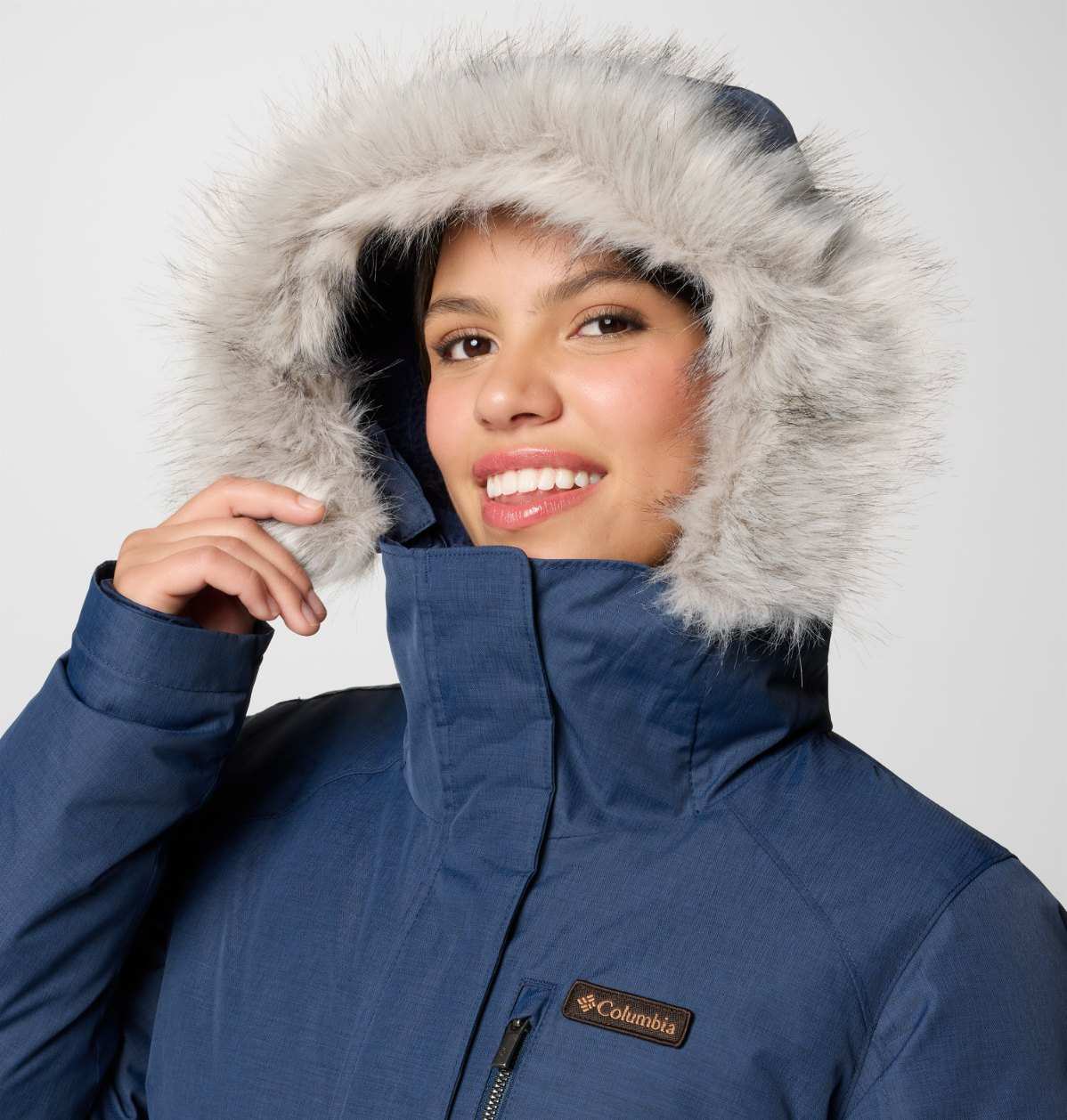 Home/Western Jackets/Columbia/women navy blue suttle mountain long insulated omni heat jacket