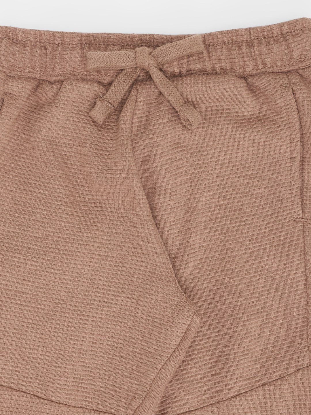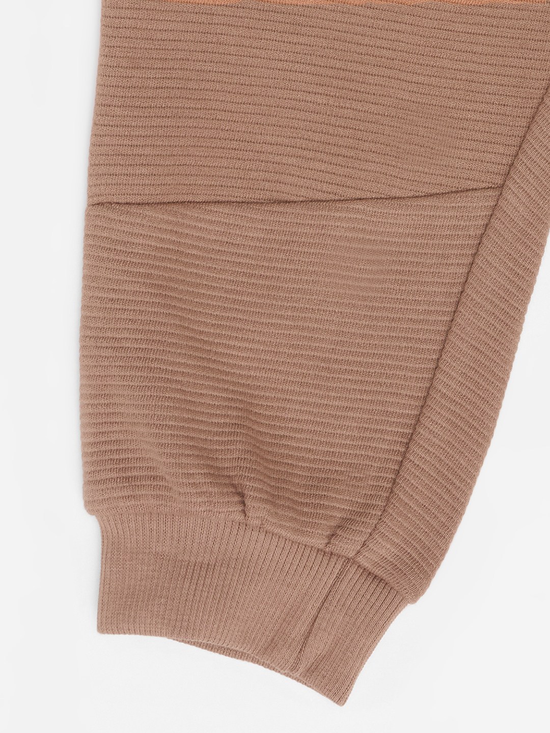 A comfy essential in a rich earthy hue. These joggers feature a uniform ribbed structure with panelled detailing, an elasticated drawstring waist, and side pockets for a relaxed fit. Finished with ribbed cuffs for added snugness.