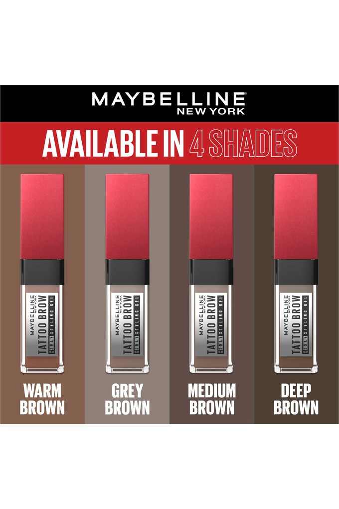 Sculpt your brows and give them a full, laminated brow look with the all-new Maybelline Tattoo Brow 3 Day Stying Brow gel. This eyebrow gel has a two-way mini brush which enables you to achieve effortless application. The Maybelline brow gel has a tinted, semi-permanent formula with a 3-day colour lock technology. With this brow gel, you can get natural and full, fluffy brows that last for up to 3 days. This eyebrow styling gel is smudge-proof, transfer-proof mistake-proof and climate-proof! The tinted eyebrow gel is ophthalmologically tested and easy to remove with a waterproof makeup remover. From deep brown, grey brown to natural brown & medium brown, the Maybelline Eyebrow gel is available in 4 diverse shades to perfectly match every eyebrow colour.