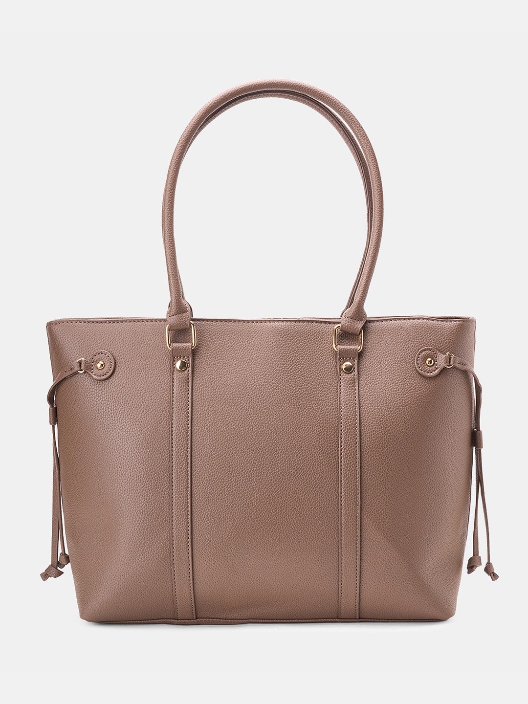 A versatile carryall crafted in a refined pebble-grain finish. Designed with long top handles, gold-tone accents, and side tie details, it balances everyday utility with understated elegance. Spacious and sturdy, it is ideal for work, errands, or travel.