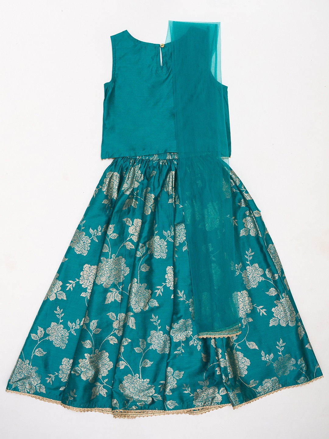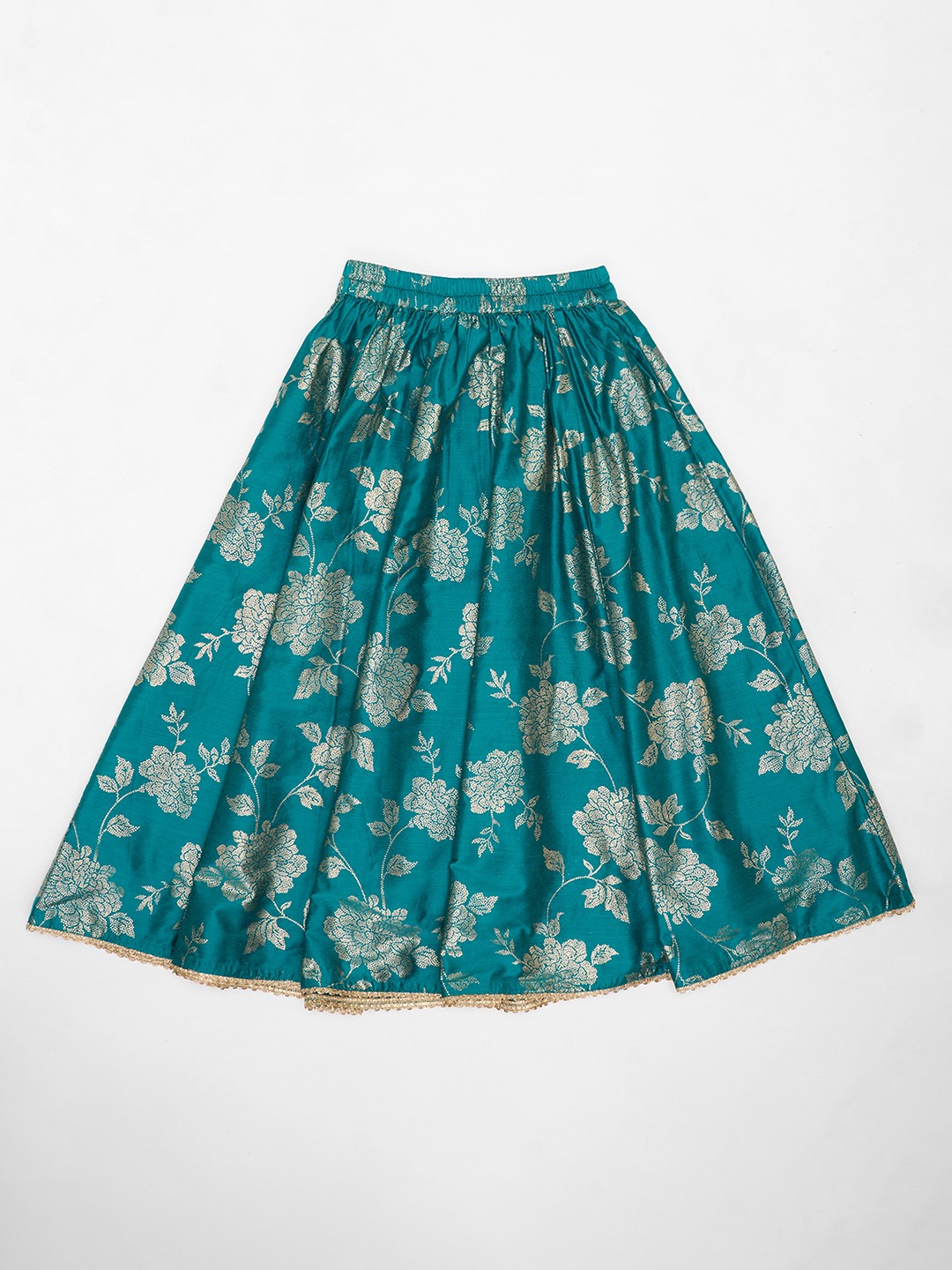 Home/Lehengas/Akkriti By Pantaloons/teal embroidered choli foil print ghargra & dupatta set